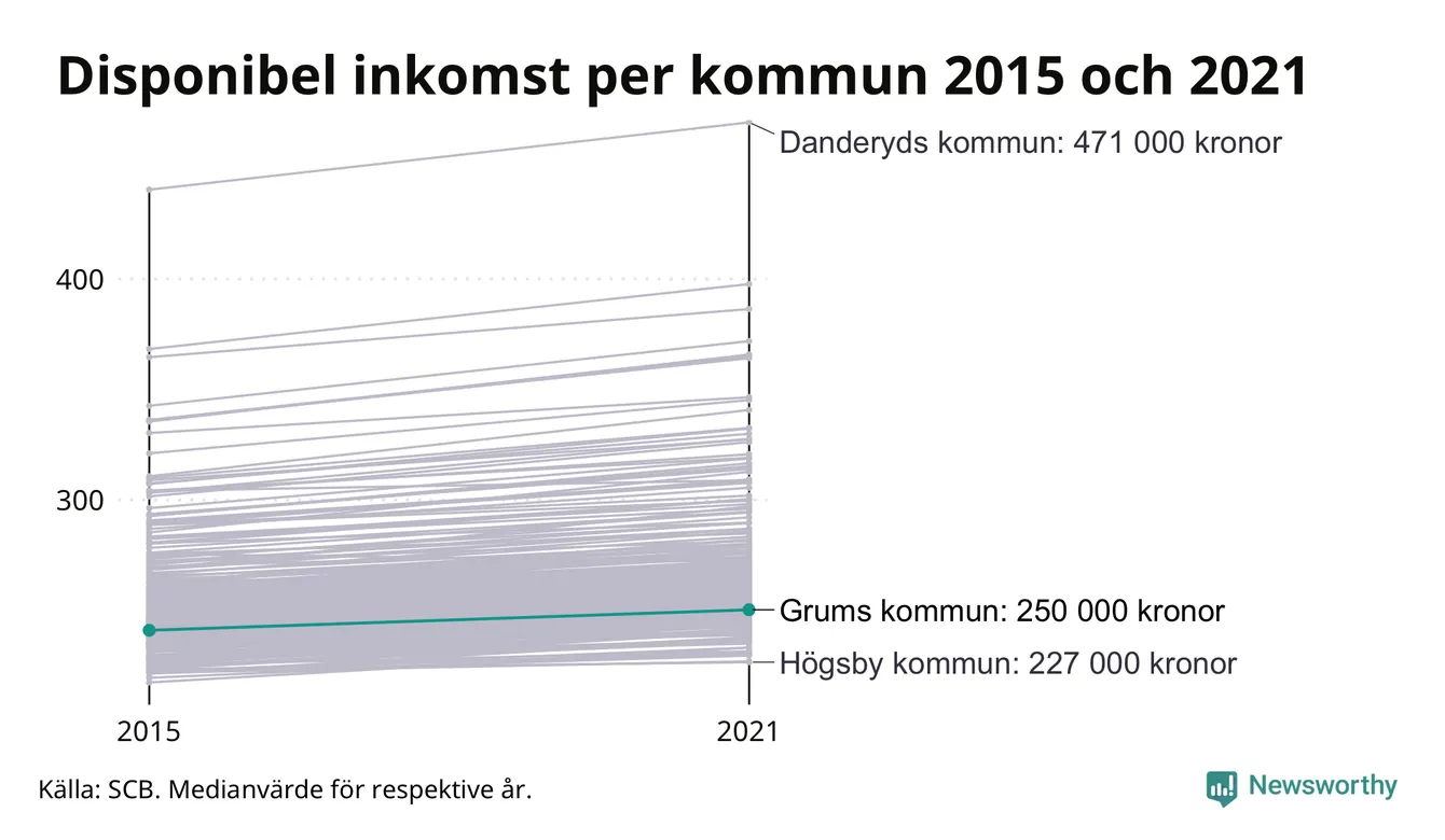 Det skiljer drygt 50 000 kronor mellan områdena med högst respektive lägst inkomst i Grums.