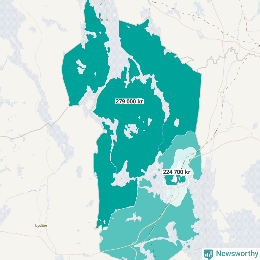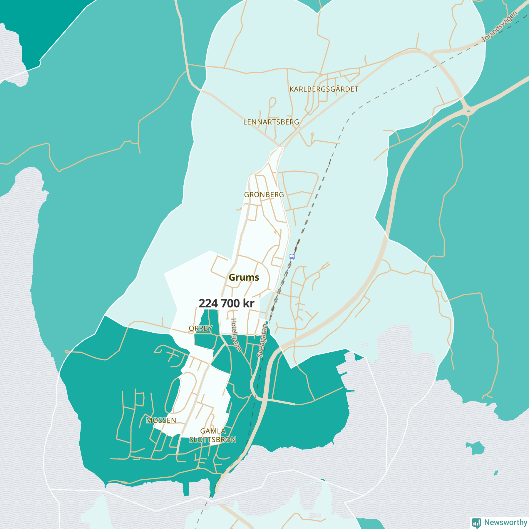 Grums | Orrby-Grönberg | 224 700 | Borgvik-Värmskog-Skruvstad | 279 000 |