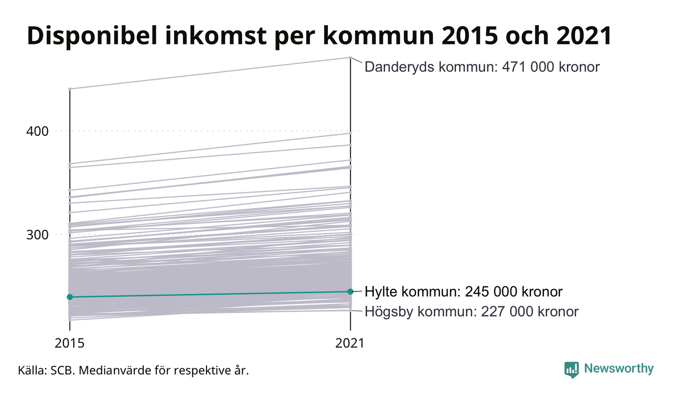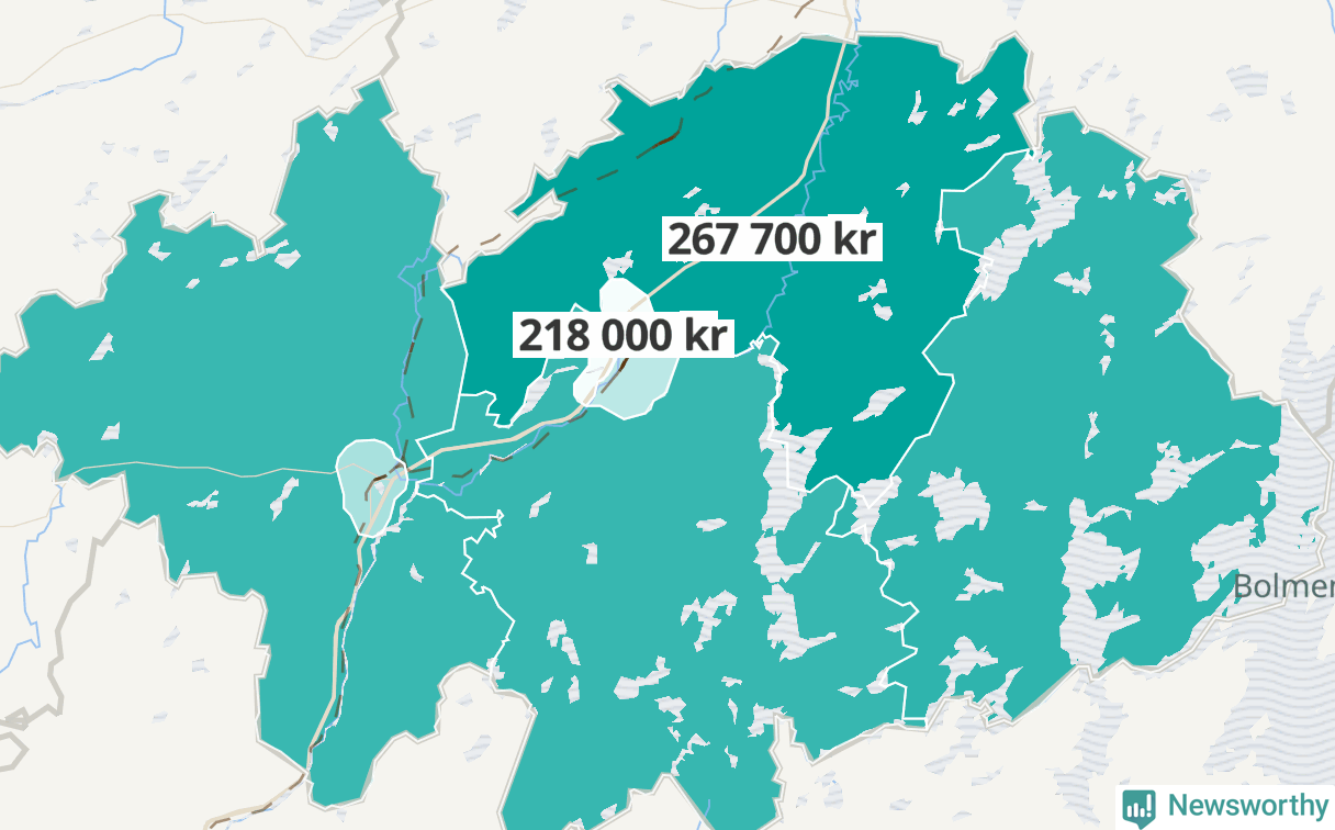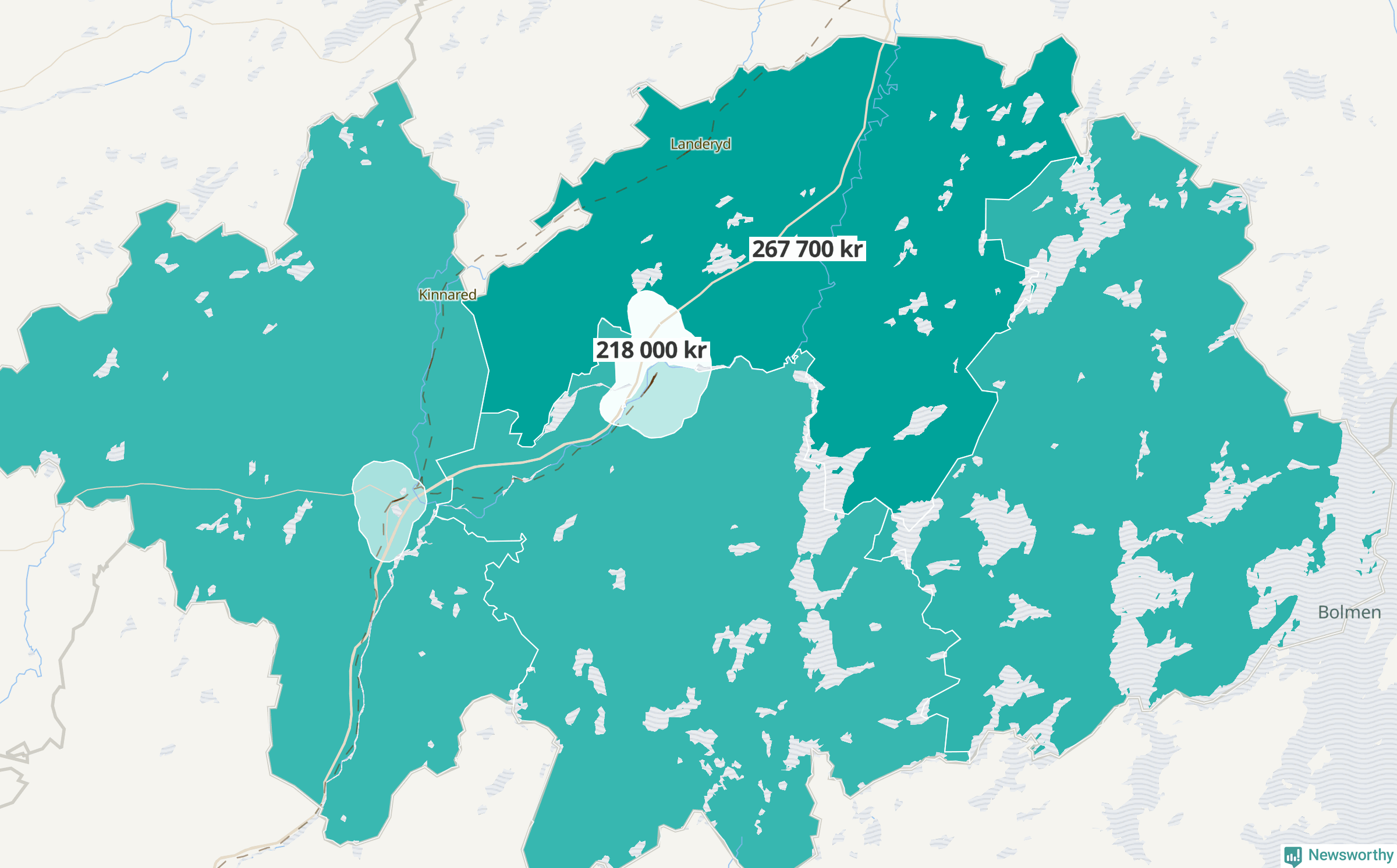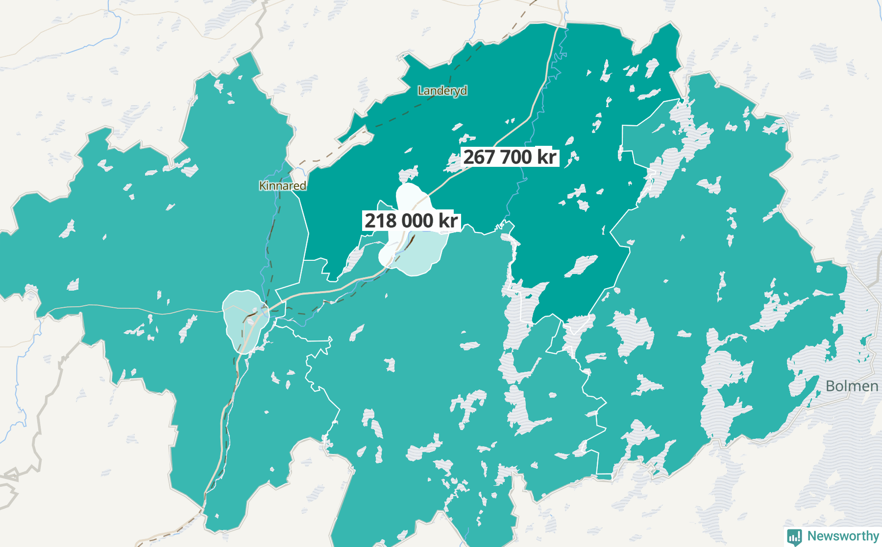 I Långaryd-Landeryd var medianinkomsten 267 700 kronor, i Hyltebruk norra 218 000.