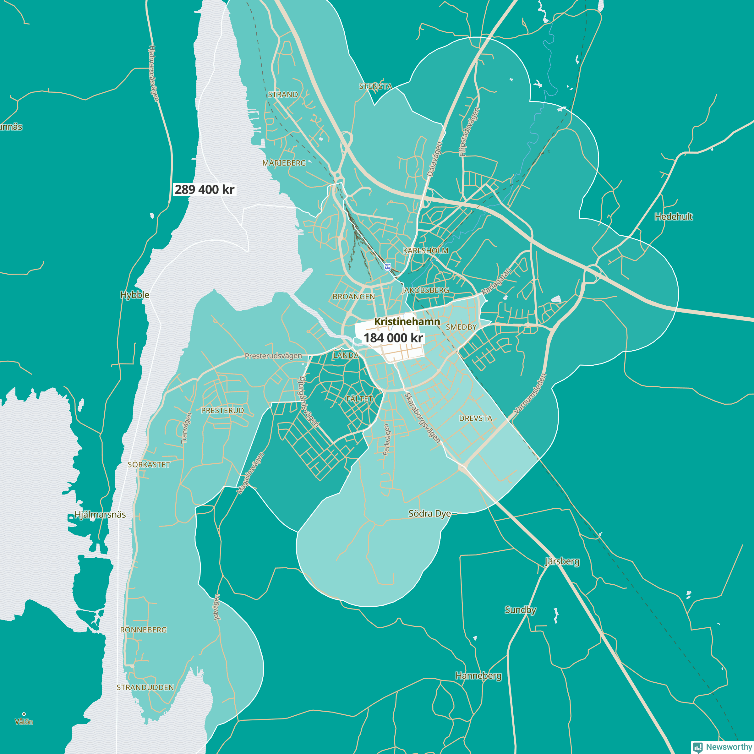 Kristinehamn | Bro | 184 000 | Kristinehamn norra omland | 289 400 |