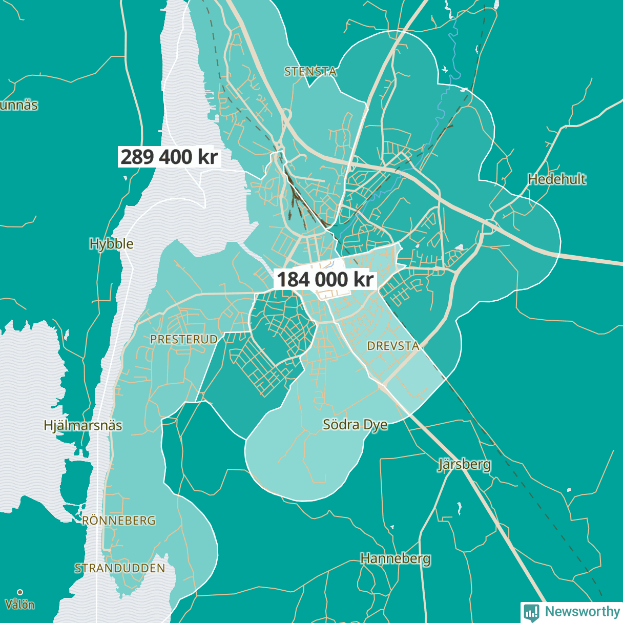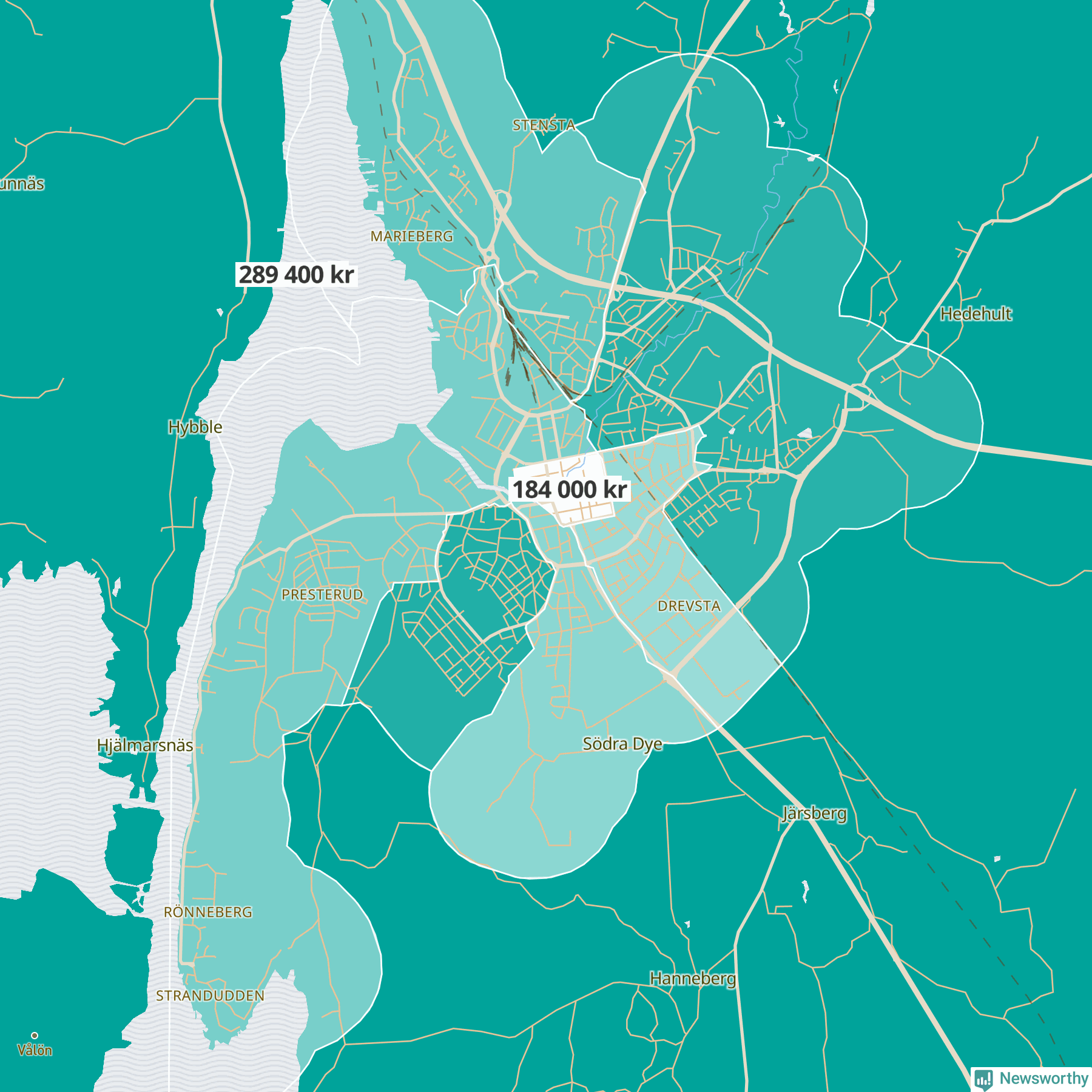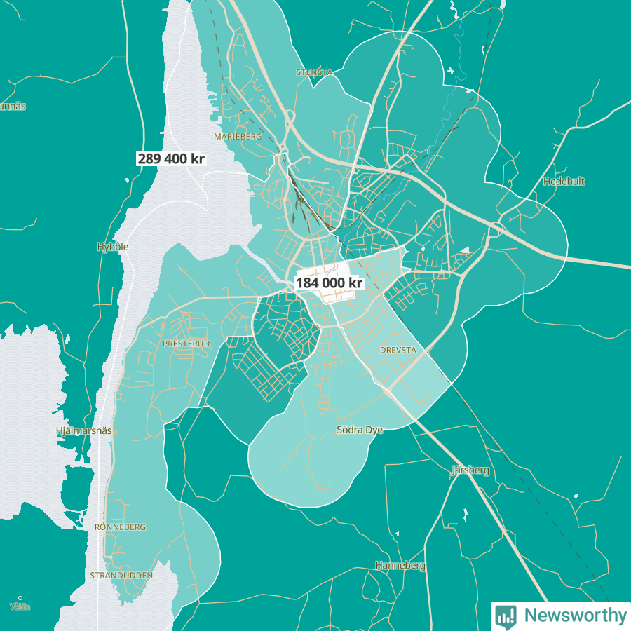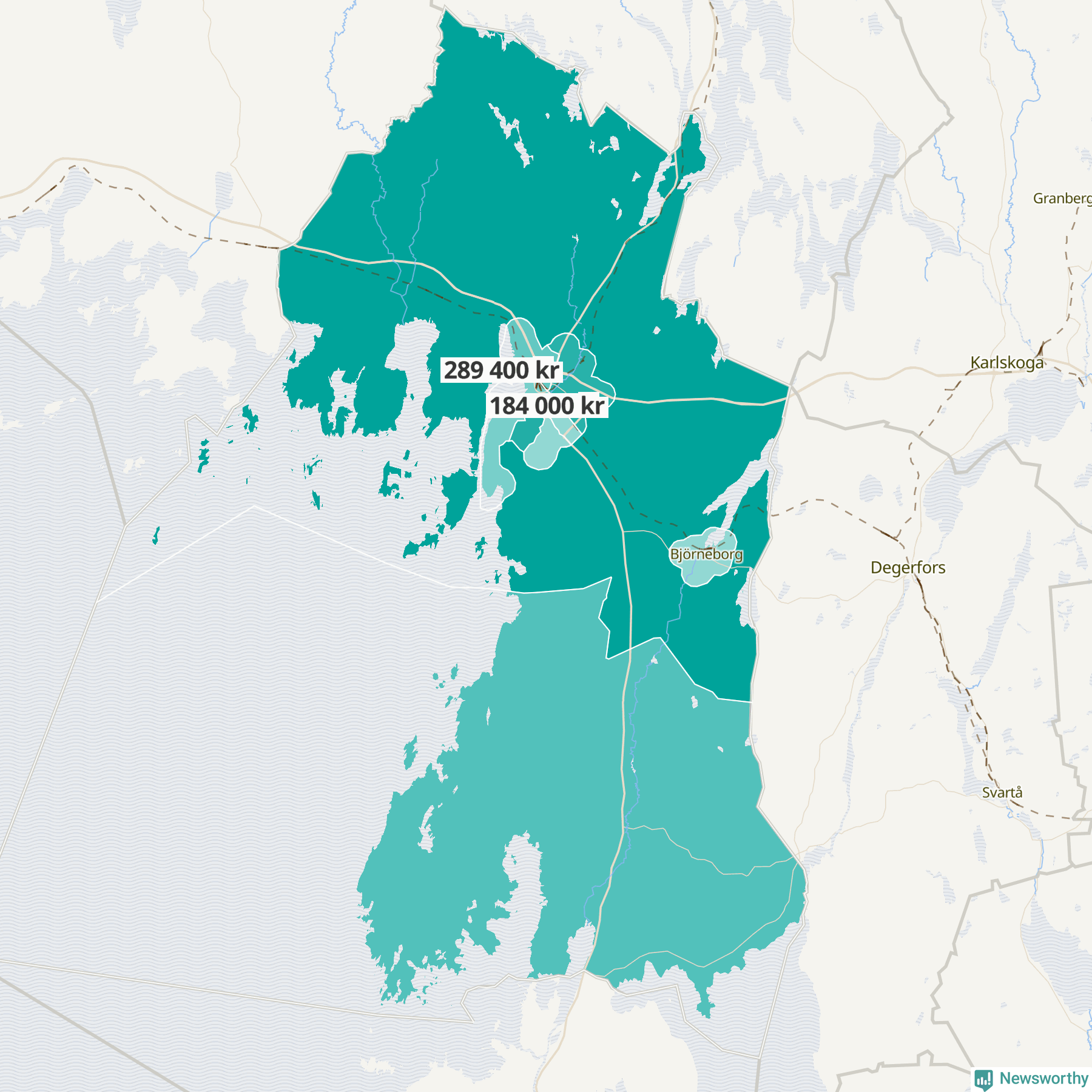 Grums | Orrby-Grönberg | 224 700 | Borgvik-Värmskog-Skruvstad | 279 000 |