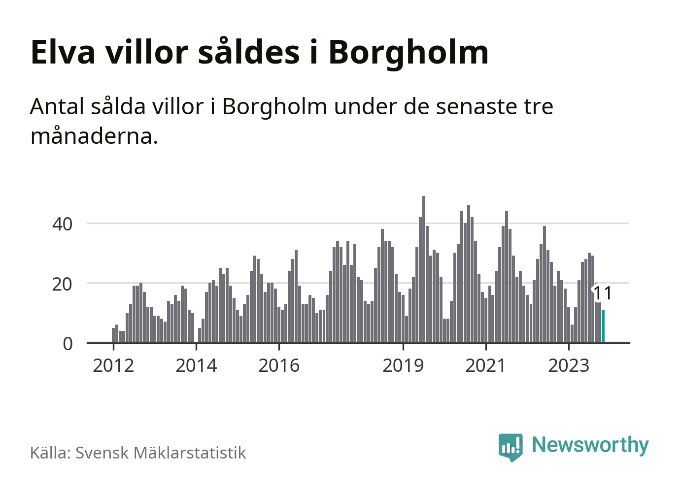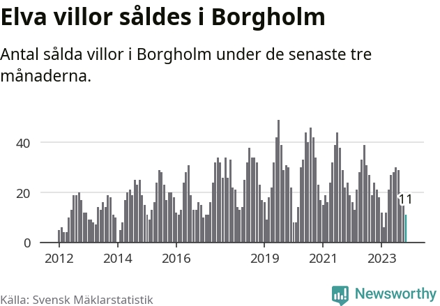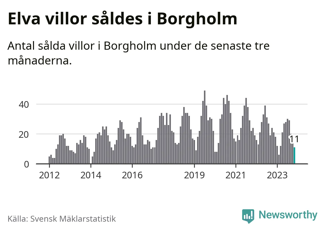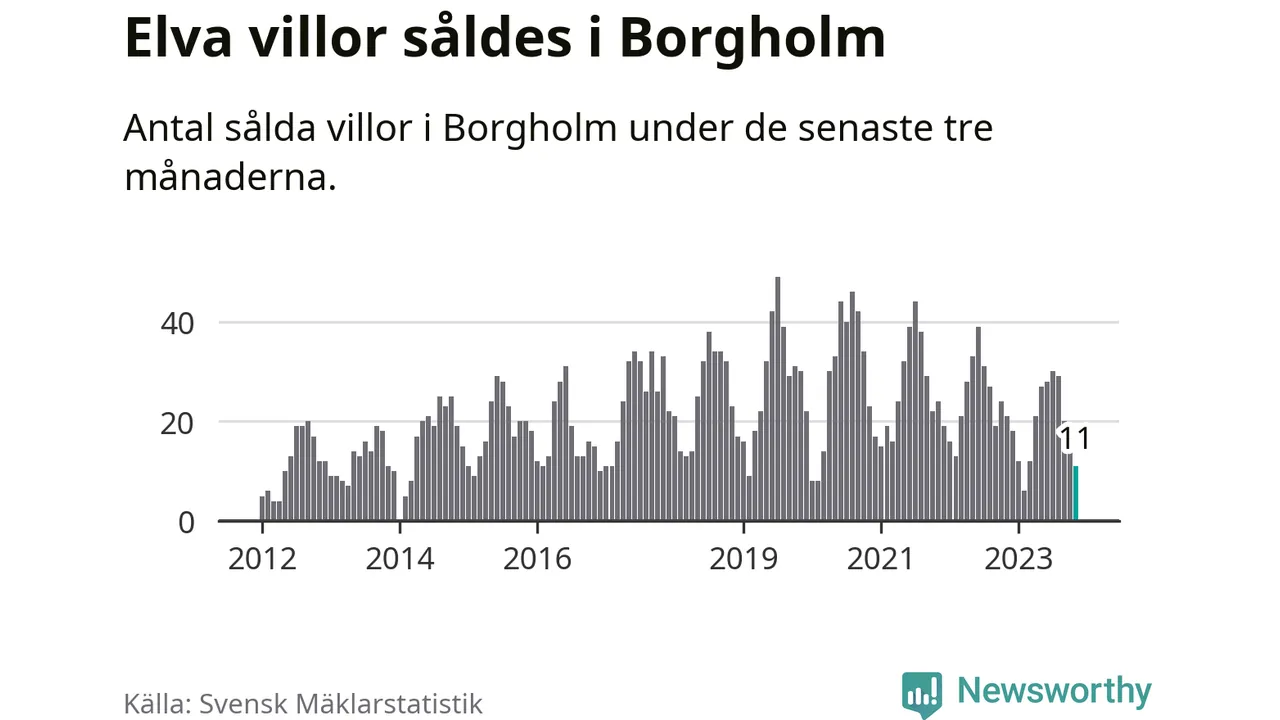 Mellan september och november gjordes sammanlagt elva affärer med villor i Borgholms kommun. Det kan jämföras med 21 vid motsvarande tid i fjol.