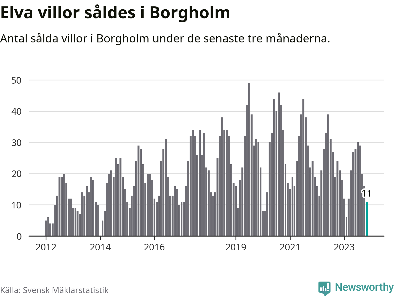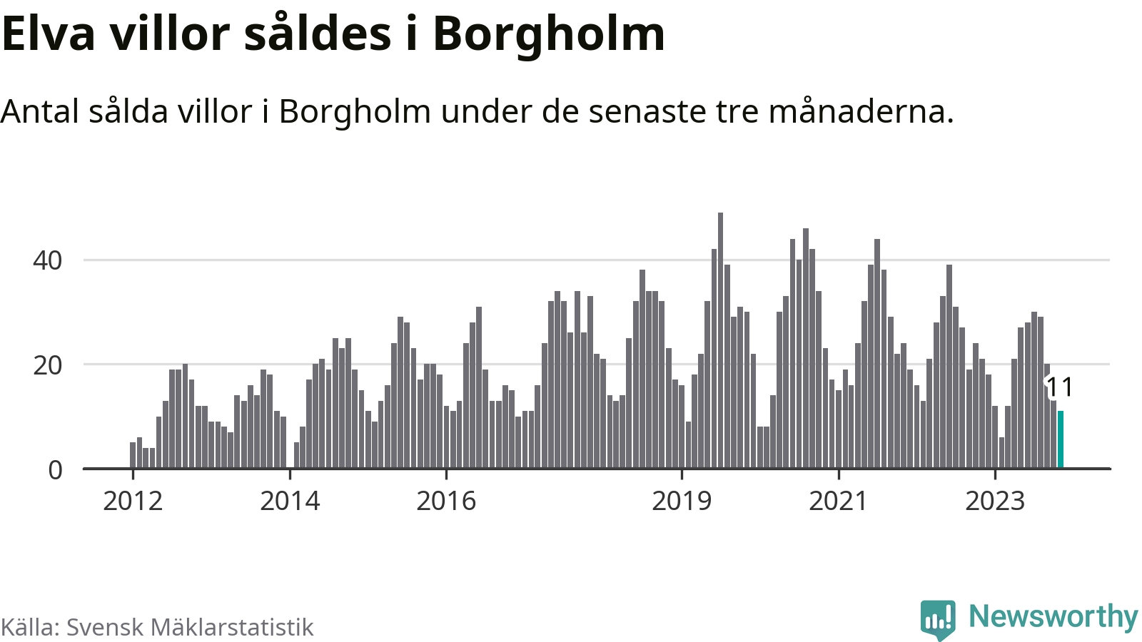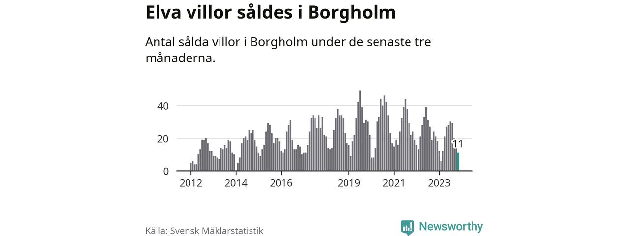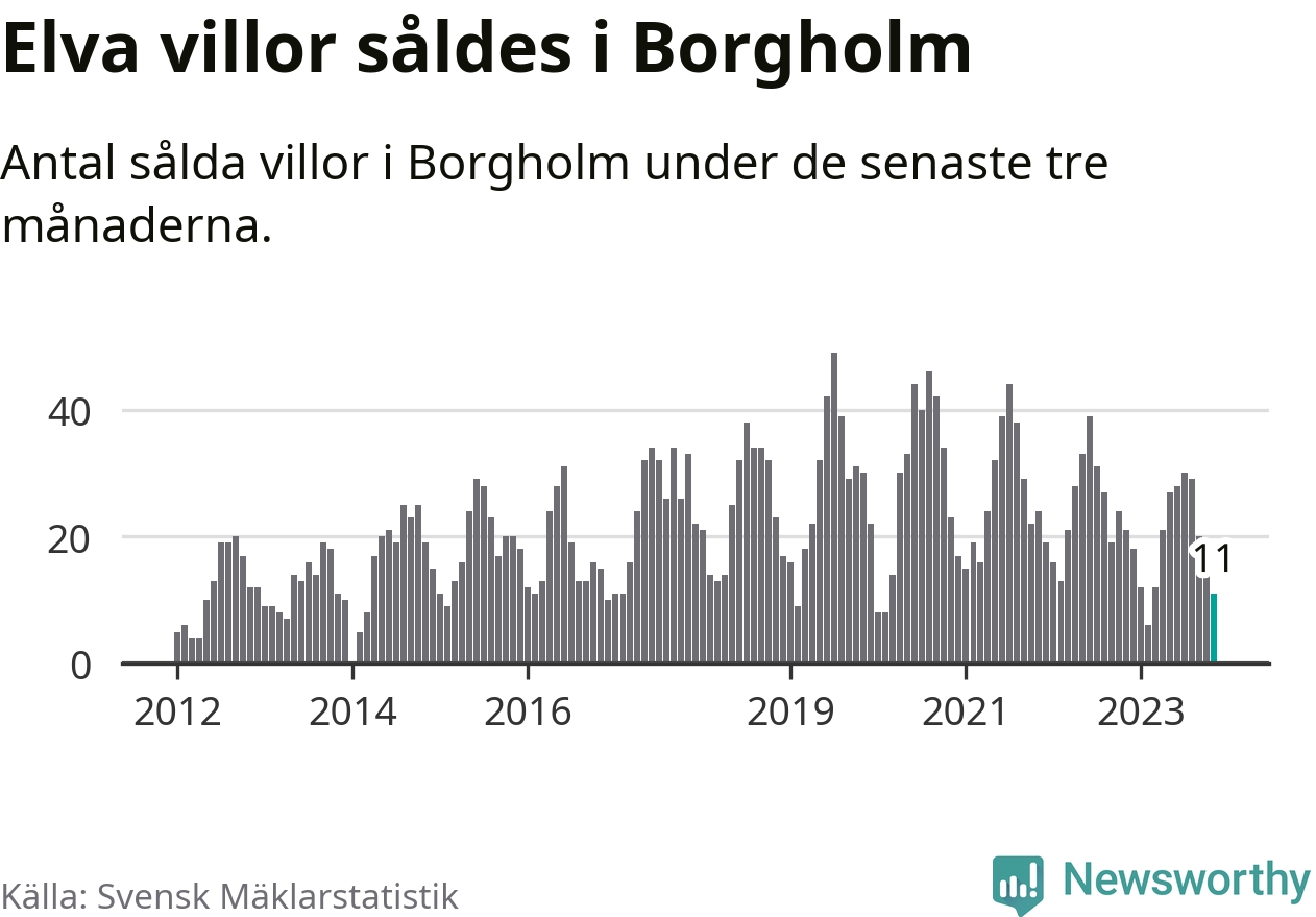 Mellan september och november gjordes sammanlagt elva affärer med villor i Borgholms kommun. Det kan jämföras med 21 vid motsvarande tid i fjol.