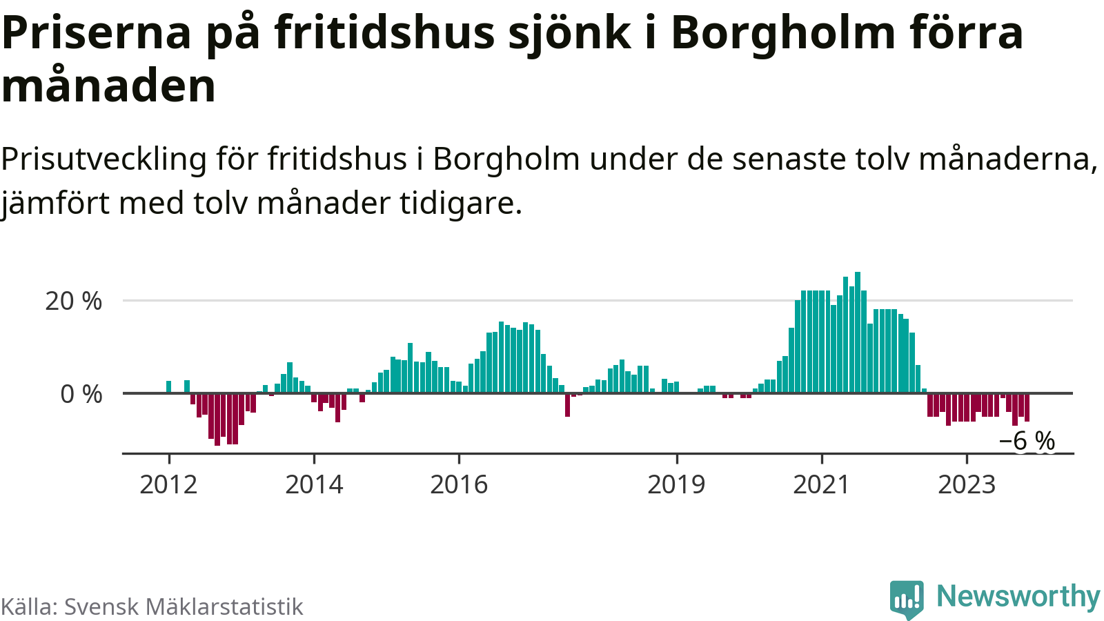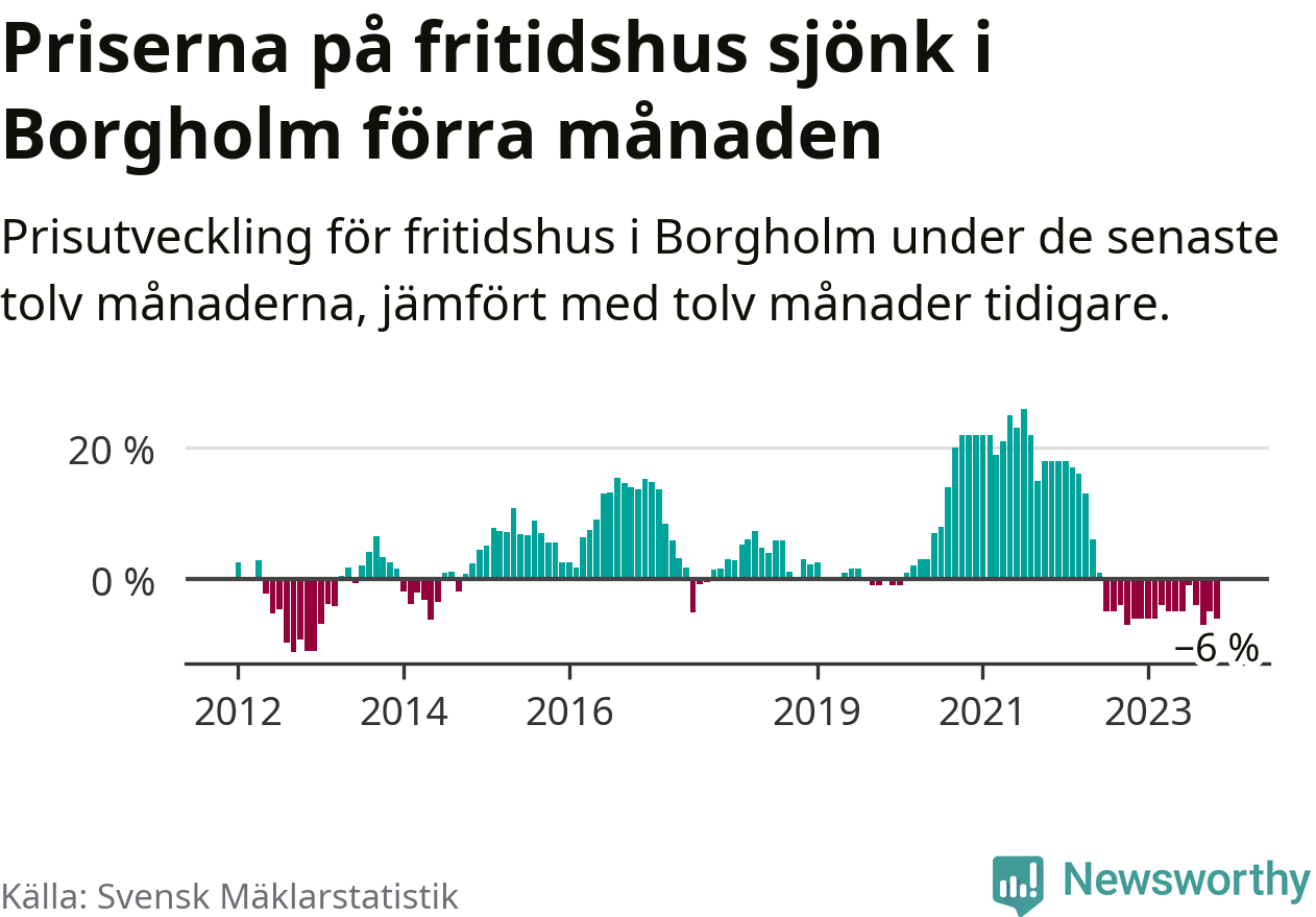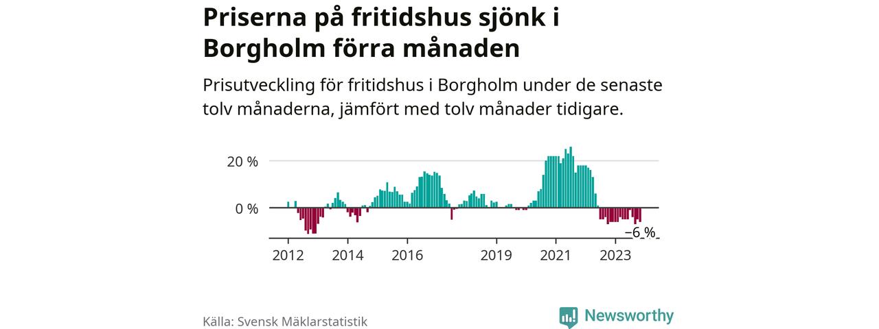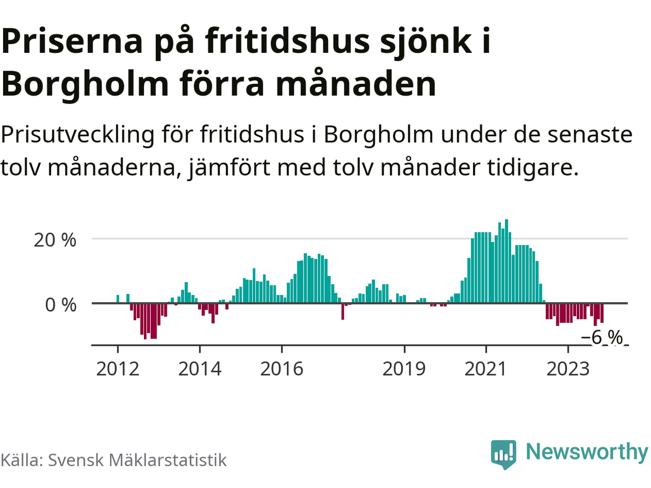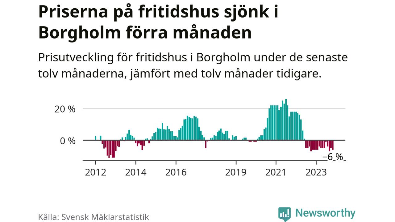 Priserna på fritidshus har gått ner i Borgholms kommun. Medelpriset på försäljningarna under de senaste tolv månaderna visar på en nedgång med 6 procent.
