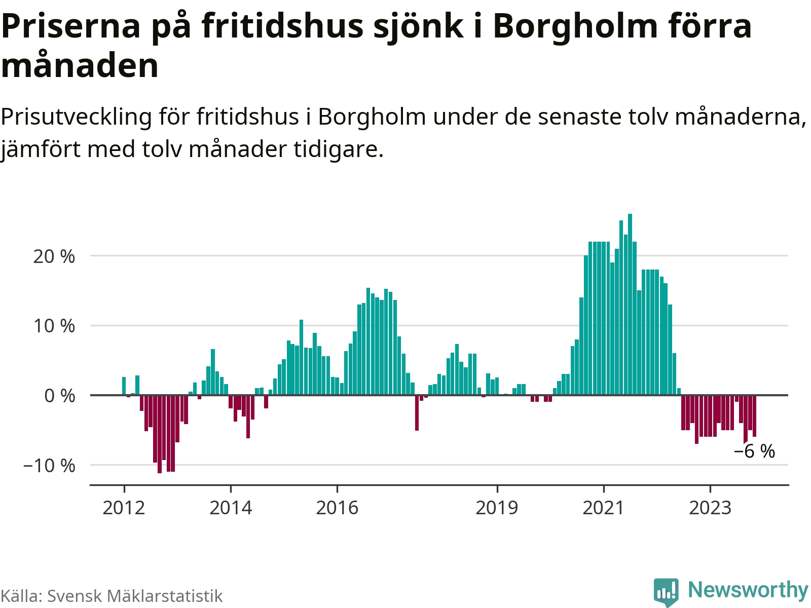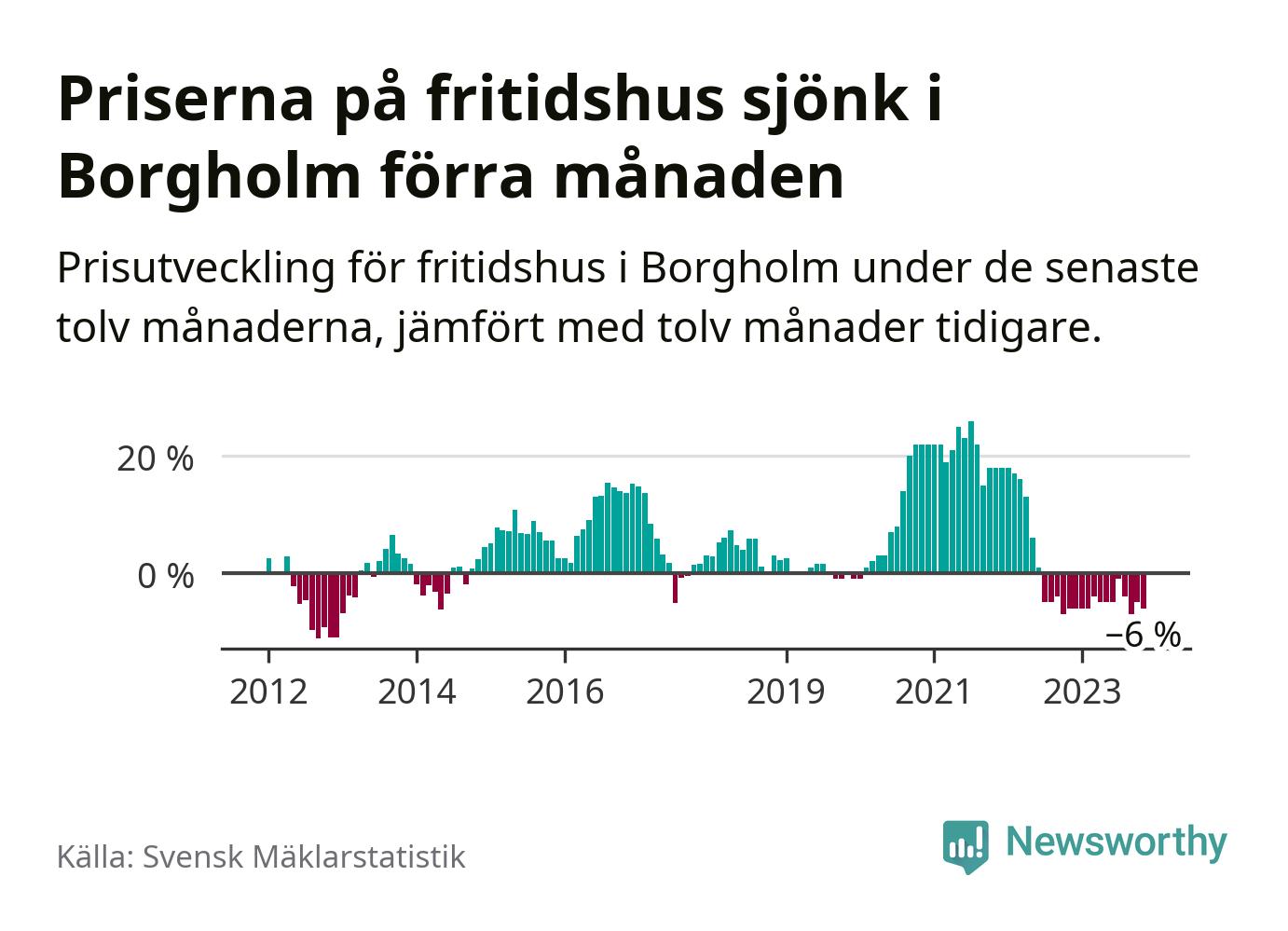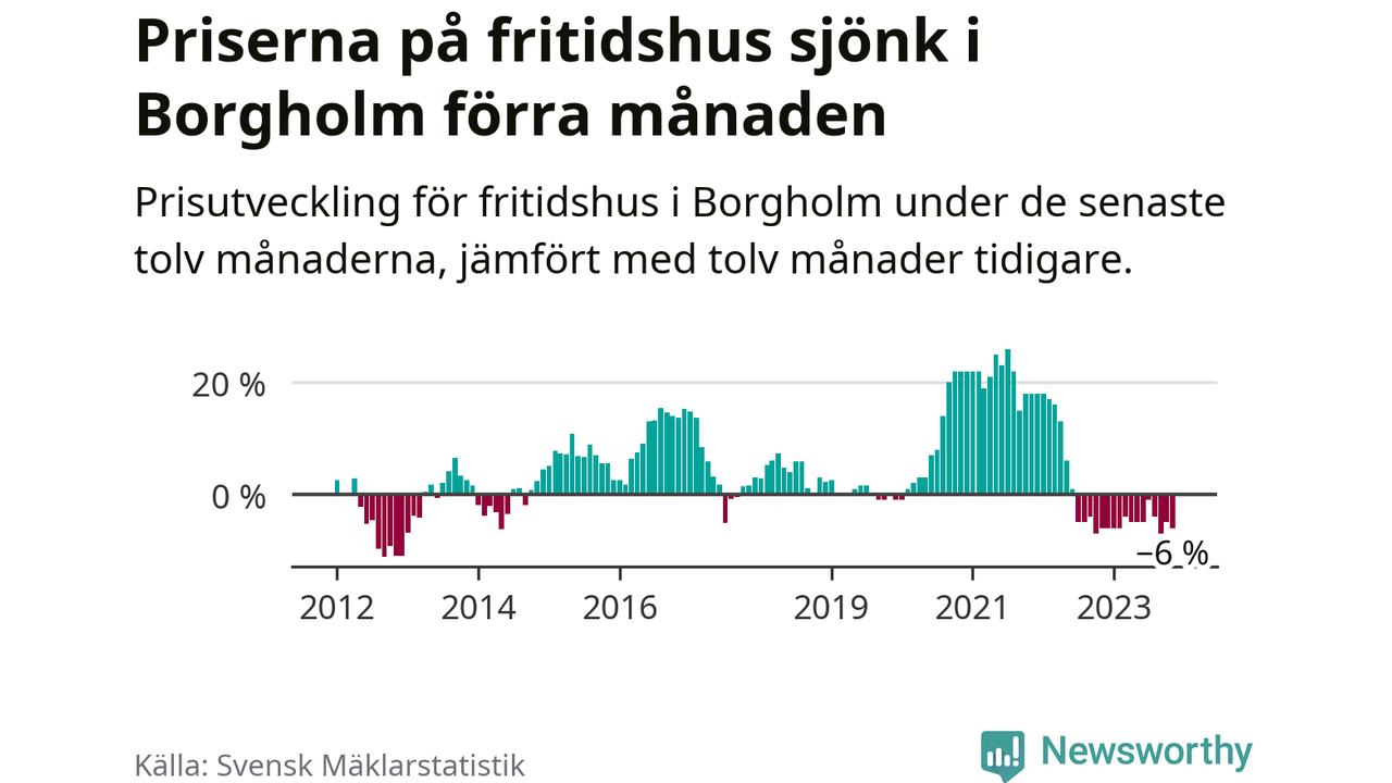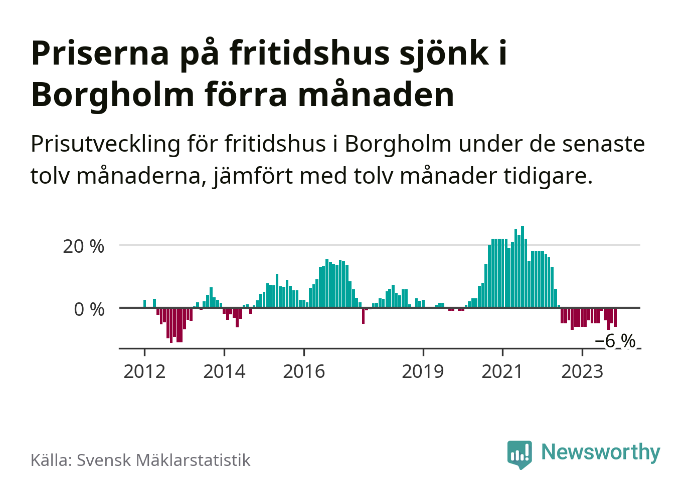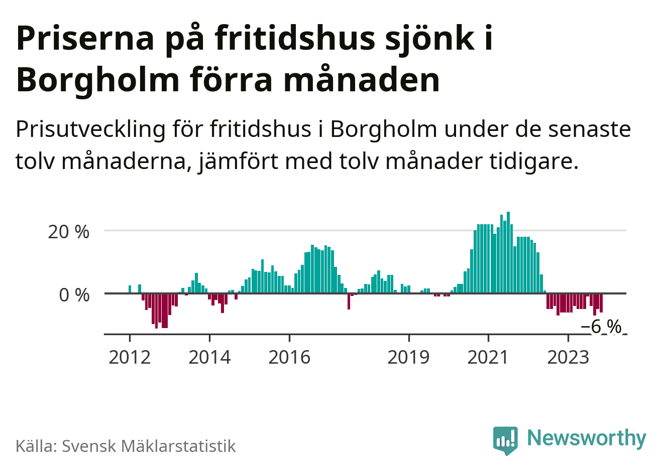 Priserna på fritidshus har gått ner i Borgholms kommun. Medelpriset på försäljningarna under de senaste tolv månaderna visar på en nedgång med 6 procent.