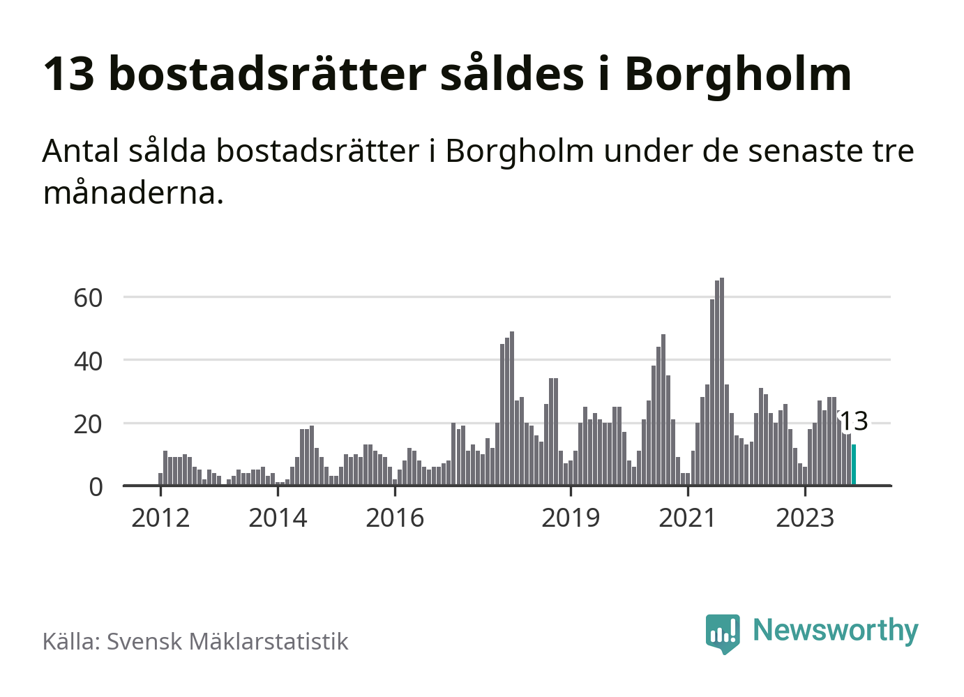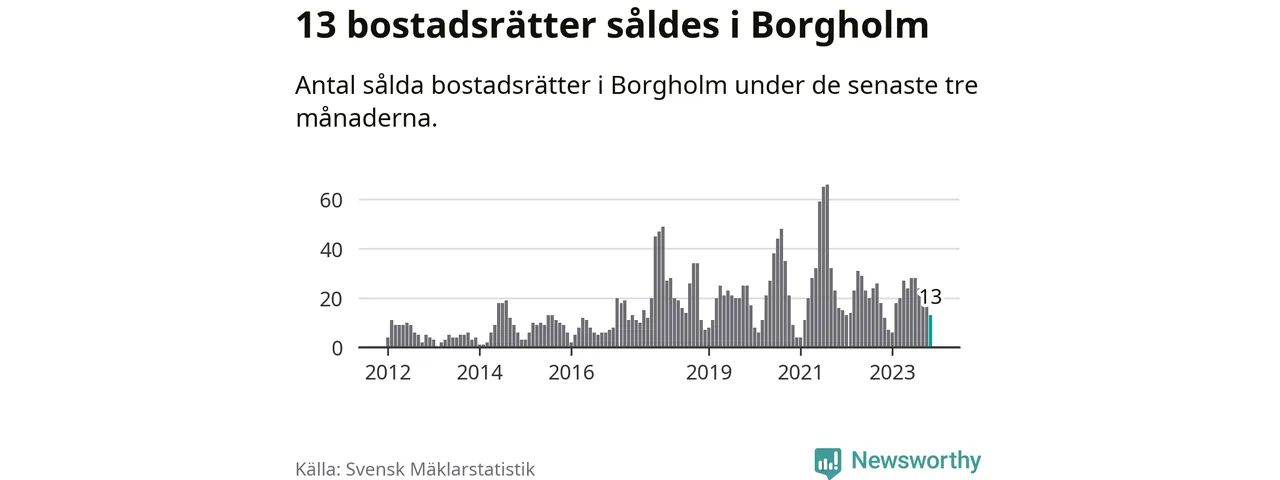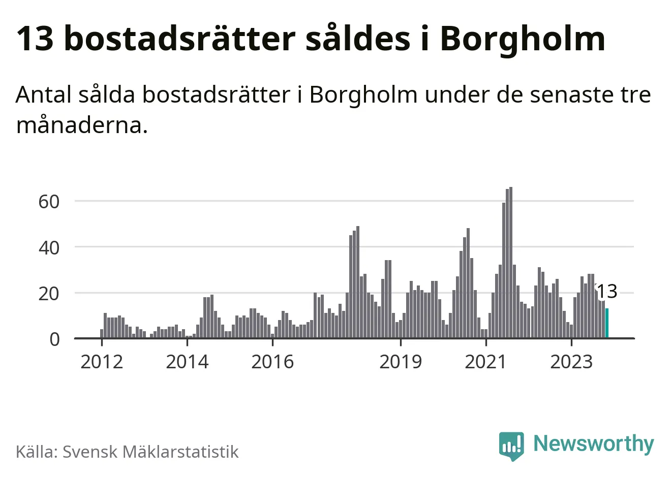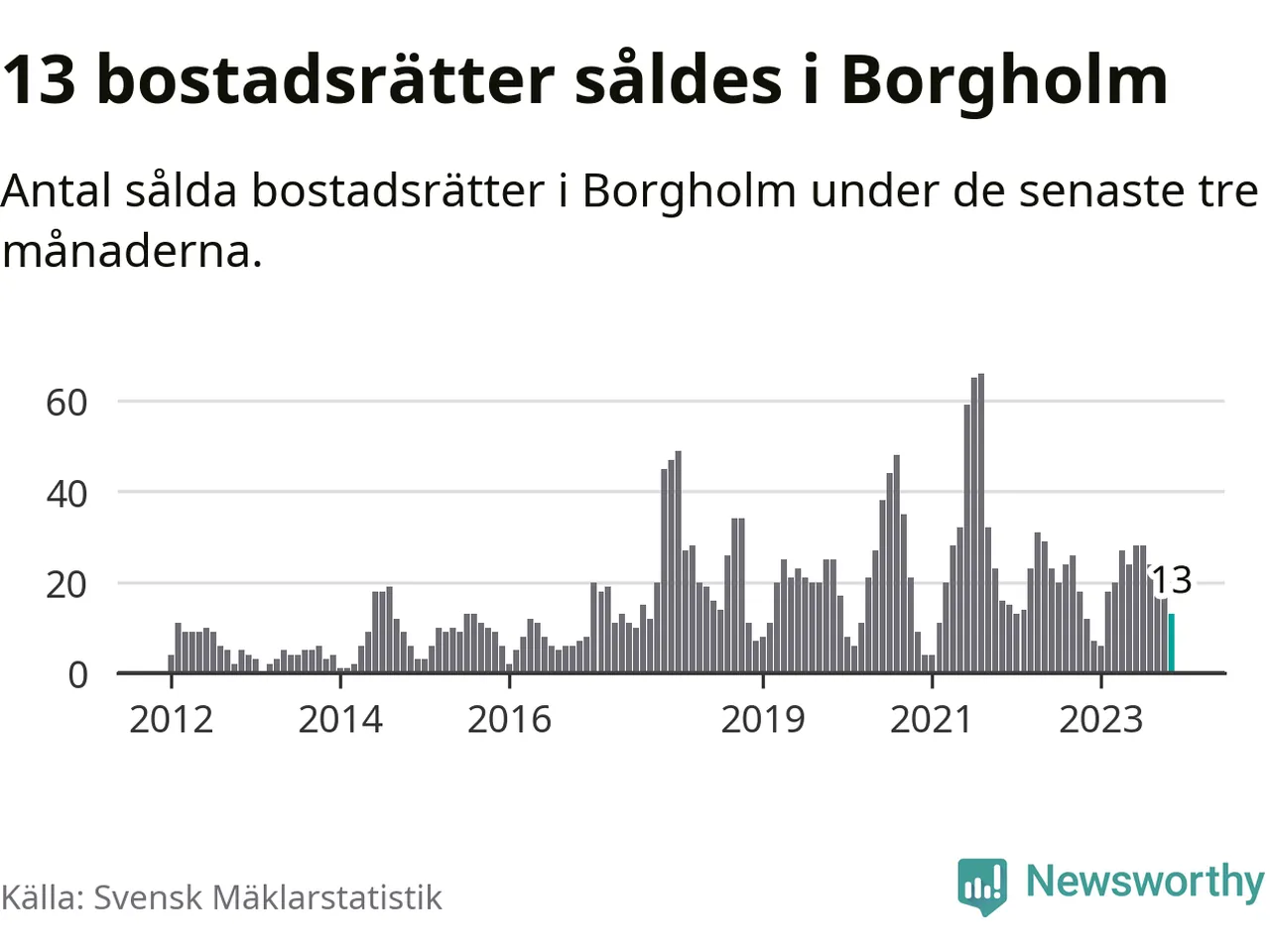 Mellan september och november gjordes sammanlagt 13 affärer med bostadsrätter i Borgholms kommun. Det kan jämföras med tolv vid motsvarande tid i fjol.