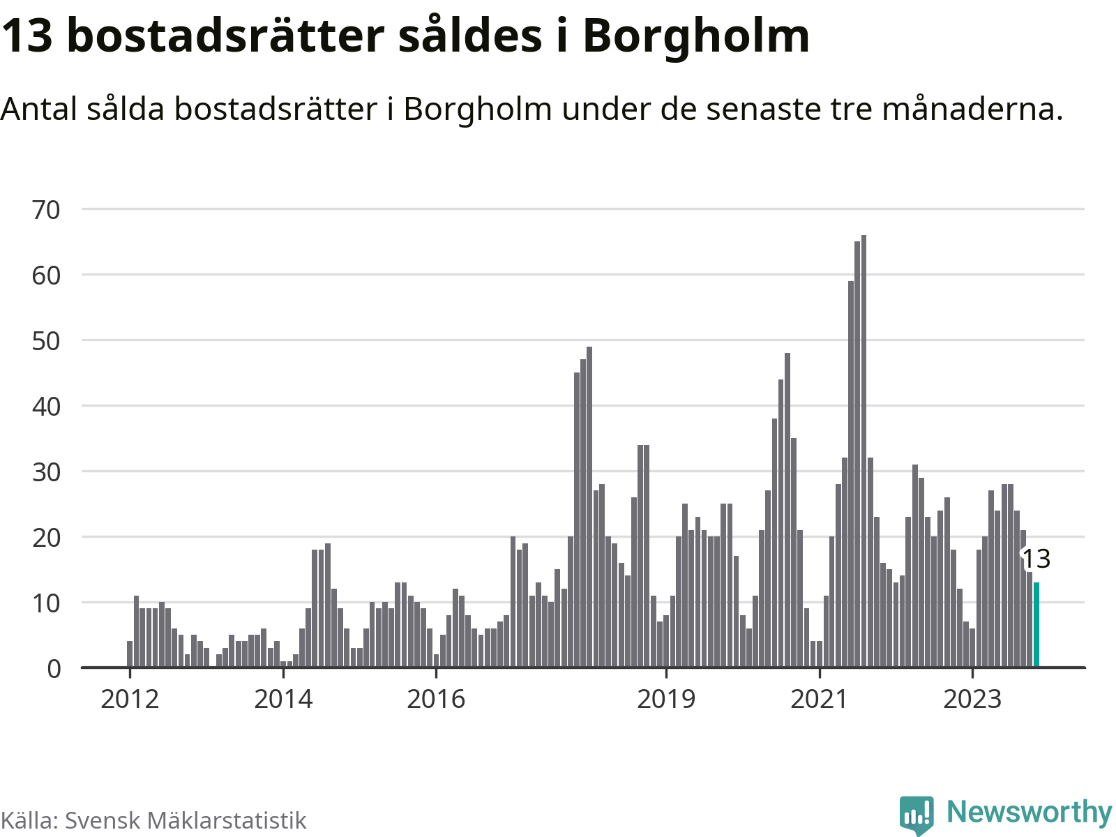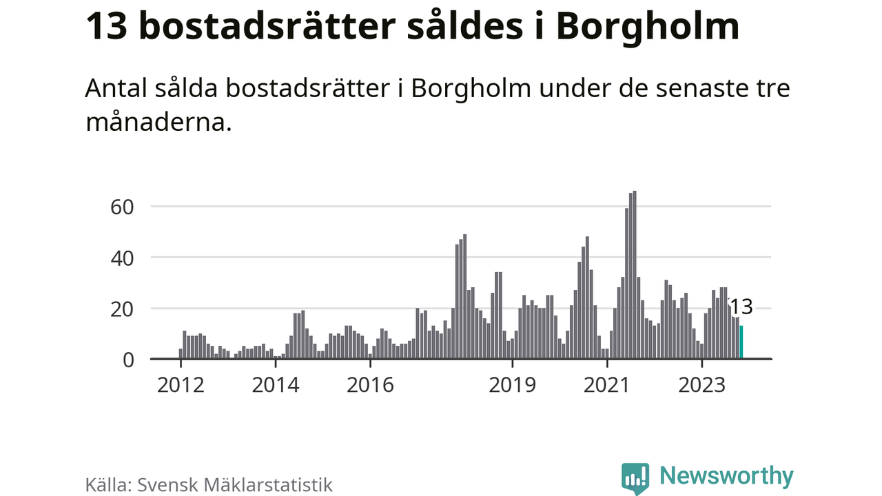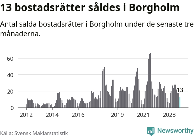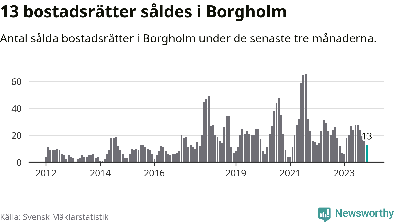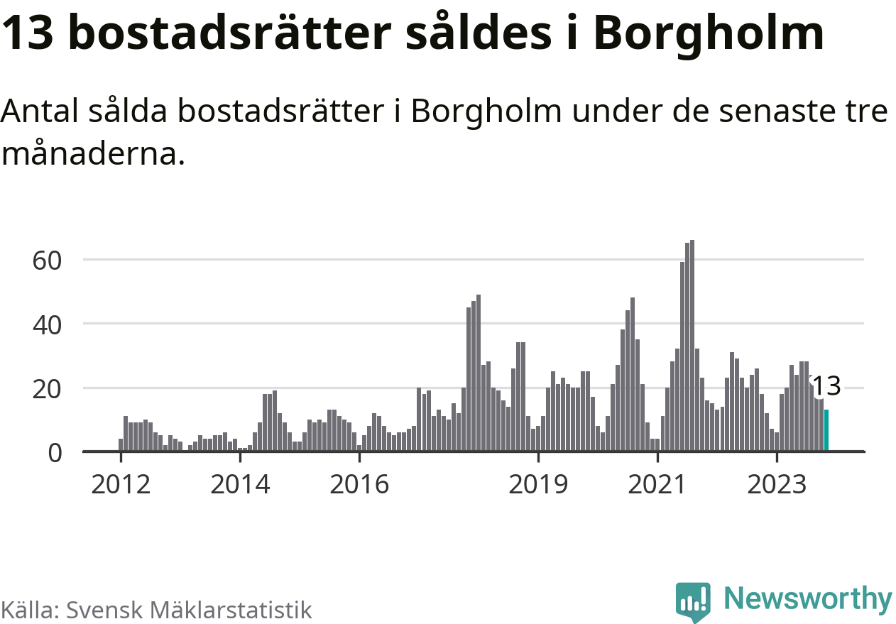 Mellan september och november gjordes sammanlagt 13 affärer med bostadsrätter i Borgholms kommun. Det kan jämföras med tolv vid motsvarande tid i fjol.