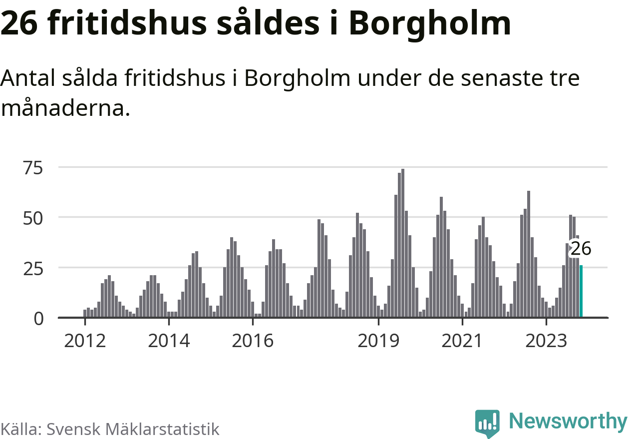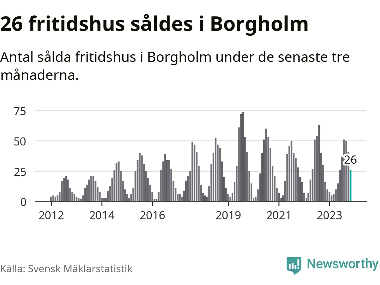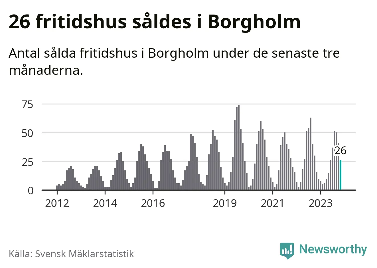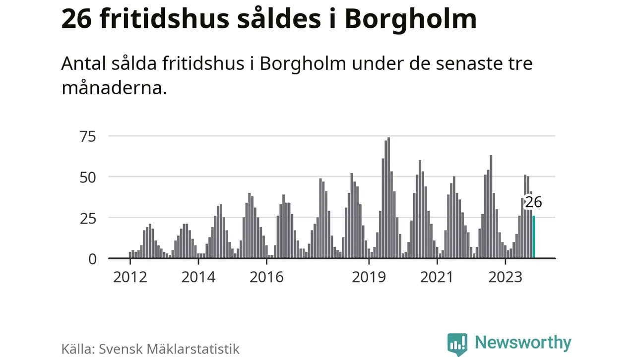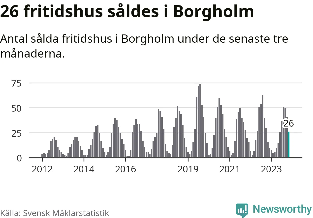 Sammanlagt såldes 26 fritidshus i Borgholms kommun mellan september och november till ett genomsnittligt pris på 2,3 miljoner kronor. I fjol gjordes 16 affärer vid den här tiden på året.