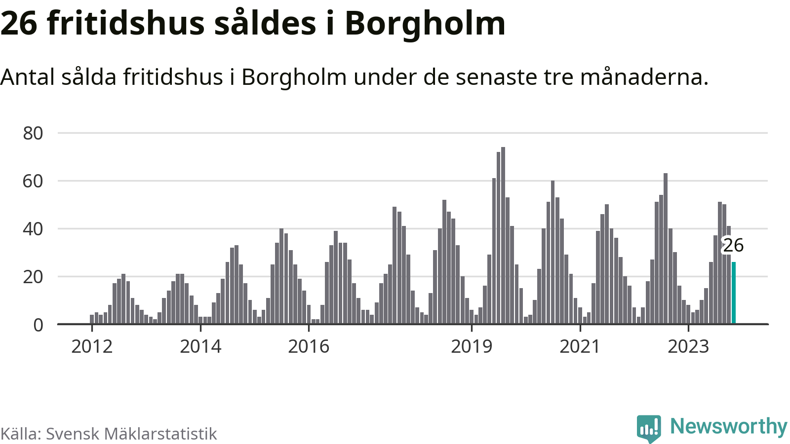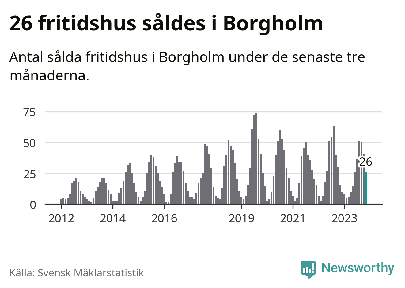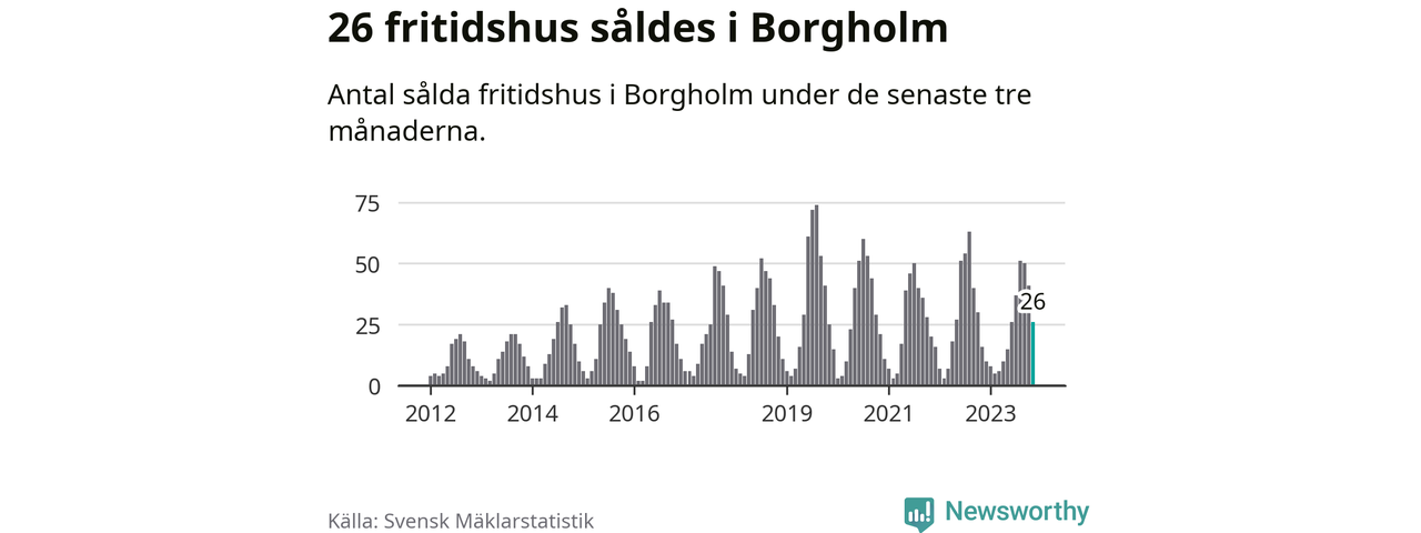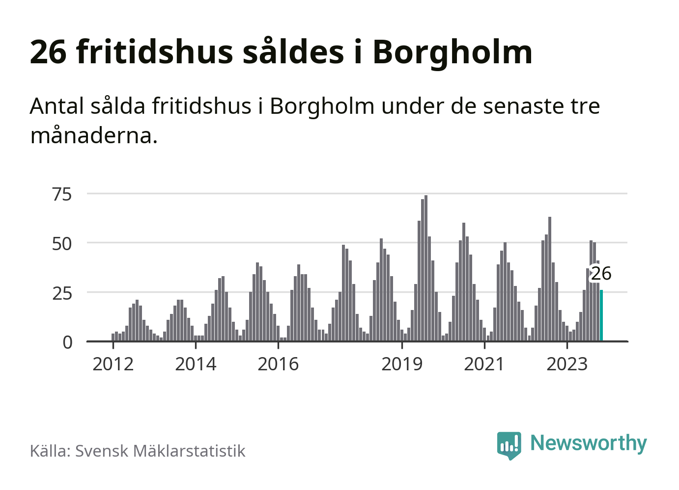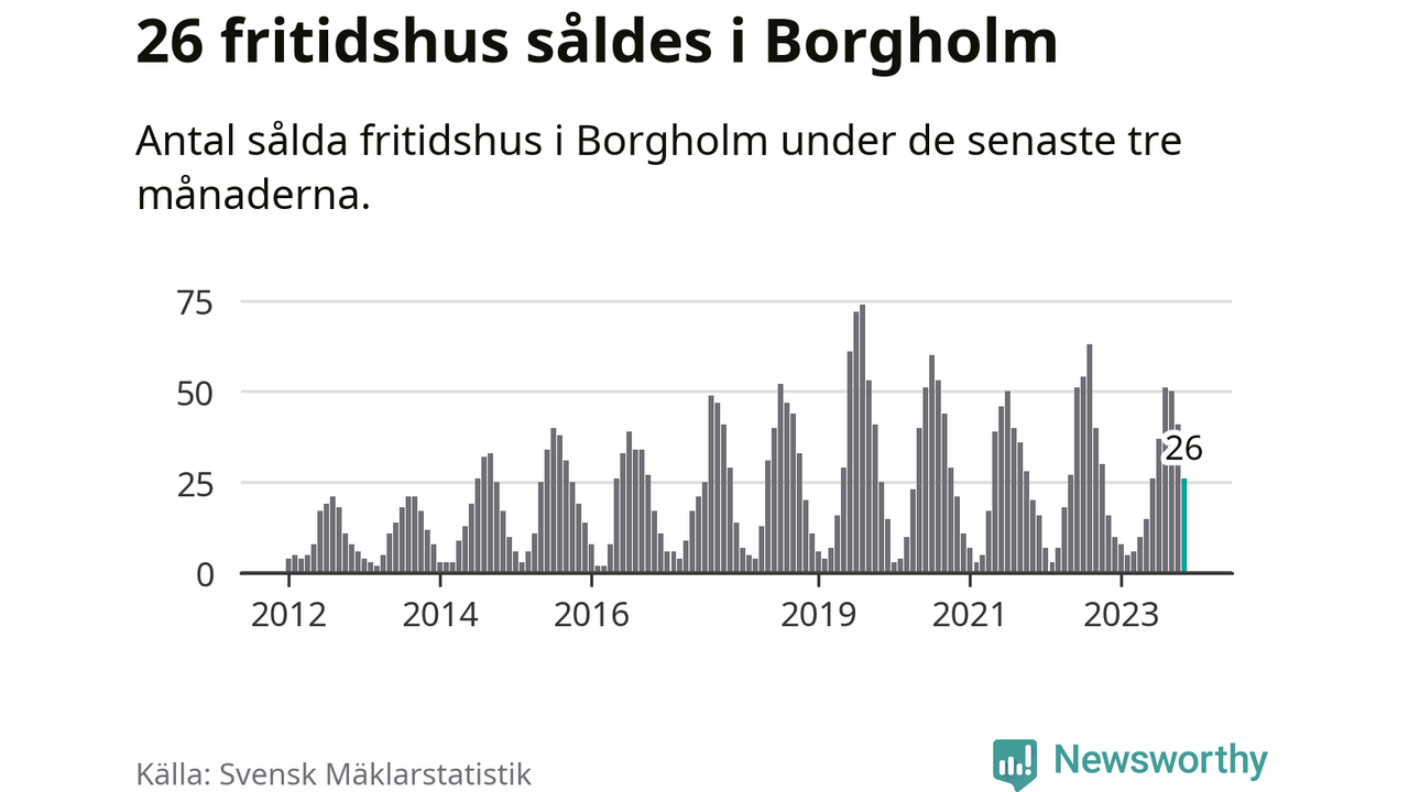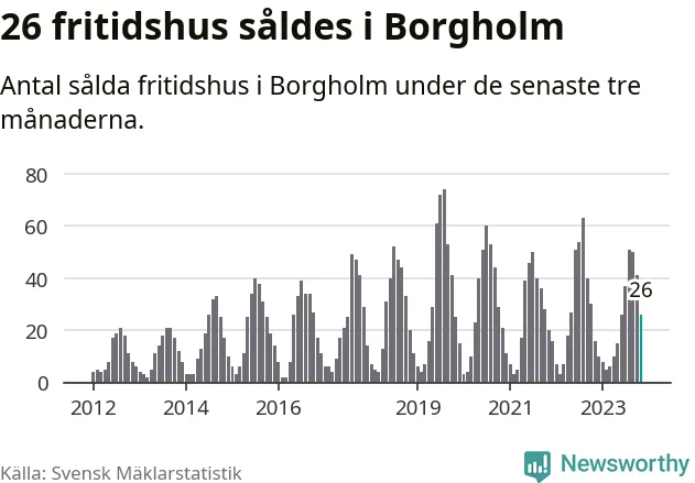Sammanlagt såldes 26 fritidshus i Borgholms kommun mellan september och november till ett genomsnittligt pris på 2,3 miljoner kronor. I fjol gjordes 16 affärer vid den här tiden på året.