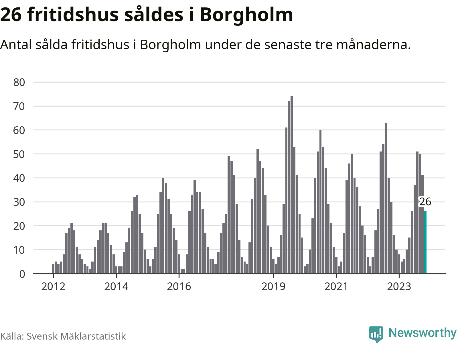 Graf: Antal sålda fritidshus i Borgholms kommun
