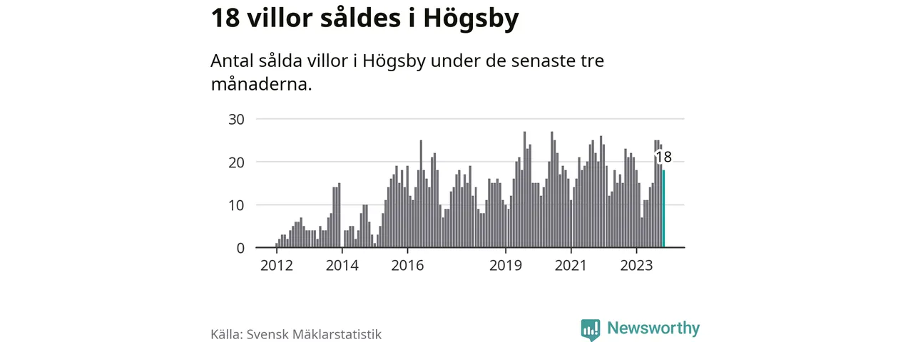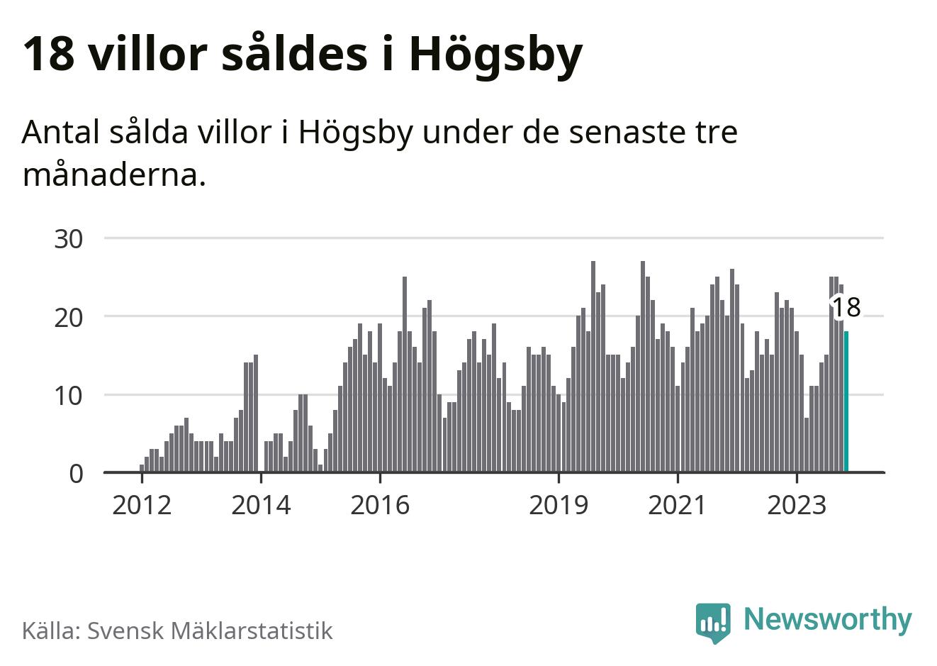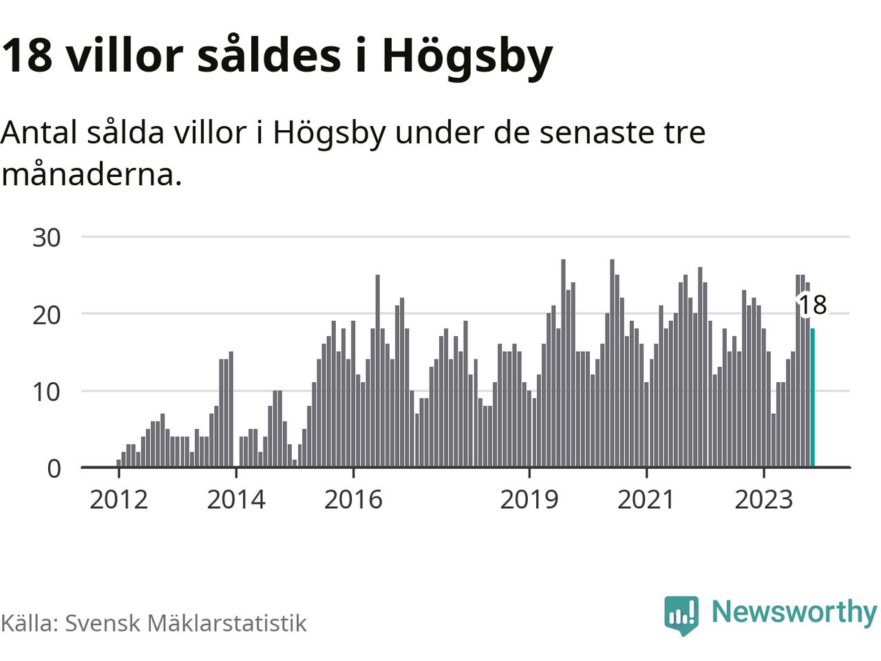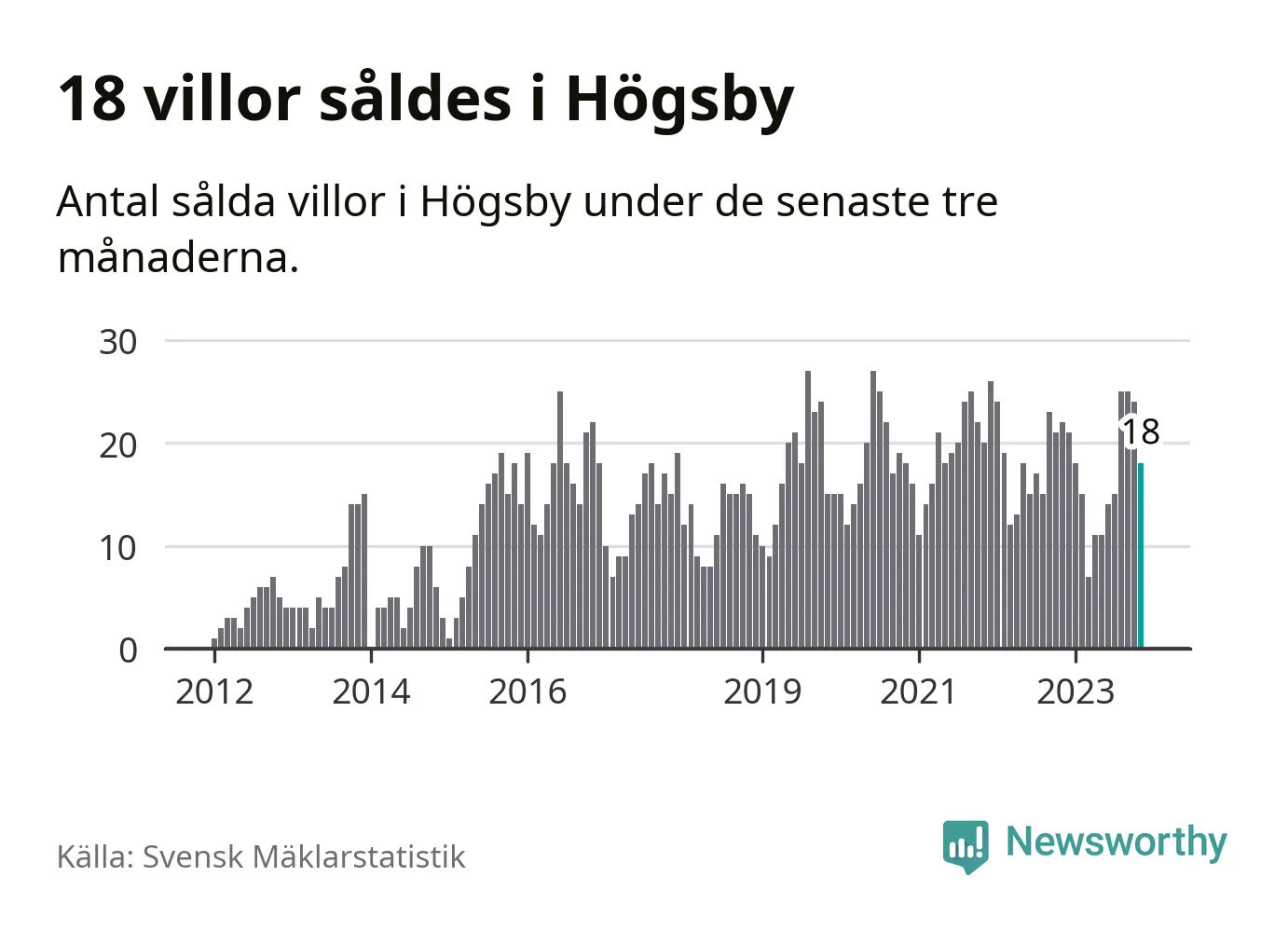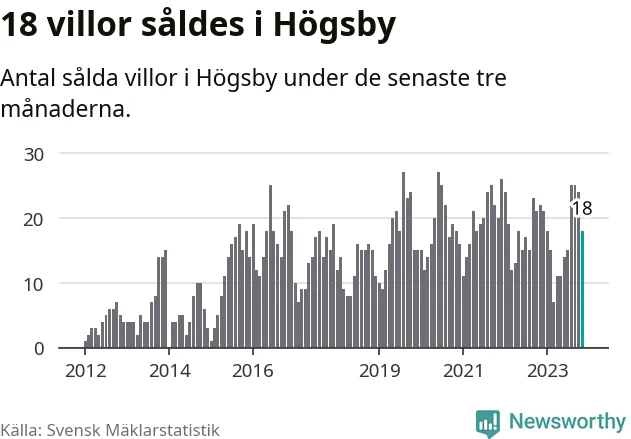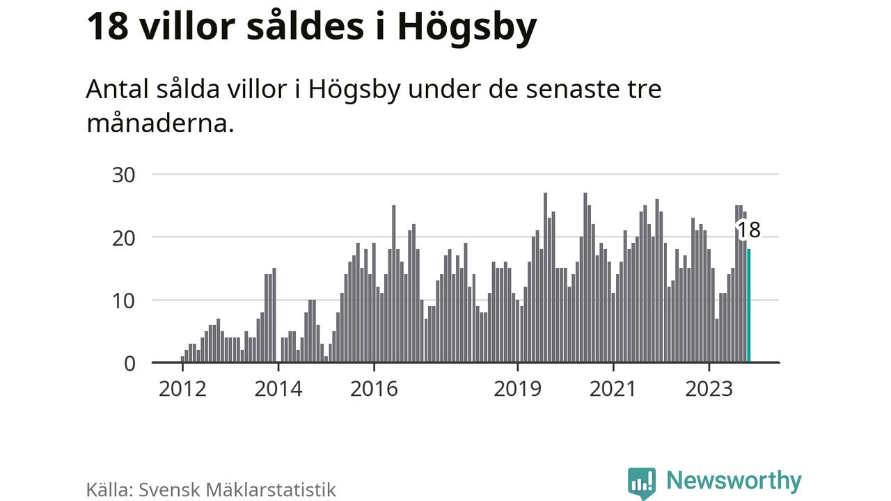 Mellan september och november gjordes sammanlagt 18 affärer med villor i Högsby kommun. Det kan jämföras med 22 vid motsvarande tid i fjol.