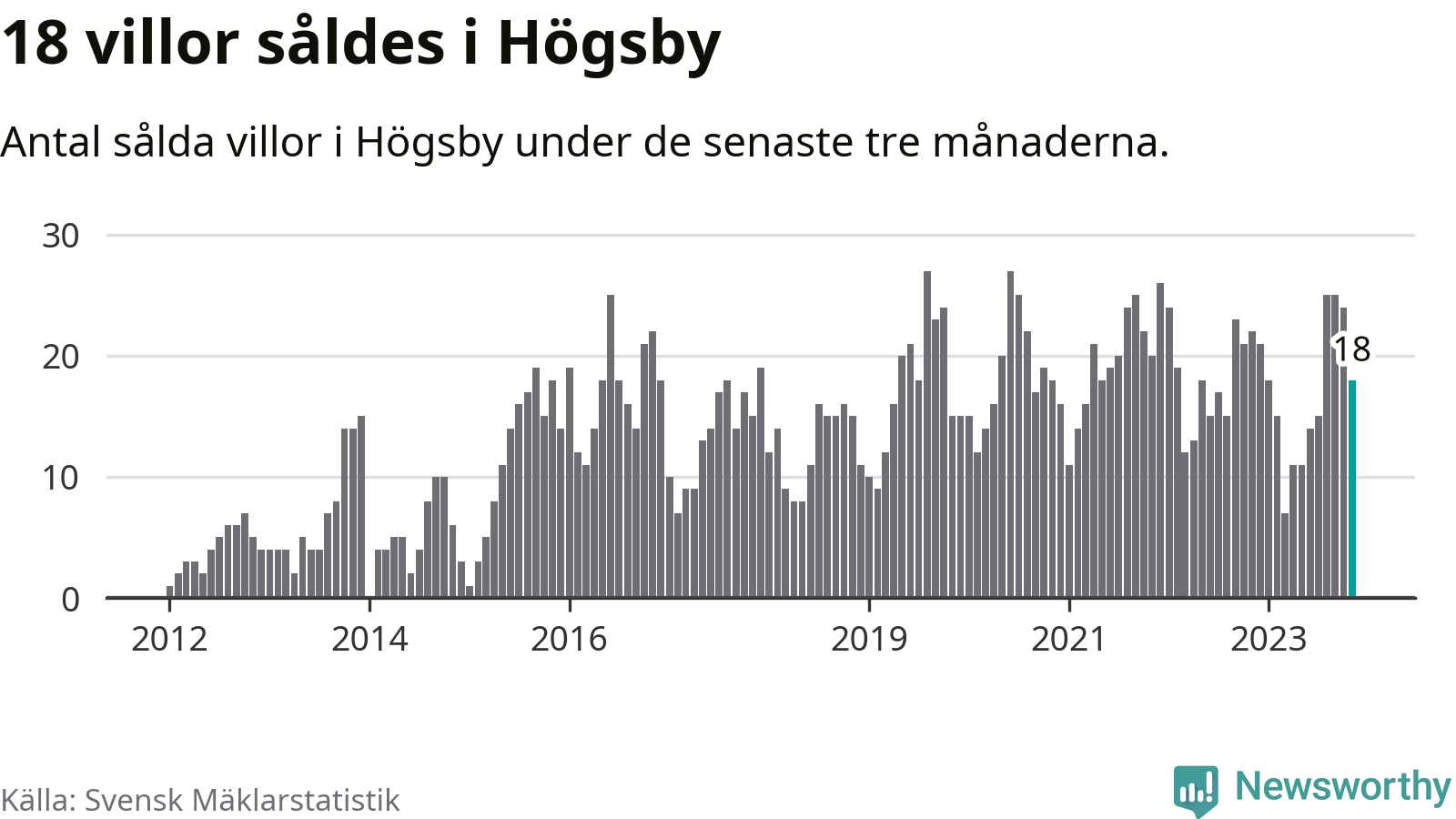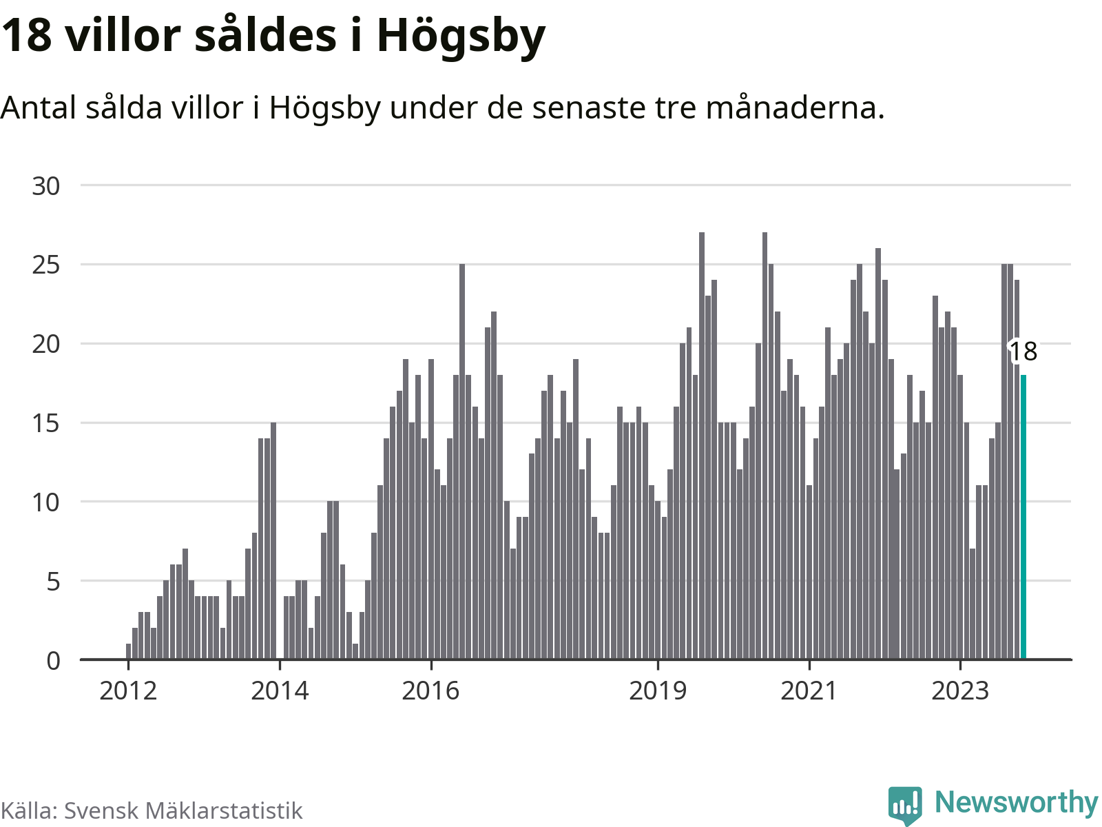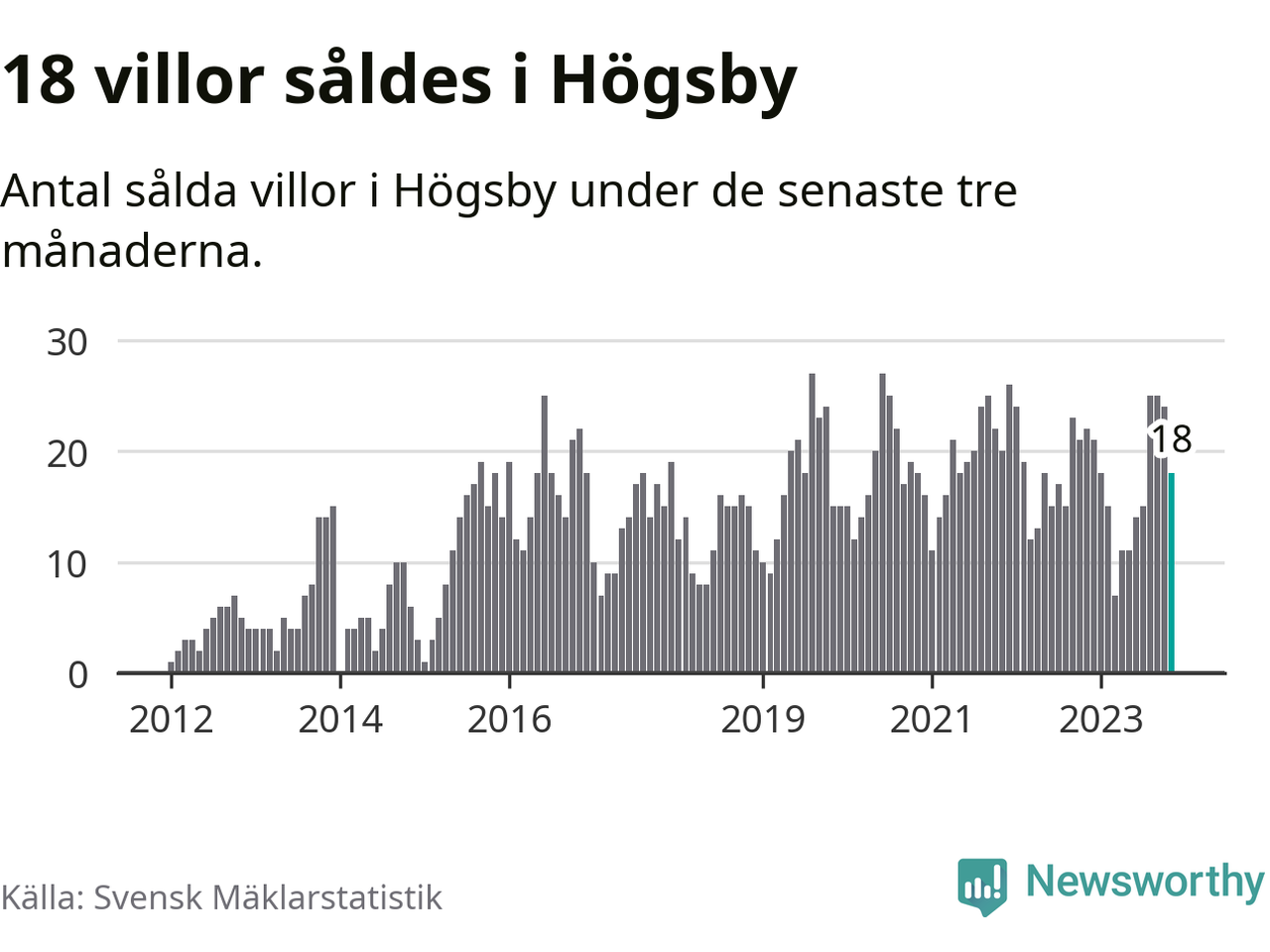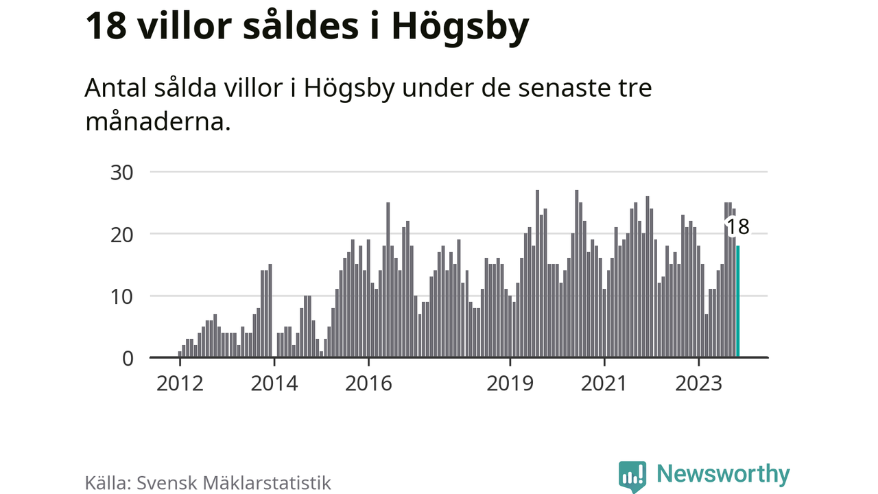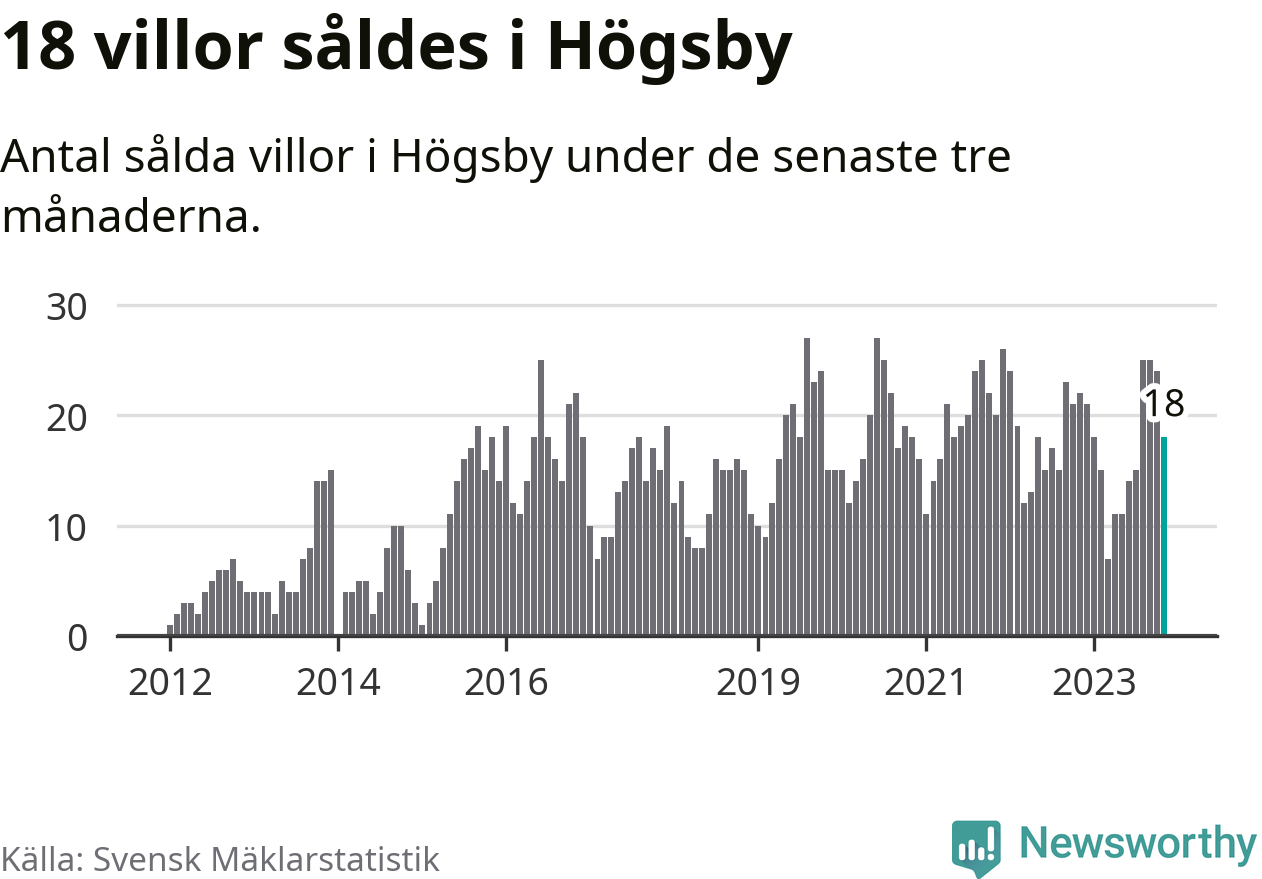 Mellan september och november gjordes sammanlagt 18 affärer med villor i Högsby kommun. Det kan jämföras med 22 vid motsvarande tid i fjol.