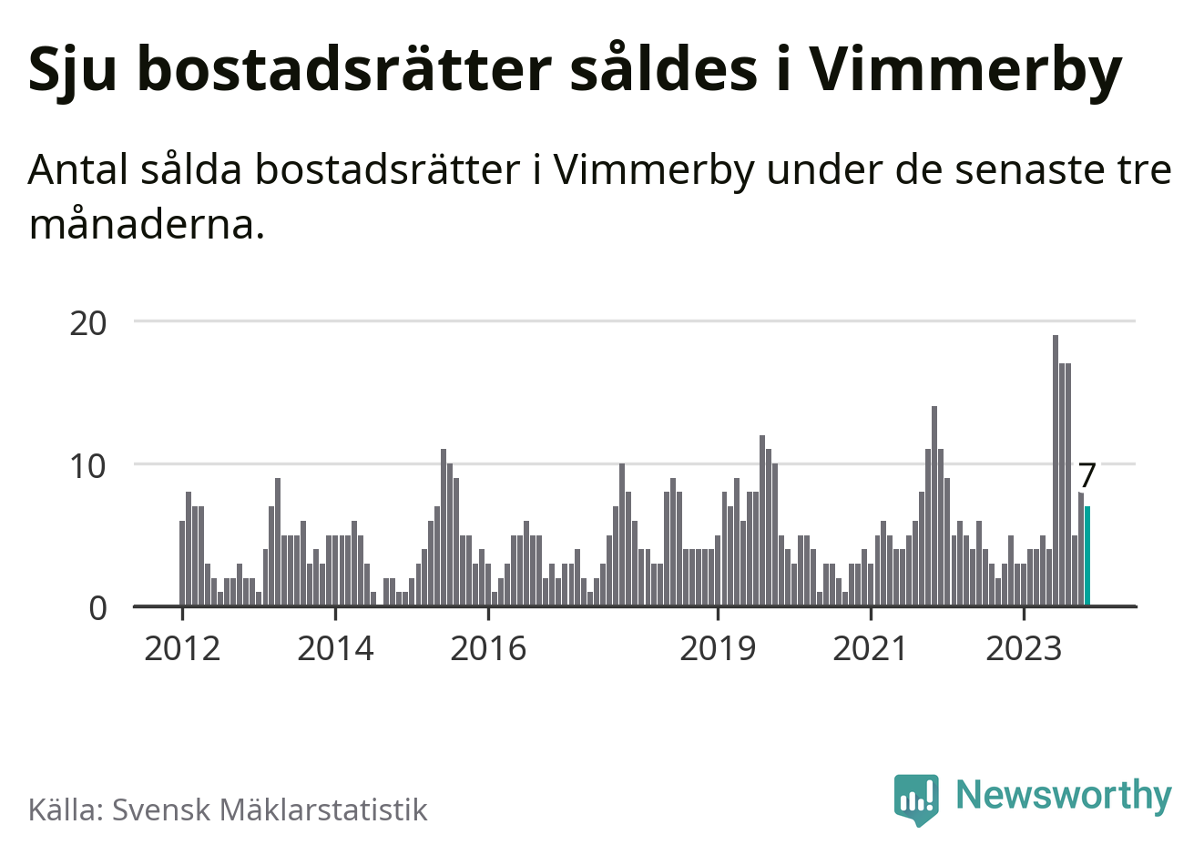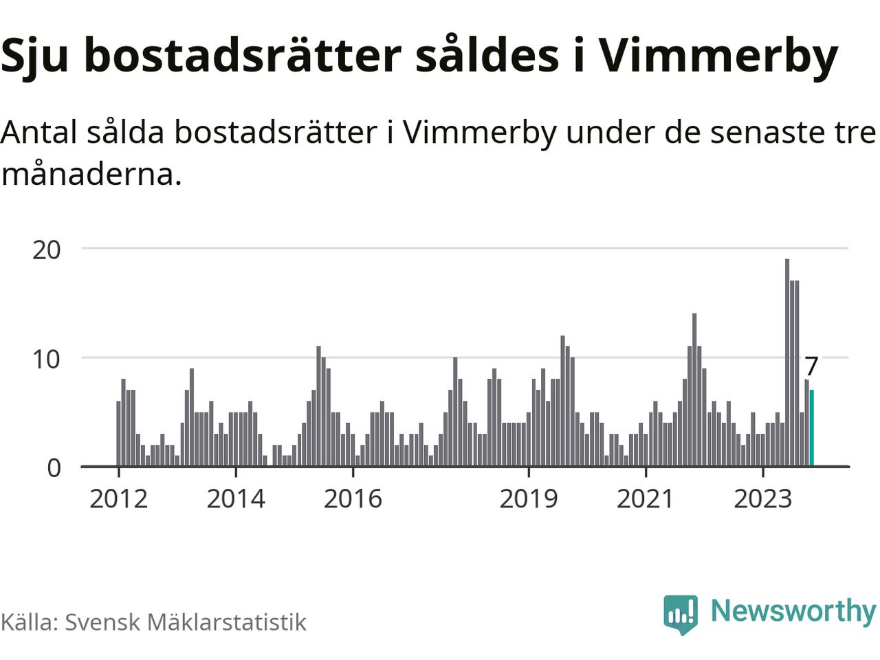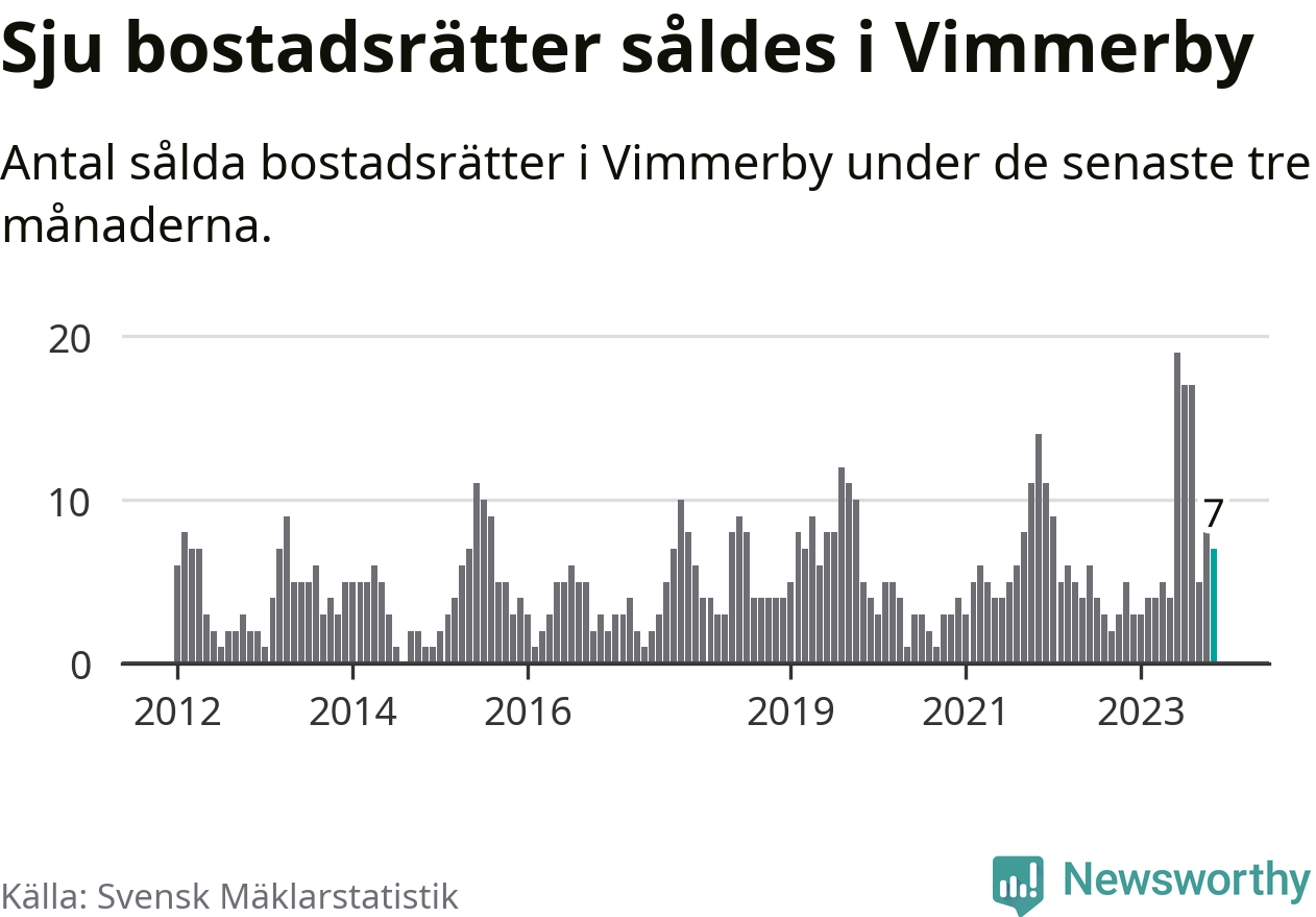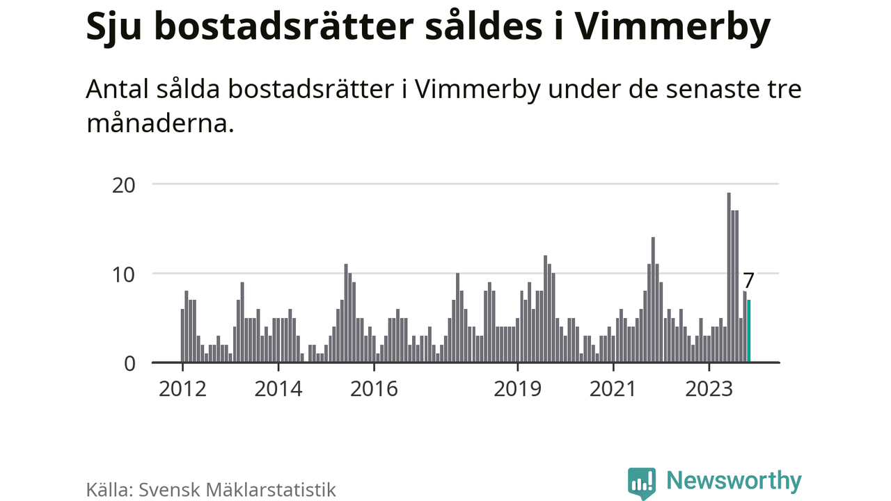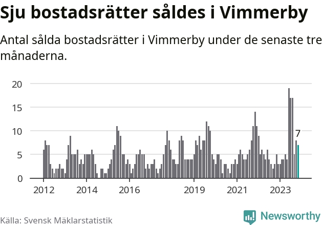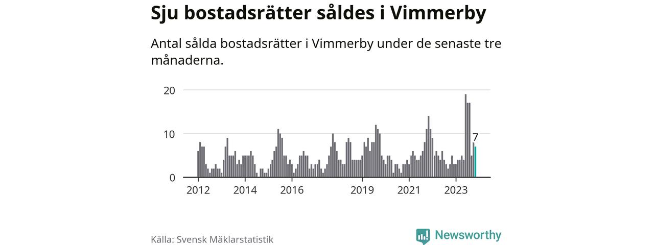 Mellan september och november gjordes sammanlagt sju affärer med bostadsrätter i Vimmerby kommun. Det kan jämföras med fem vid motsvarande tid i fjol.