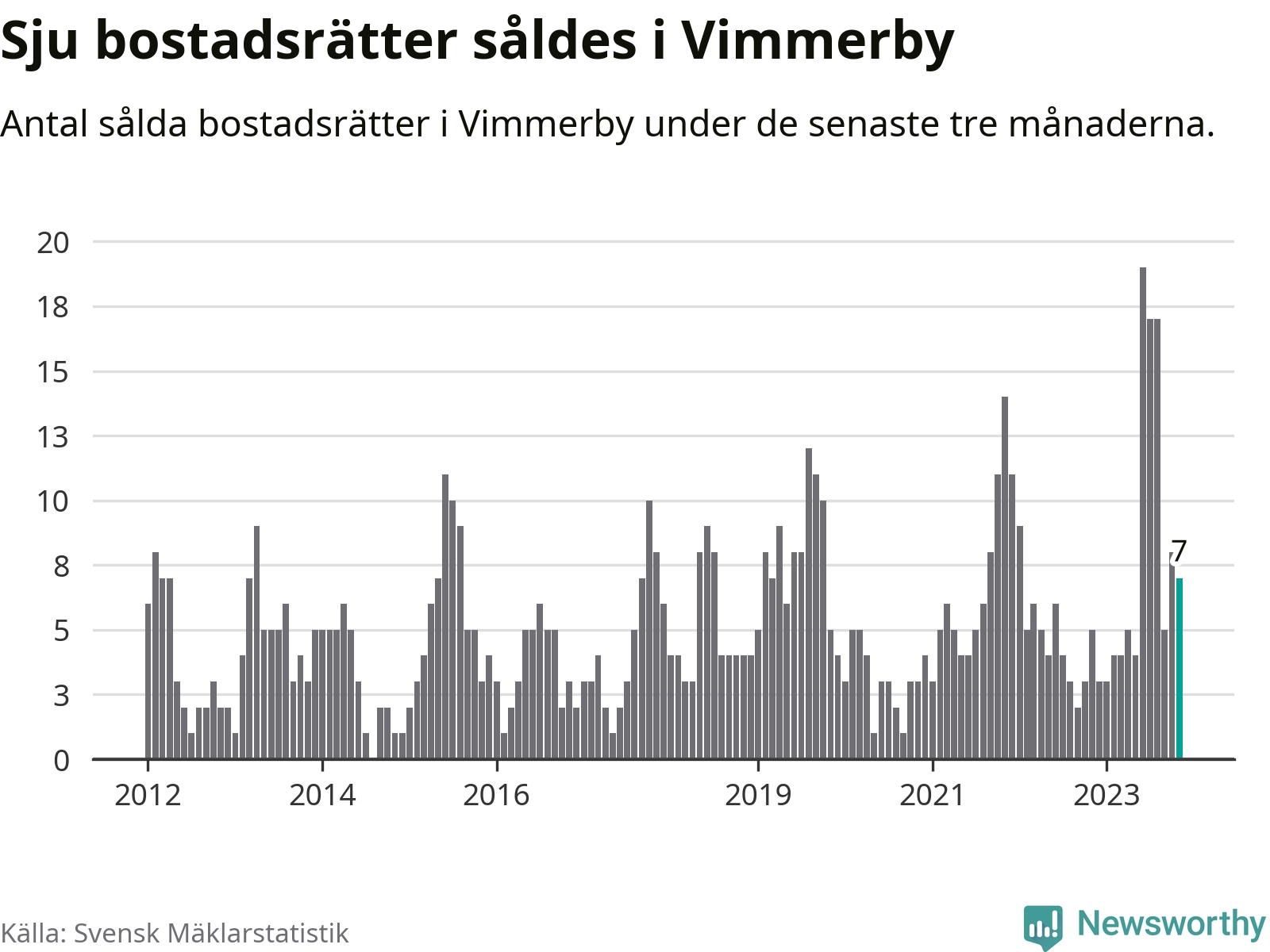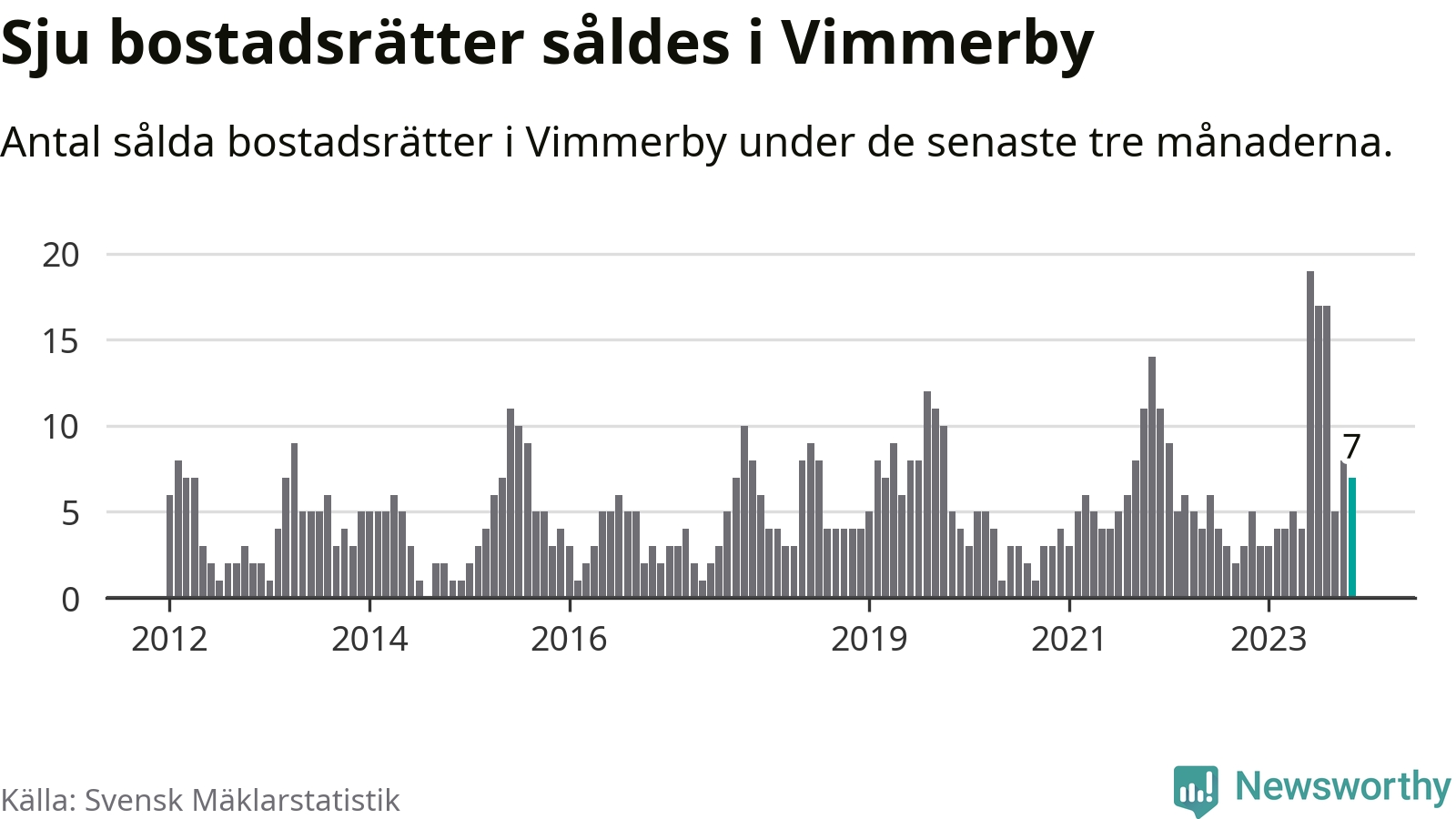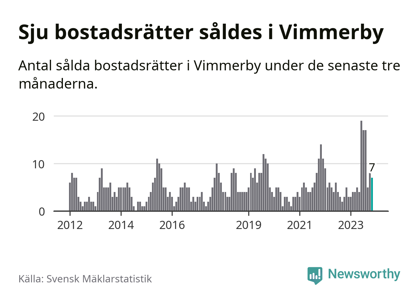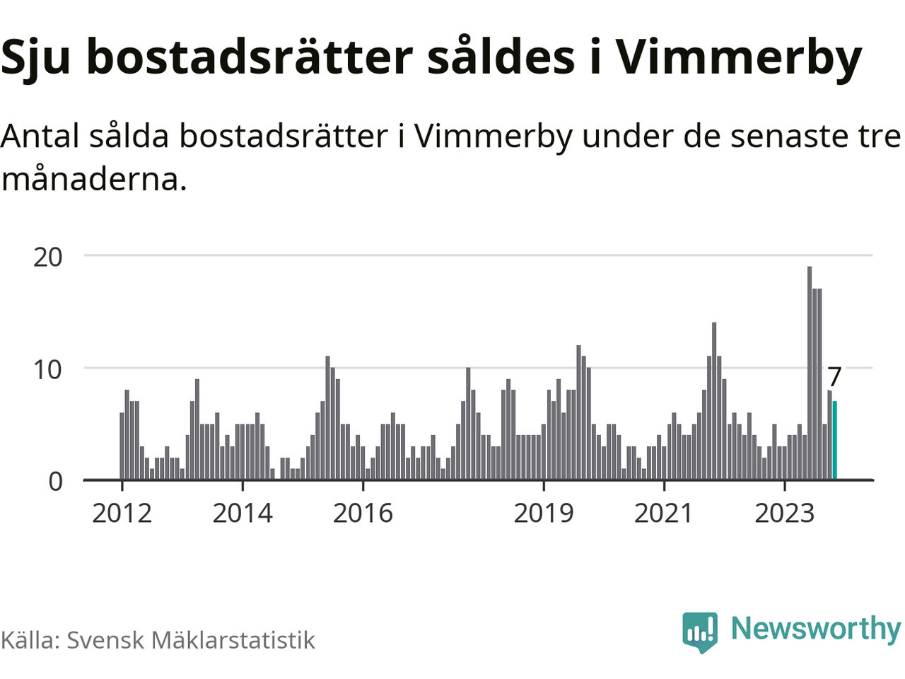 Mellan september och november gjordes sammanlagt sju affärer med bostadsrätter i Vimmerby kommun. Det kan jämföras med fem vid motsvarande tid i fjol.