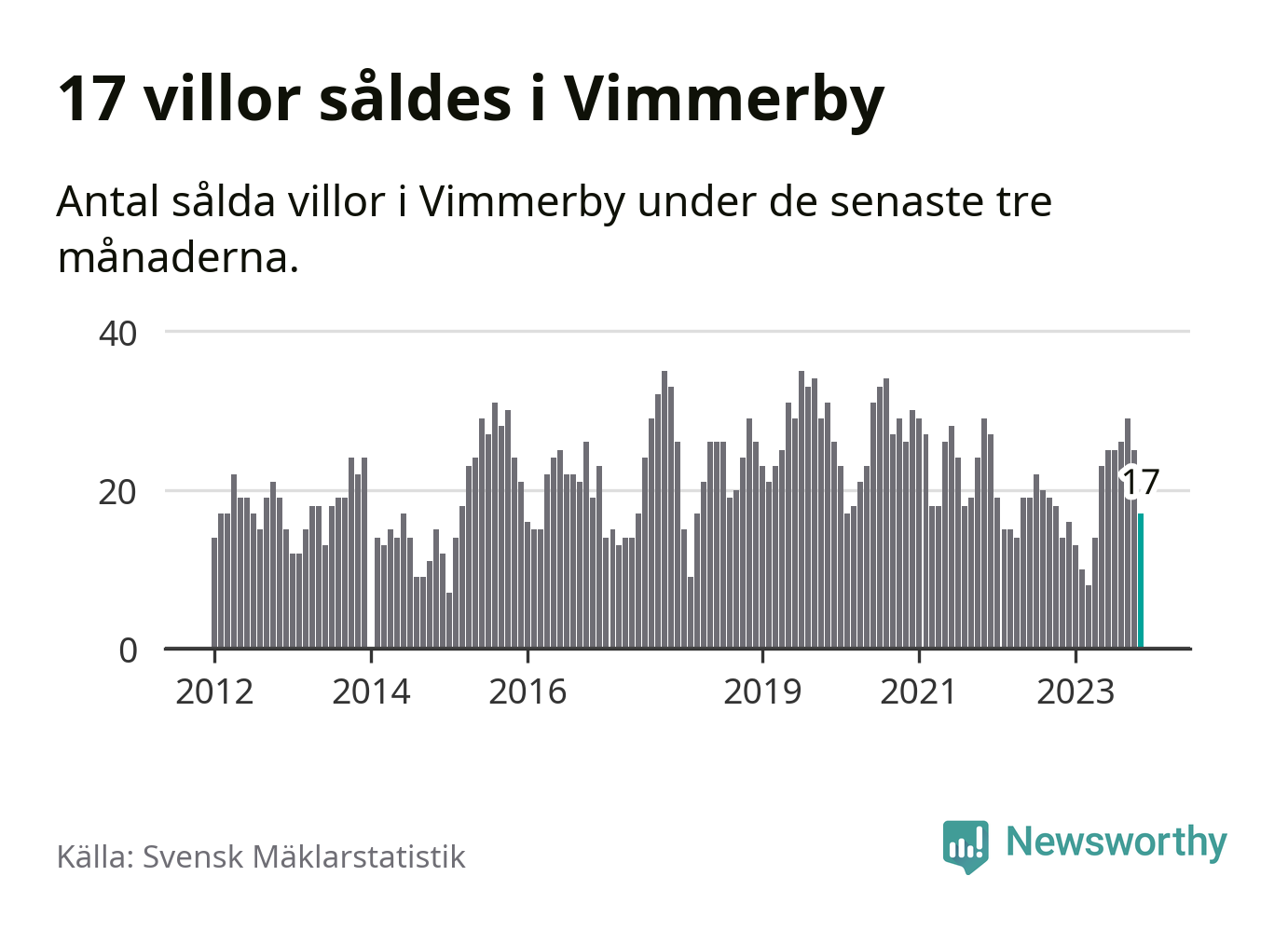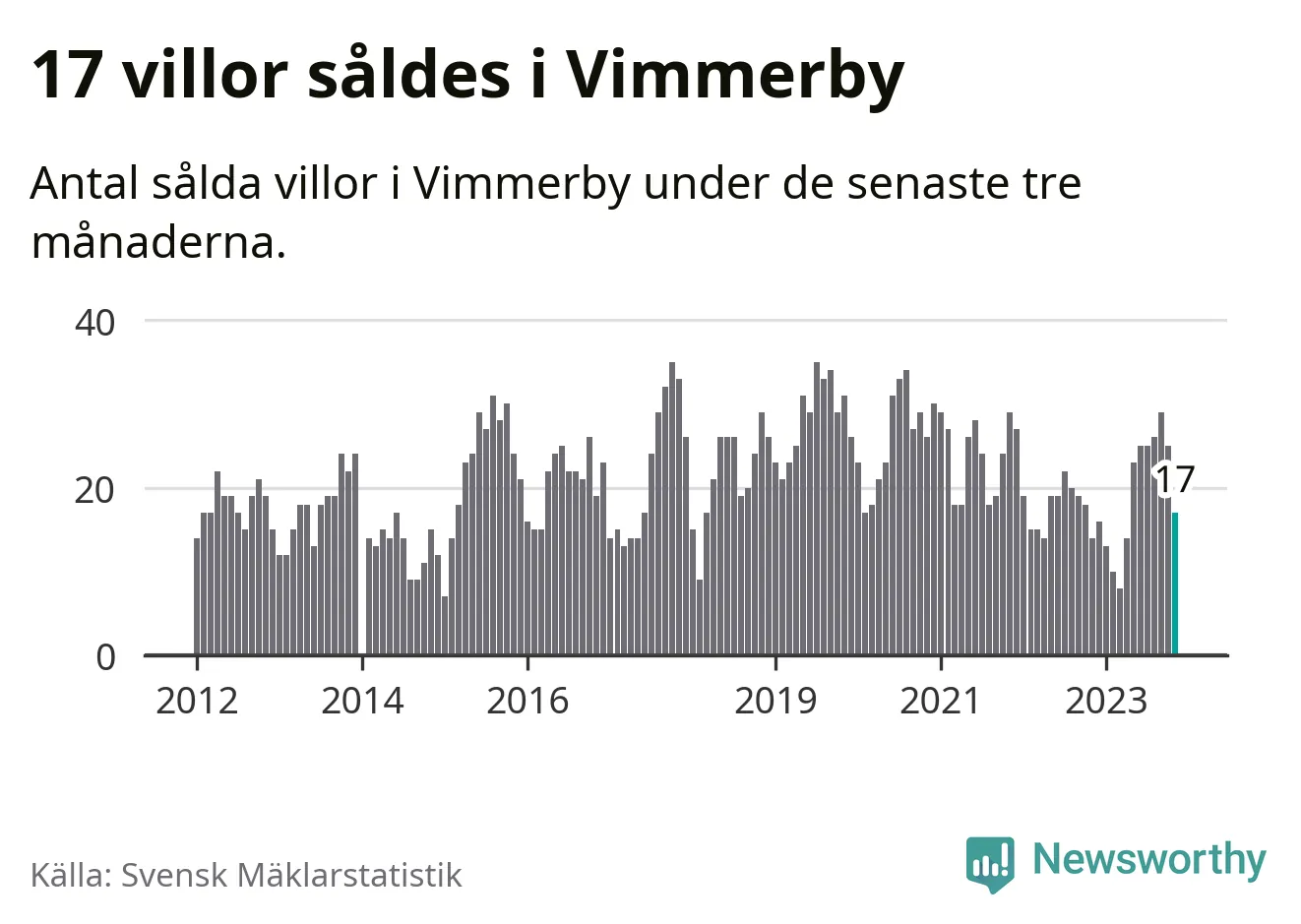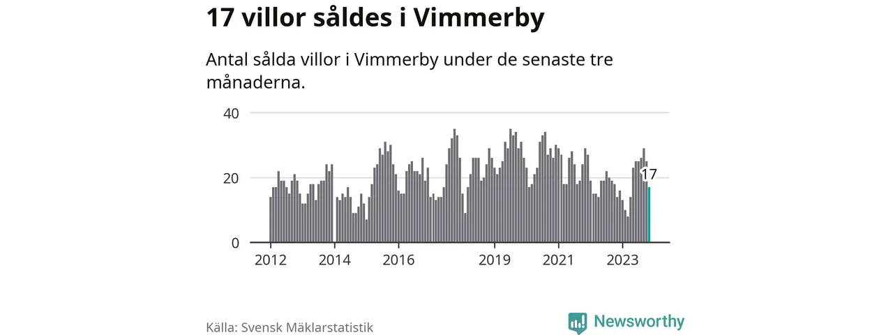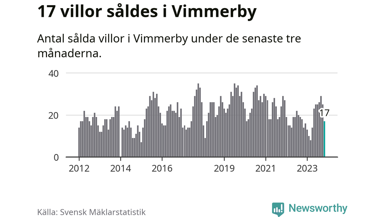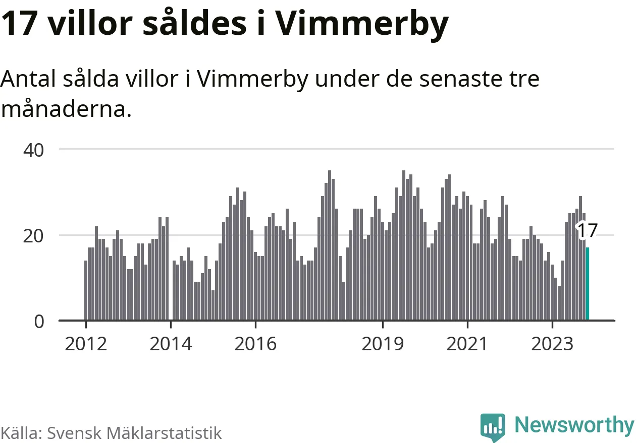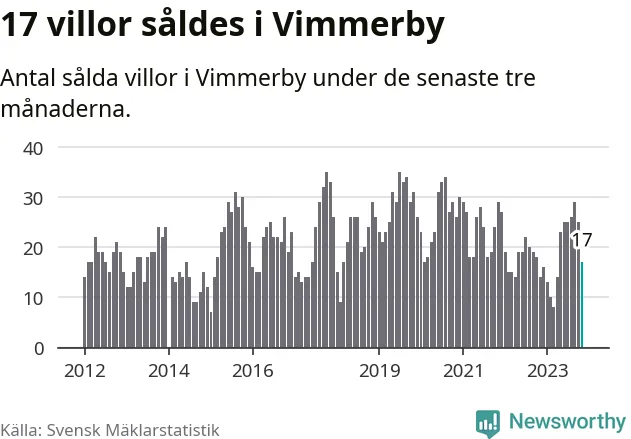 Mellan september och november gjordes sammanlagt 17 affärer med villor i Vimmerby kommun. Det kan jämföras med 14 vid motsvarande tid i fjol.