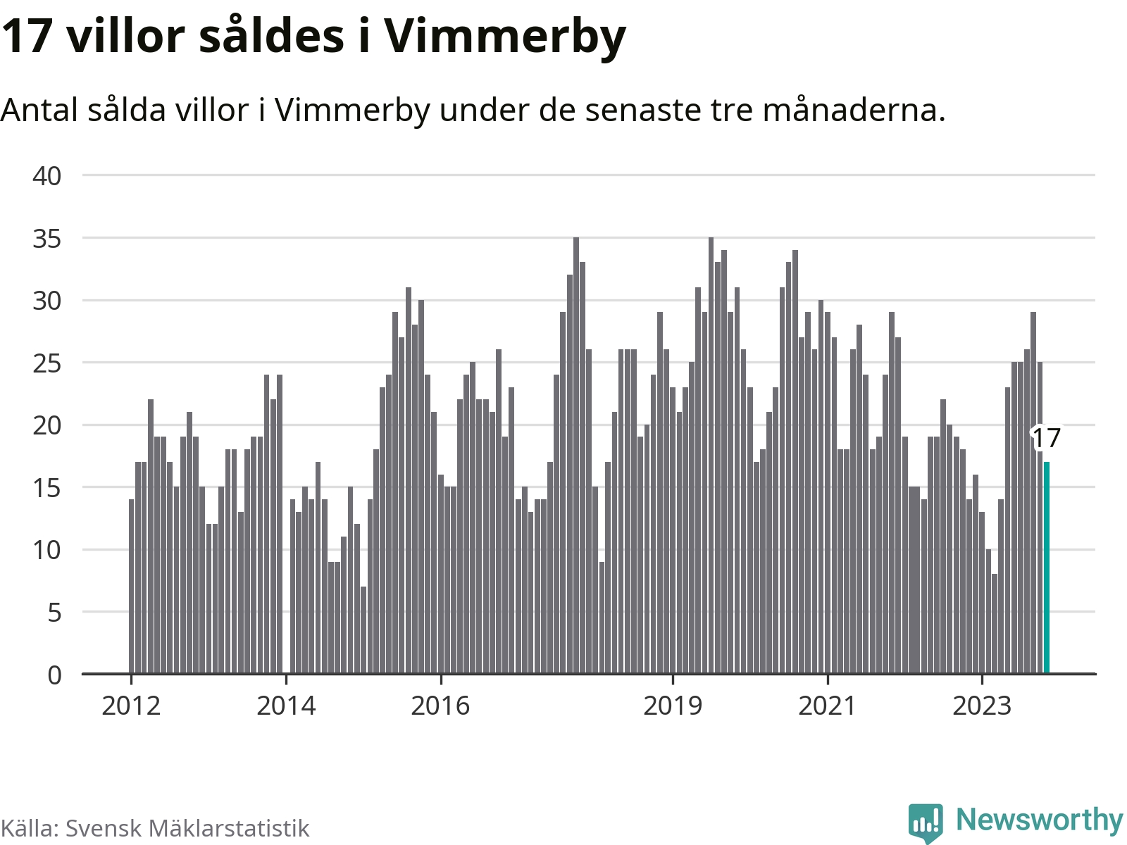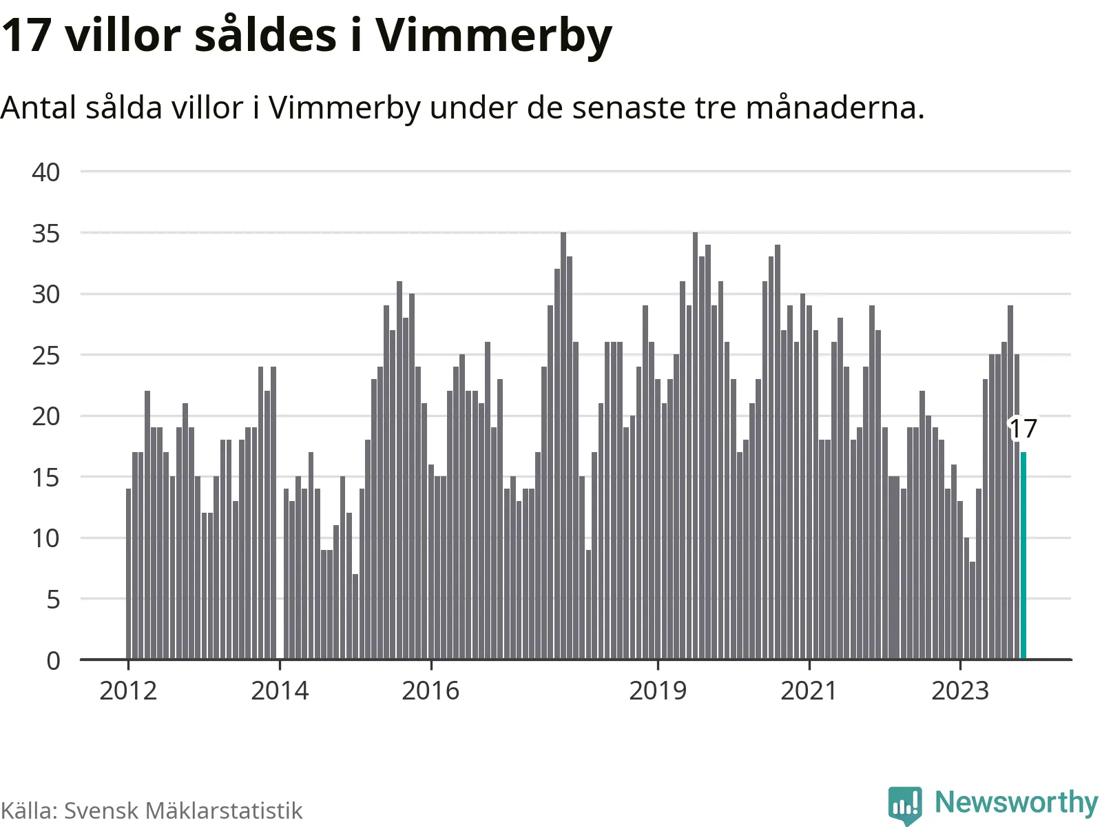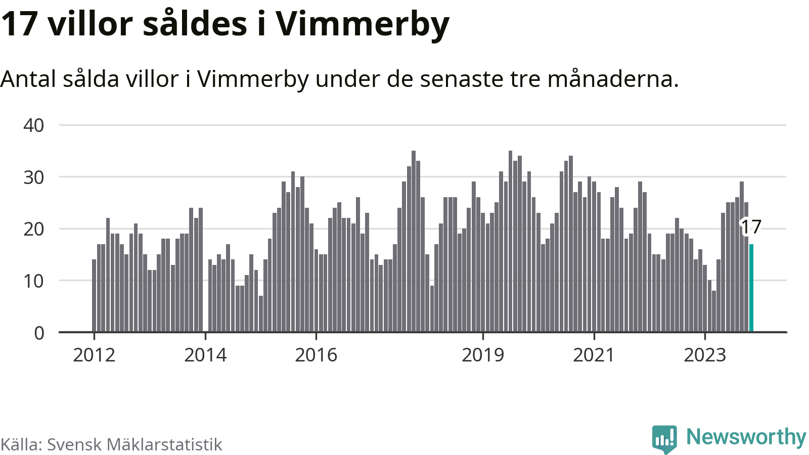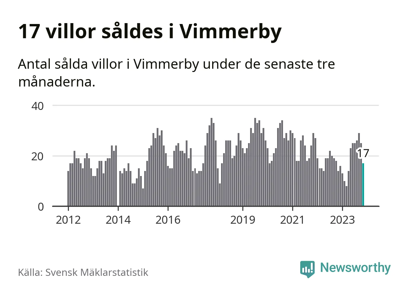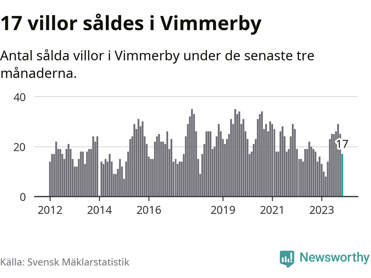 Mellan september och november gjordes sammanlagt 17 affärer med villor i Vimmerby kommun. Det kan jämföras med 14 vid motsvarande tid i fjol.