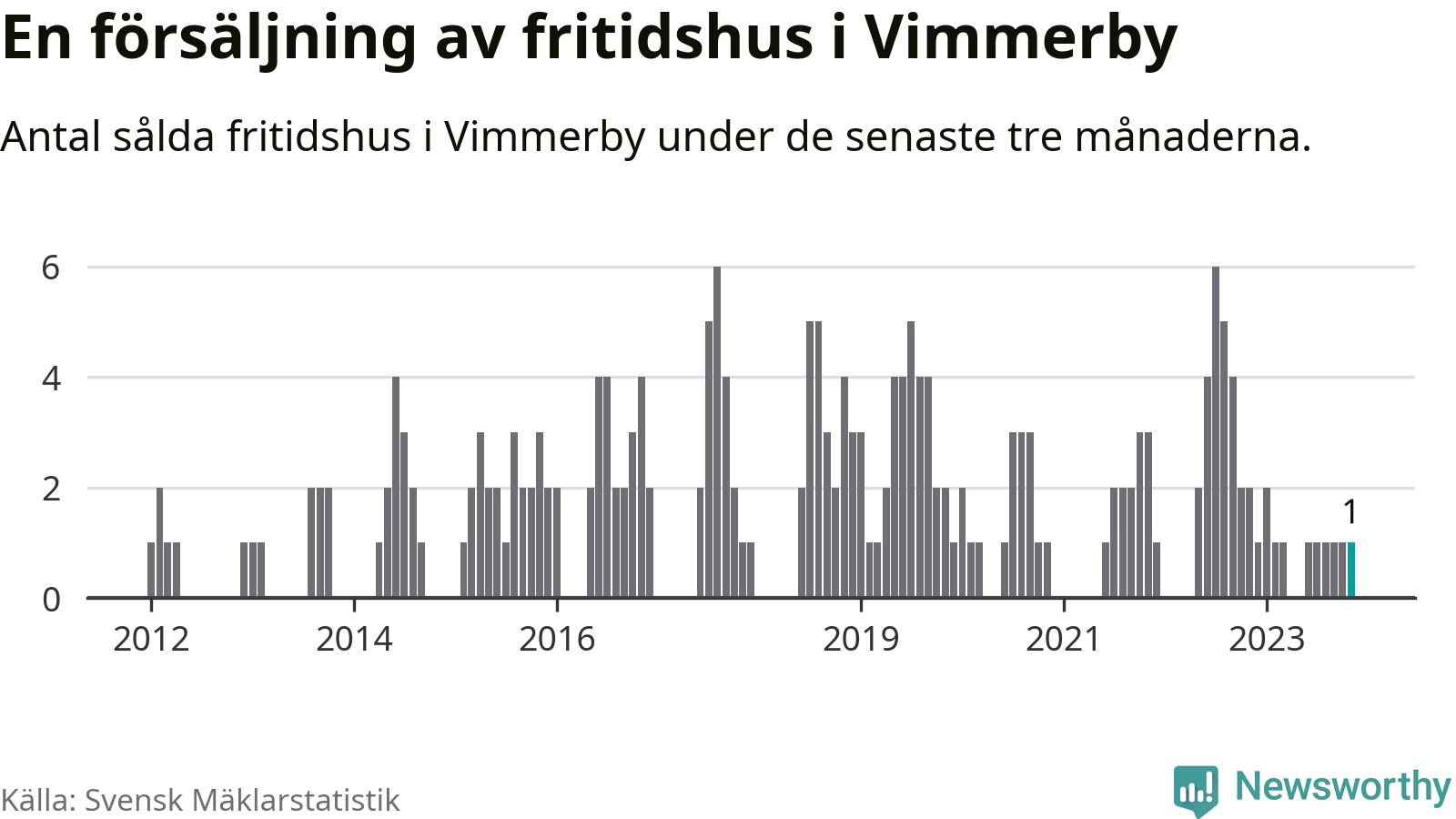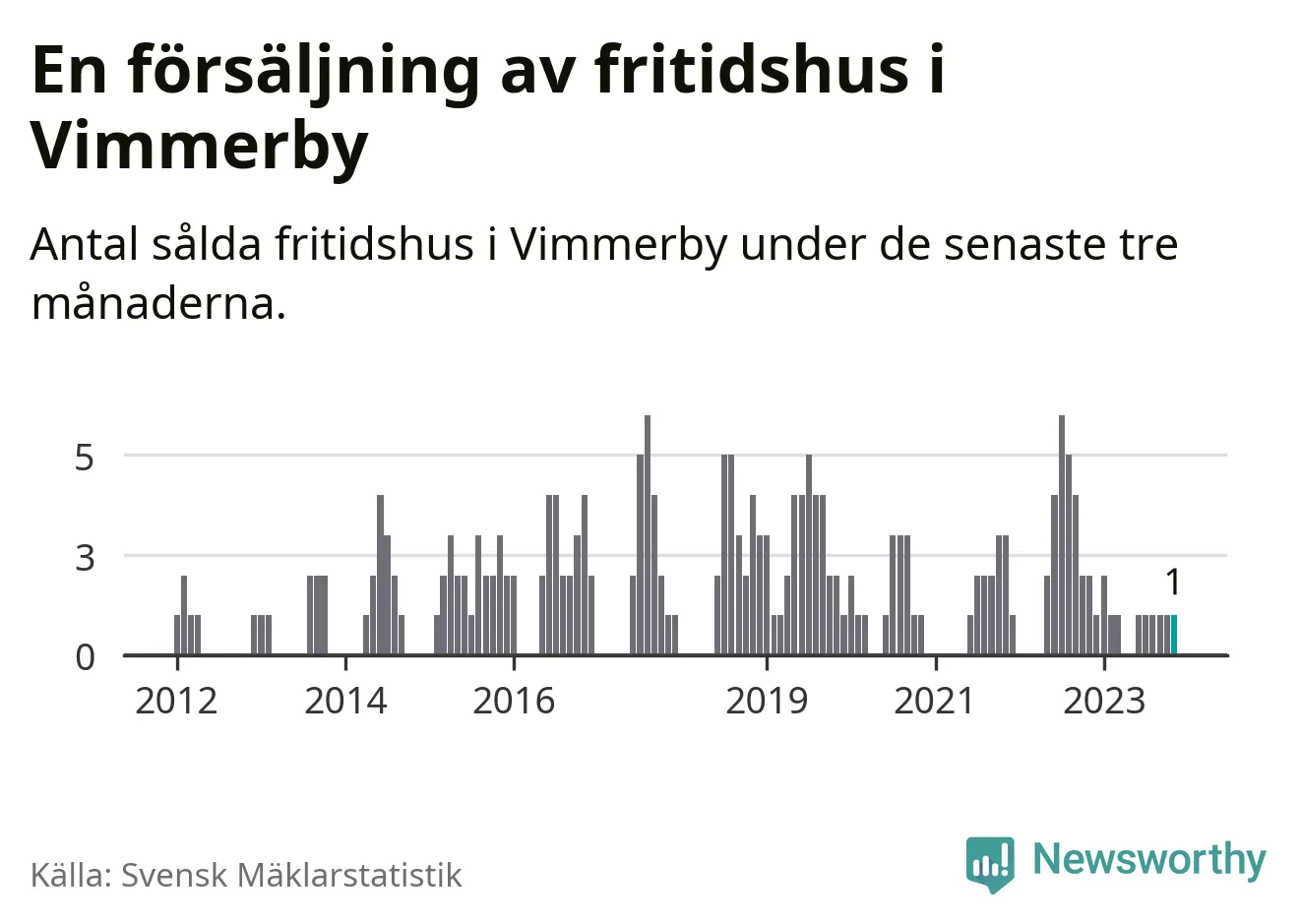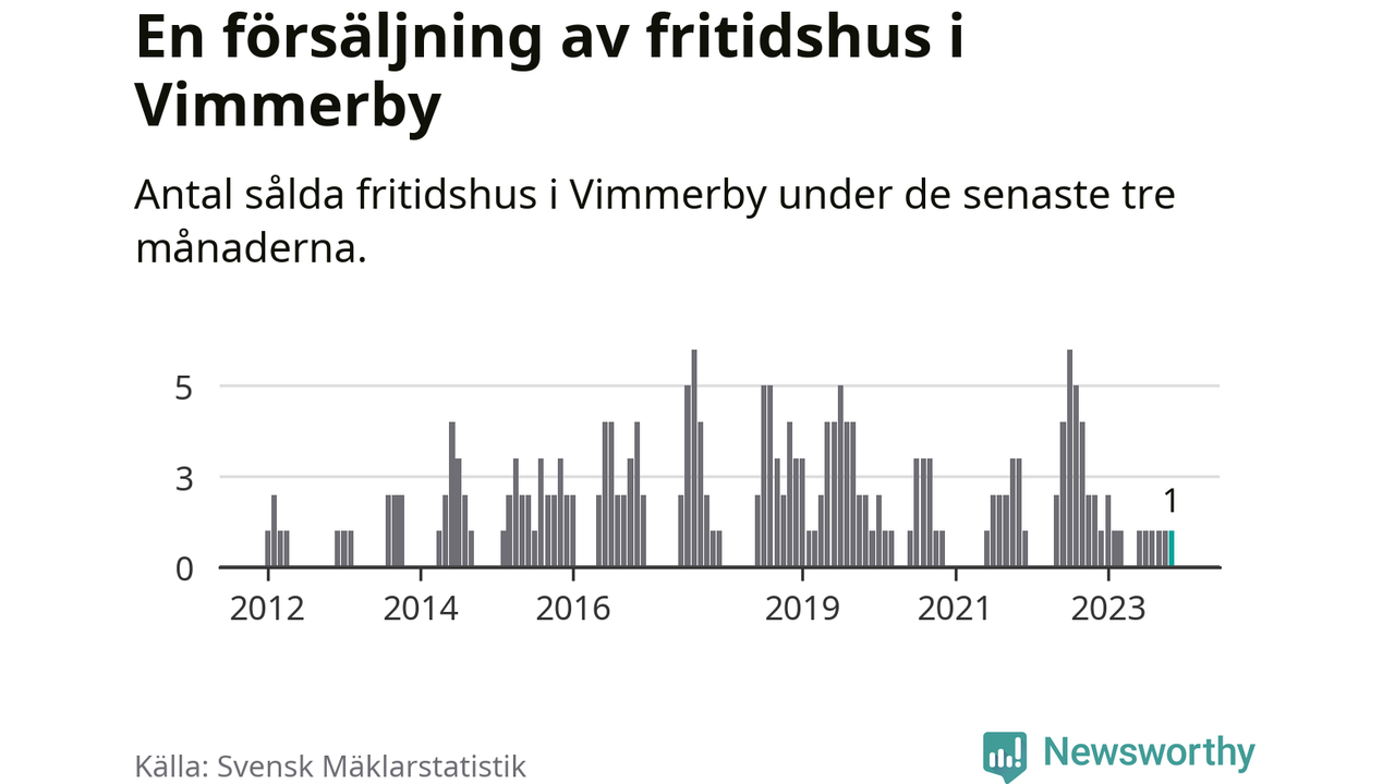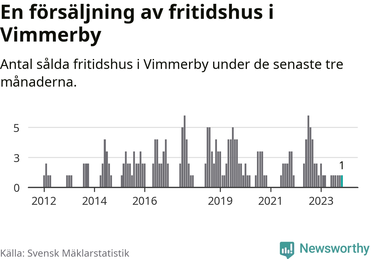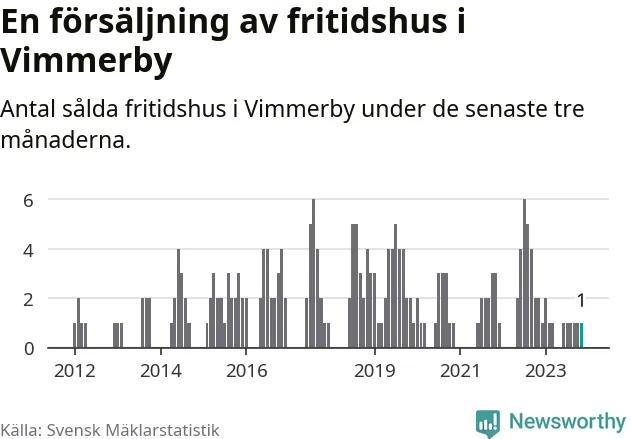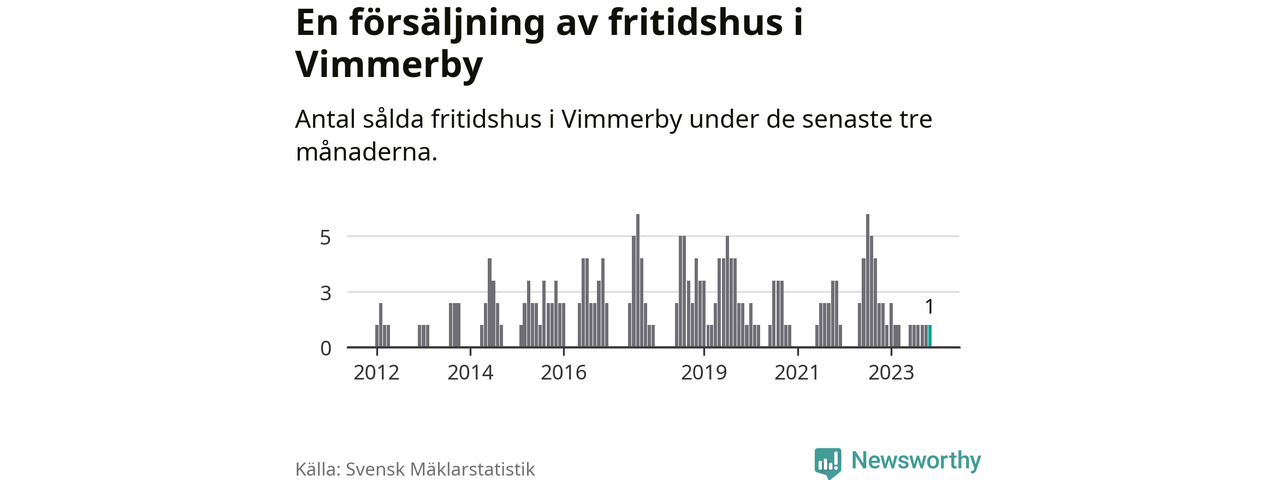 Mellan september och november gjordes sammanlagt en affär med fritidshus i Vimmerby kommun. Det kan jämföras med två vid motsvarande tid i fjol.