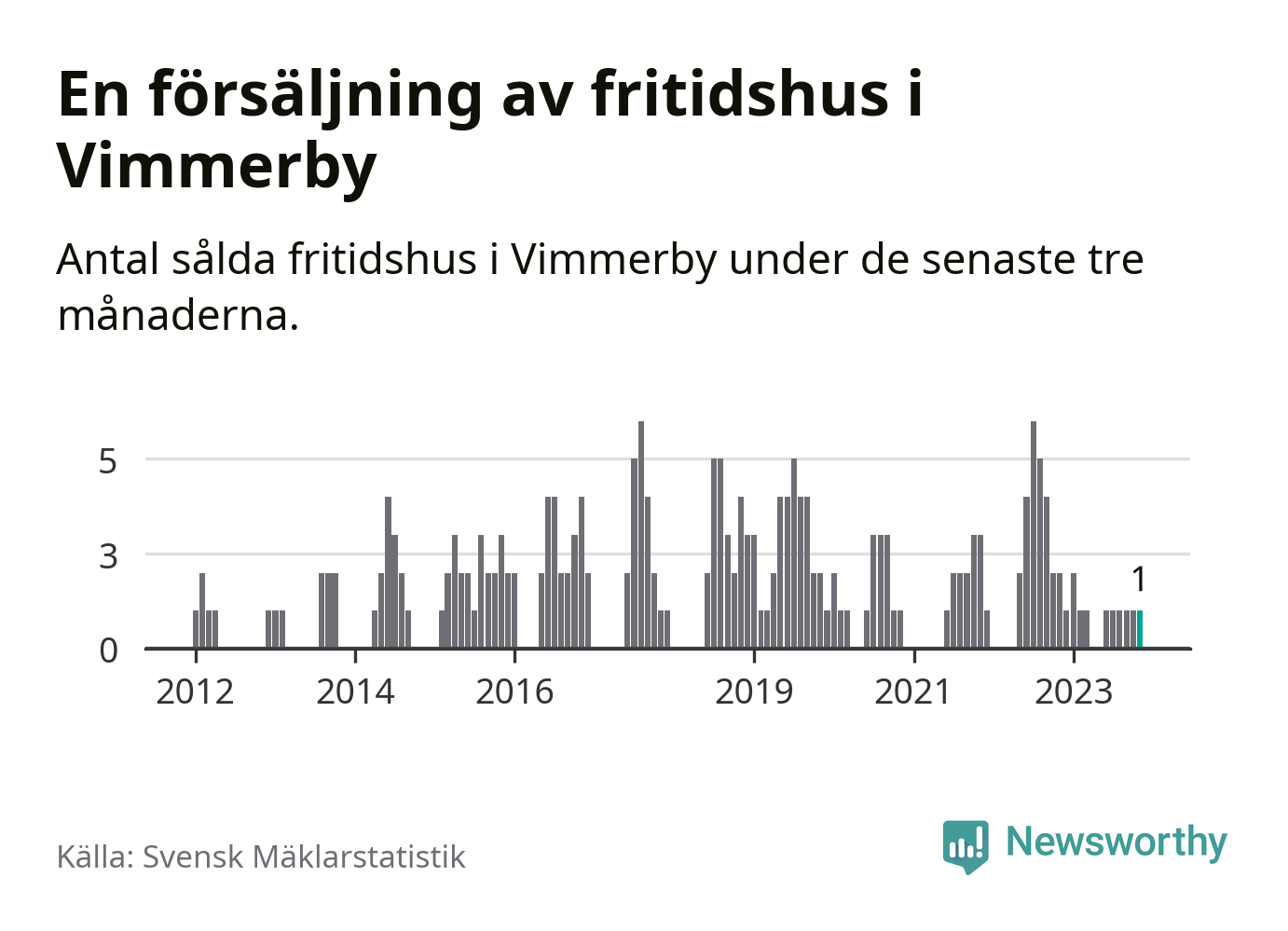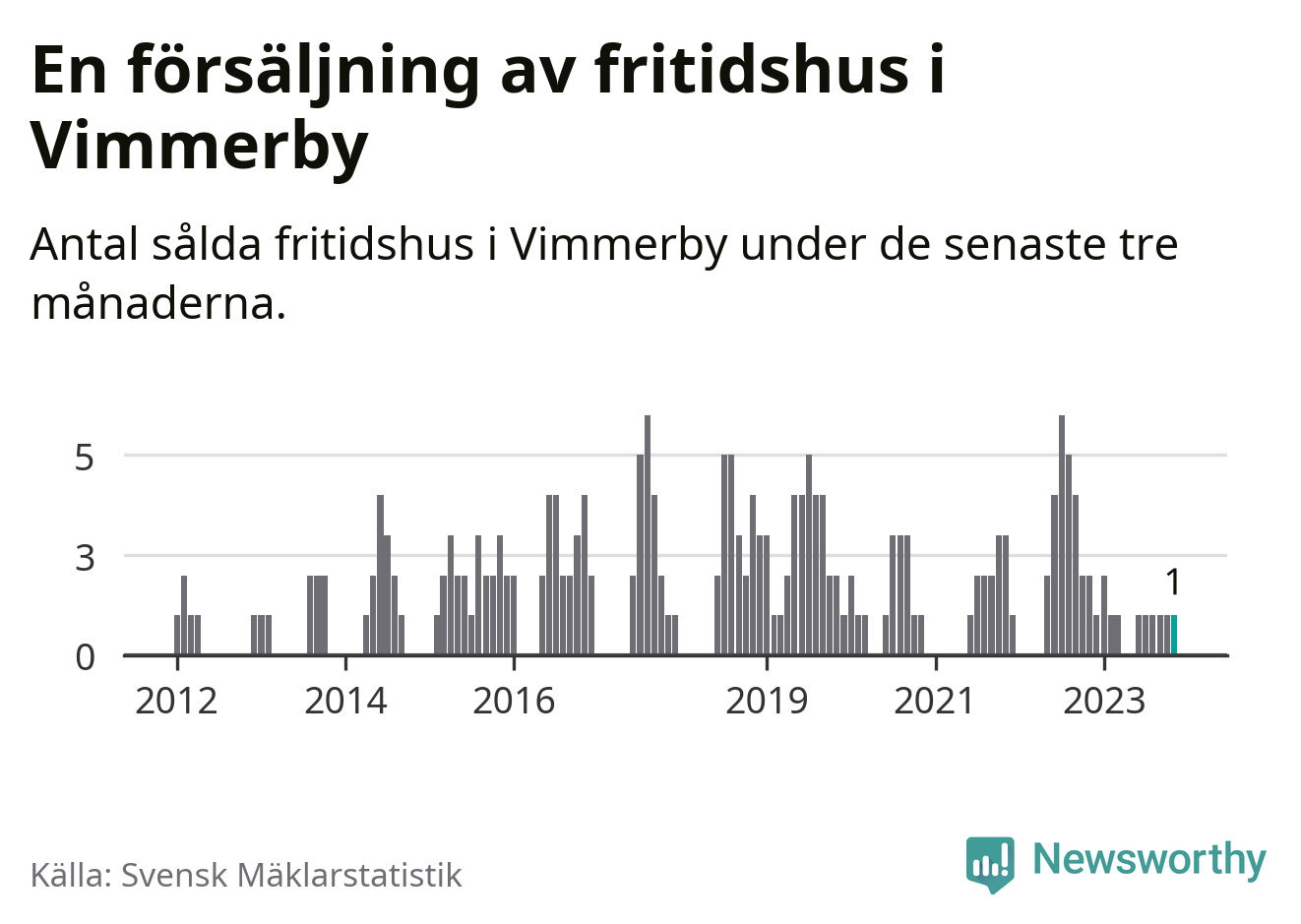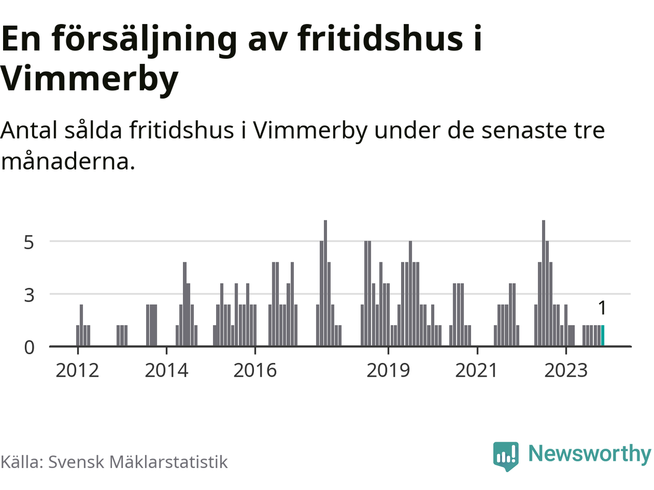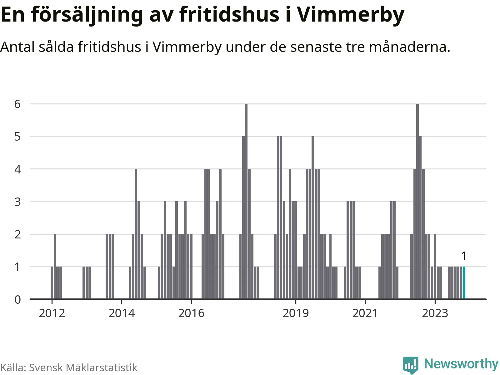 Mellan september och november gjordes sammanlagt en affär med fritidshus i Vimmerby kommun. Det kan jämföras med två vid motsvarande tid i fjol.