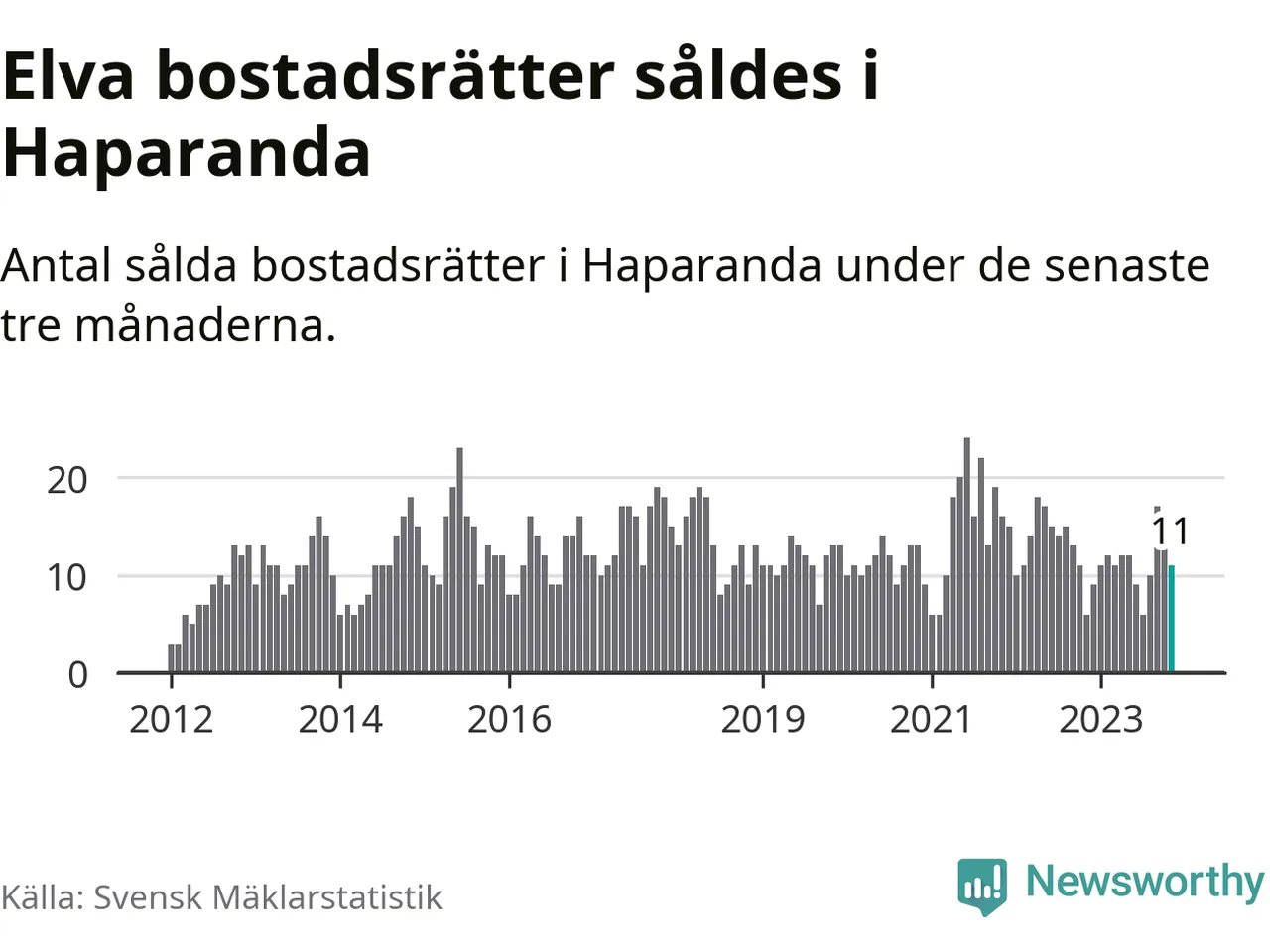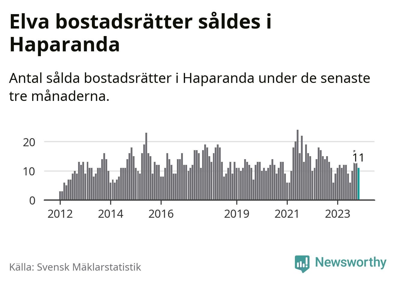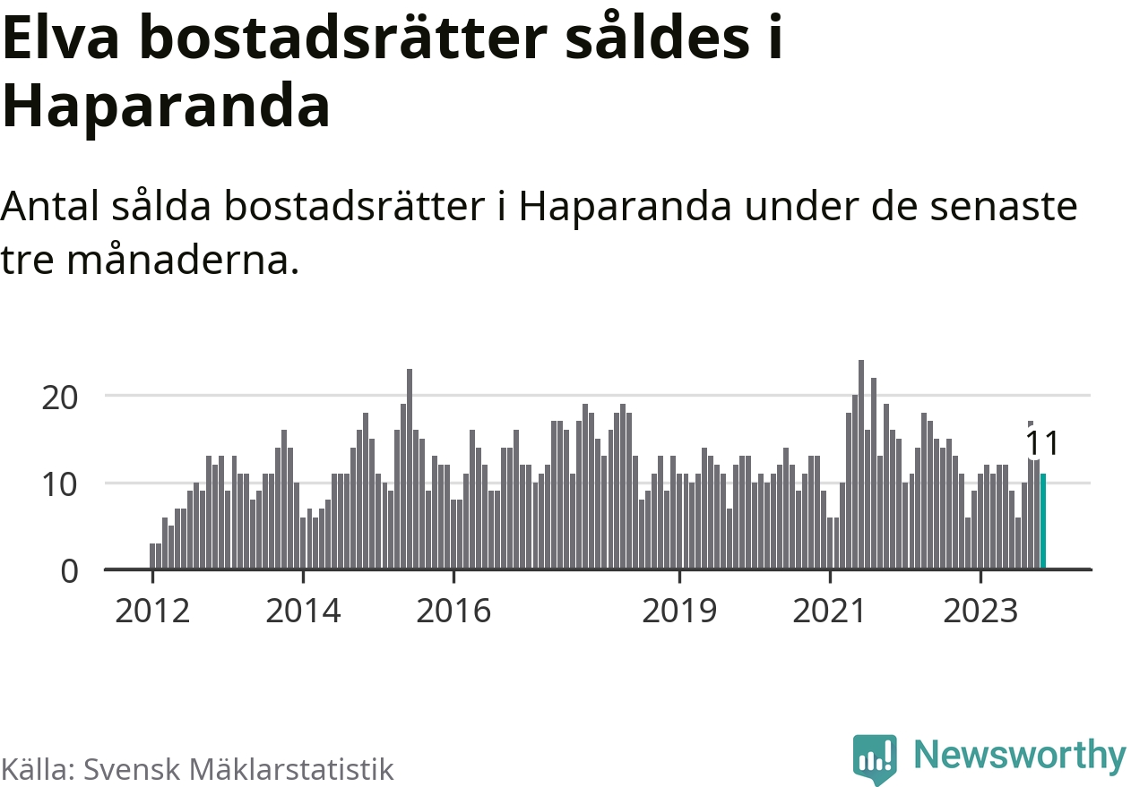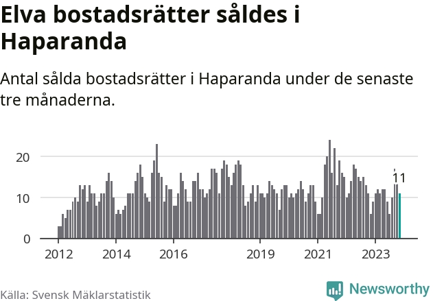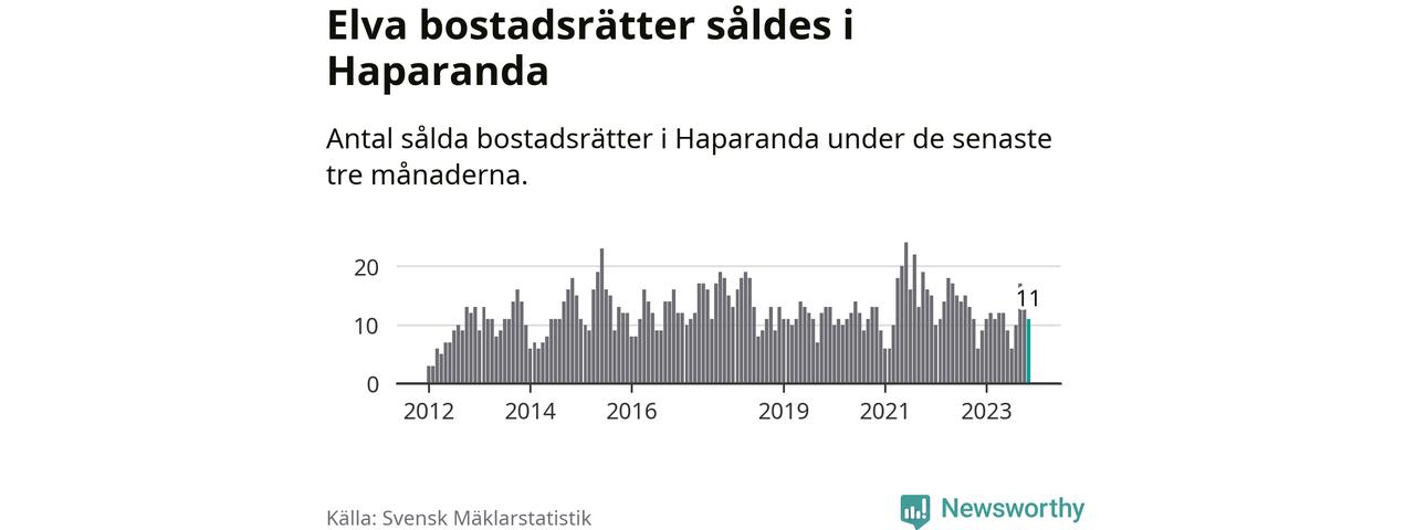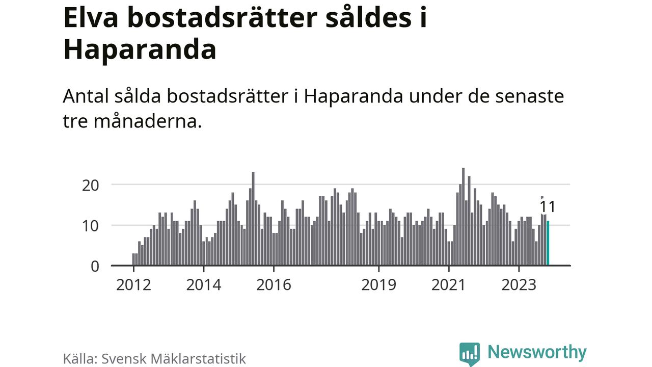 Mellan september och november gjordes sammanlagt elva affärer med bostadsrätter i Haparanda kommun. Det kan jämföras med sex vid motsvarande tid i fjol.