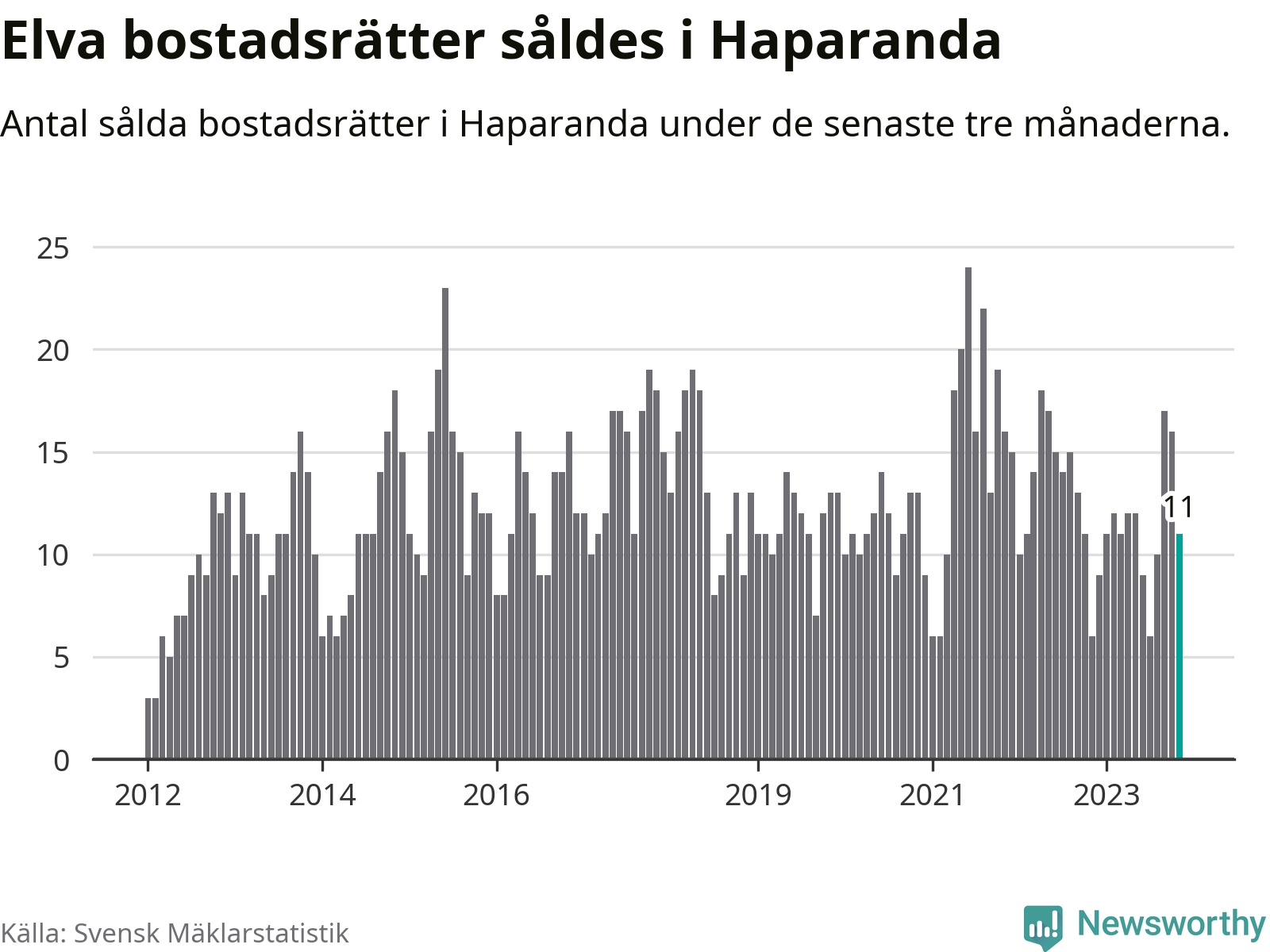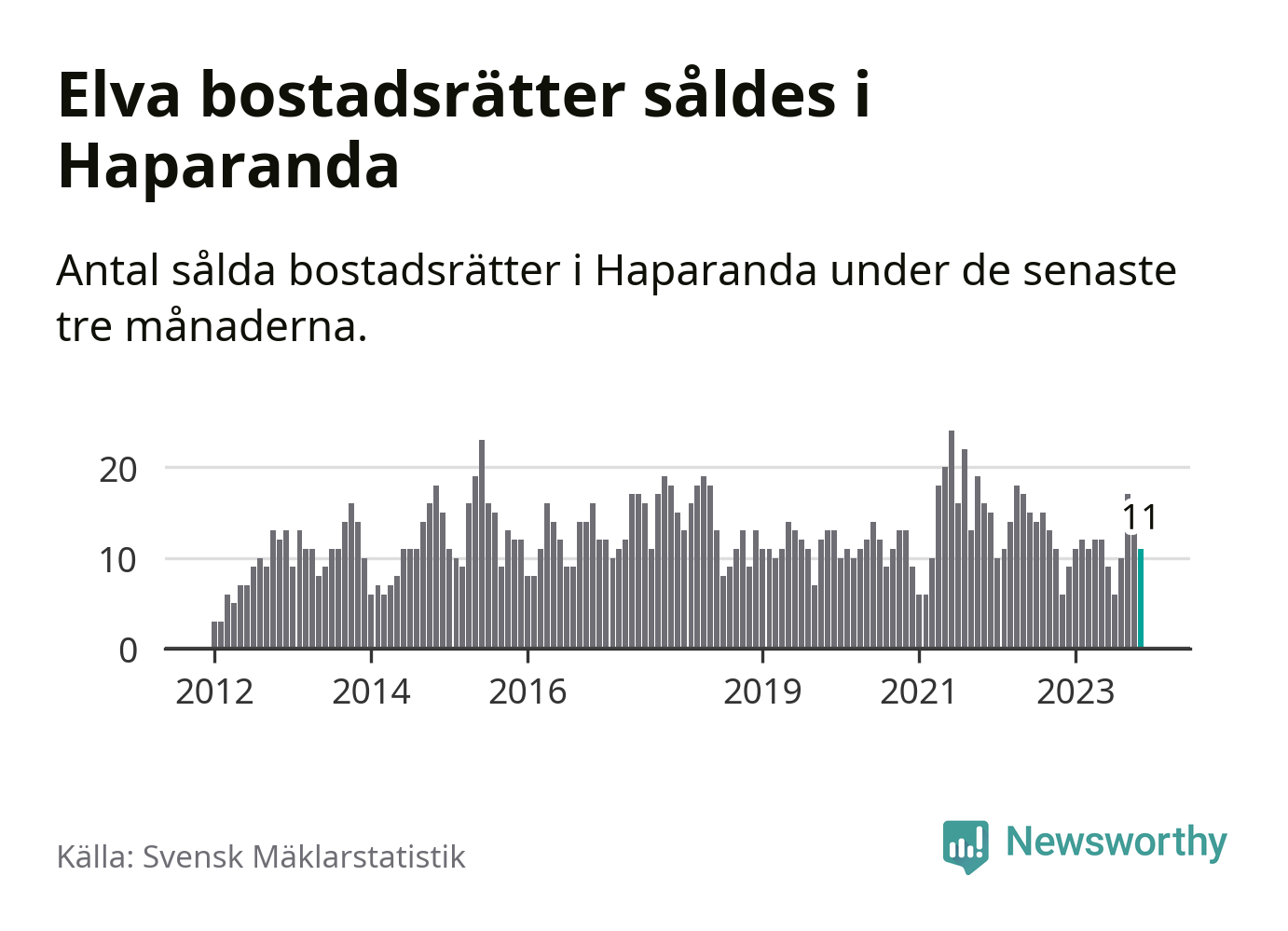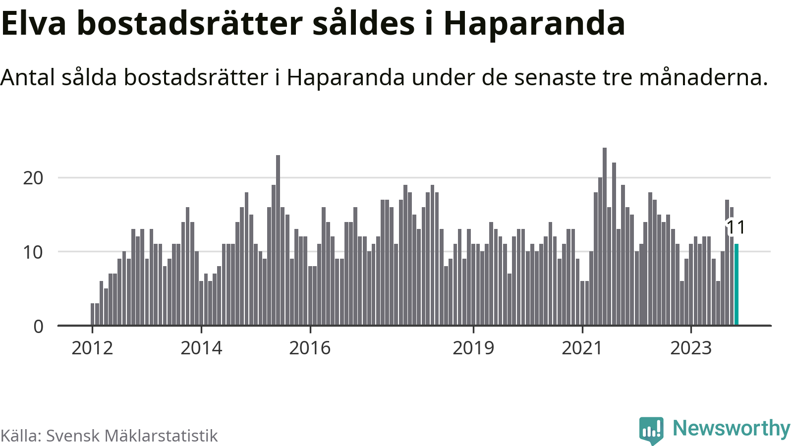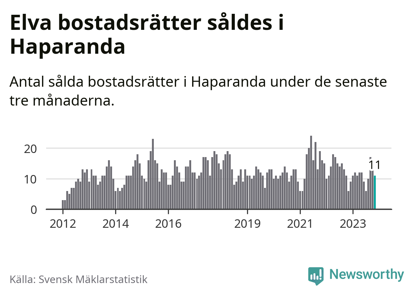 Mellan september och november gjordes sammanlagt elva affärer med bostadsrätter i Haparanda kommun. Det kan jämföras med sex vid motsvarande tid i fjol.