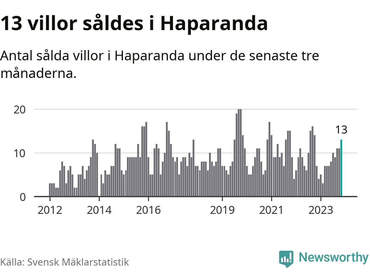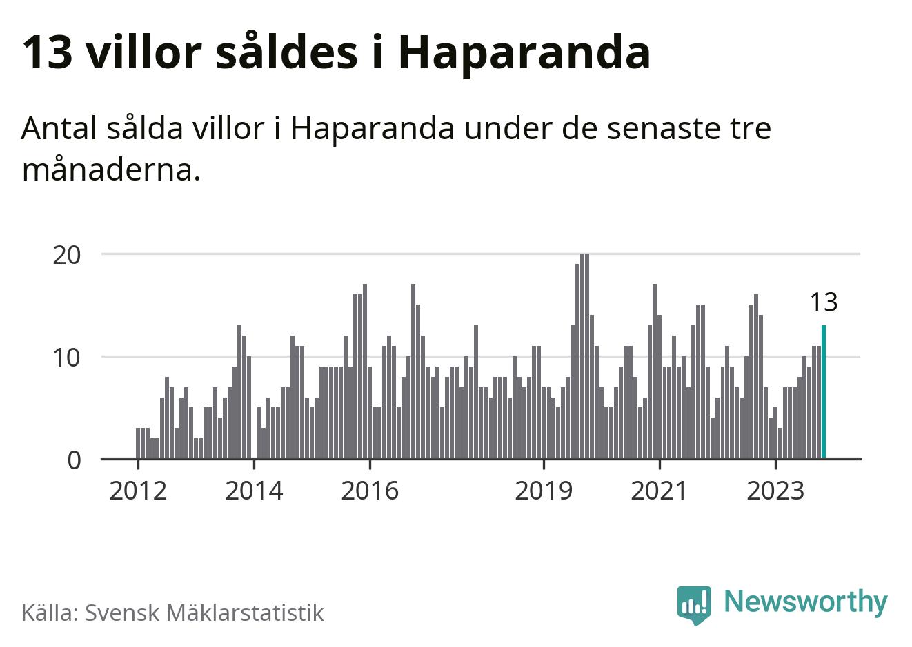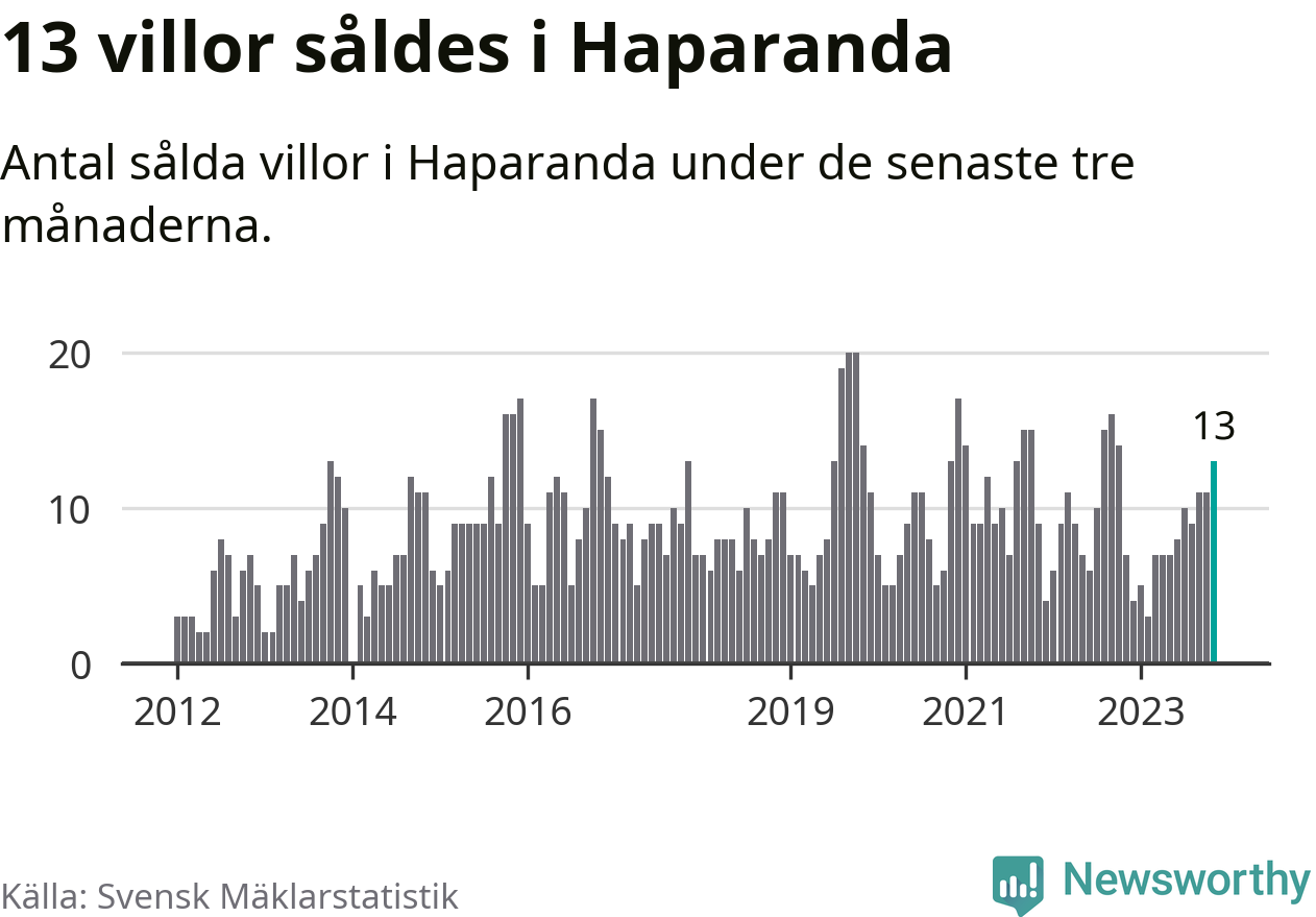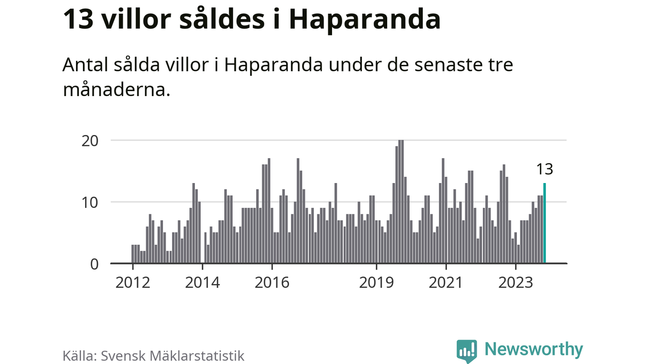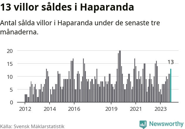 Mellan september och november gjordes sammanlagt 13 affärer med villor i Haparanda kommun. Det kan jämföras med sju vid motsvarande tid i fjol.