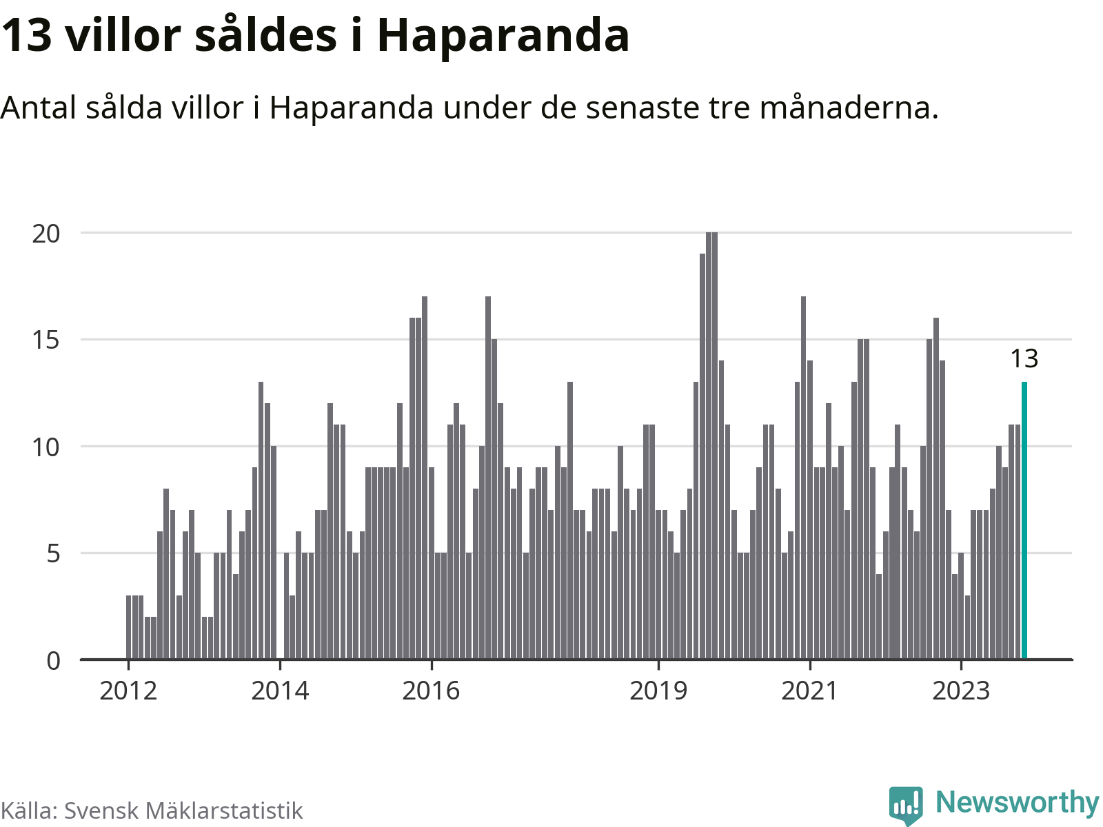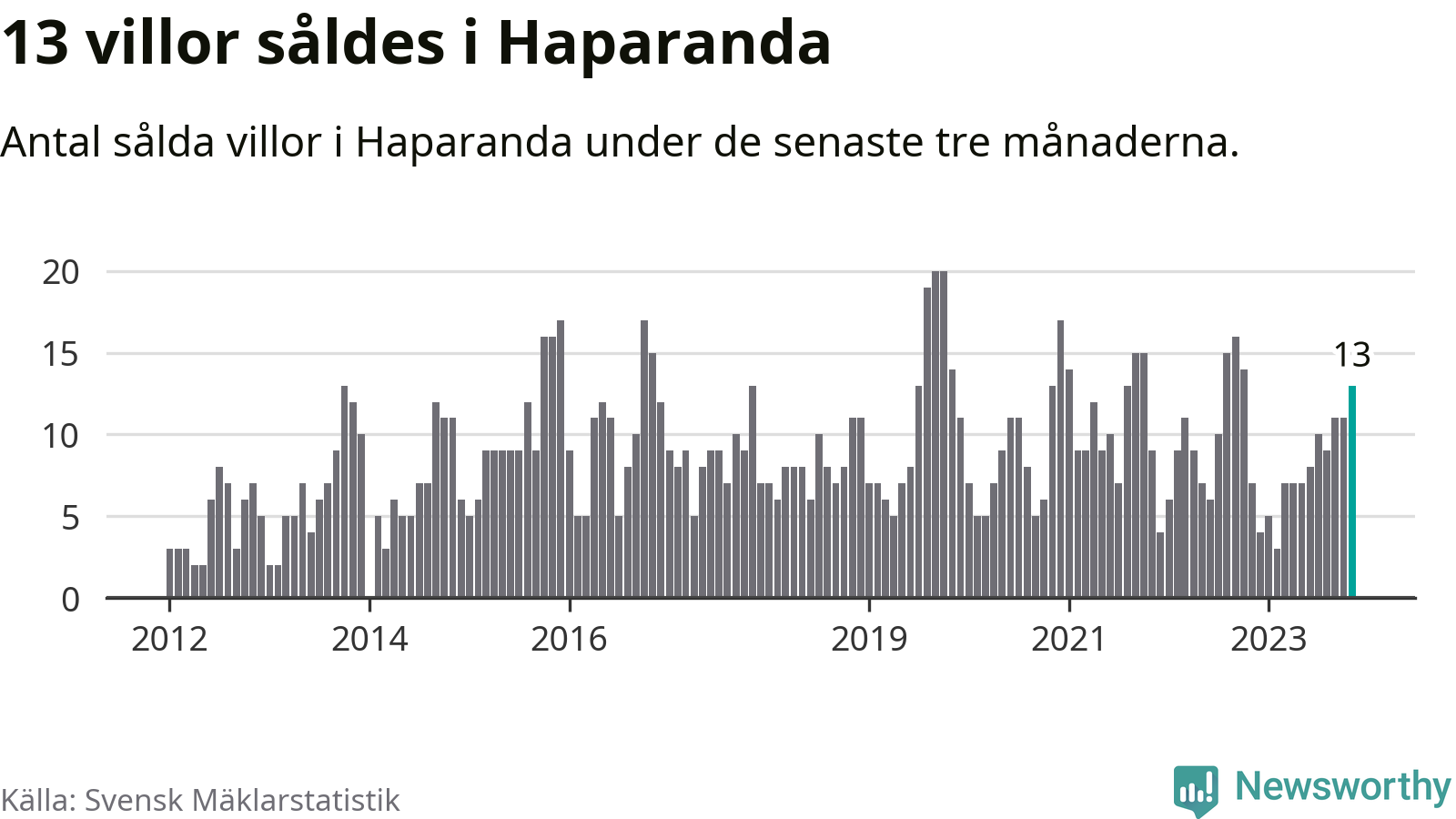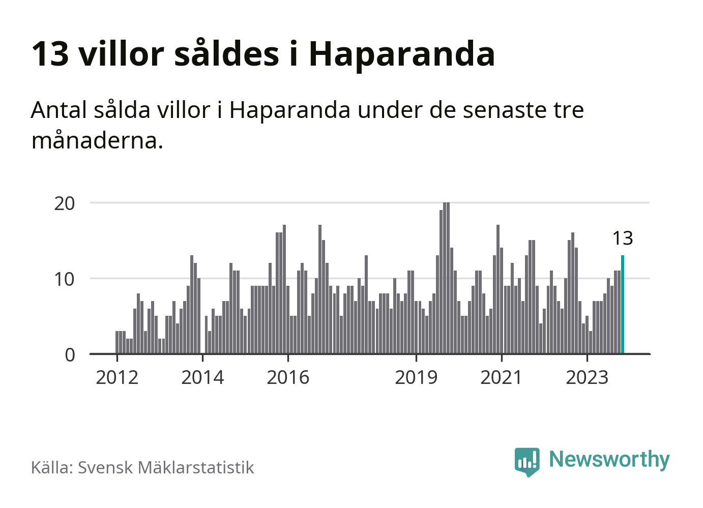 Mellan september och november gjordes sammanlagt 13 affärer med villor i Haparanda kommun. Det kan jämföras med sju vid motsvarande tid i fjol.