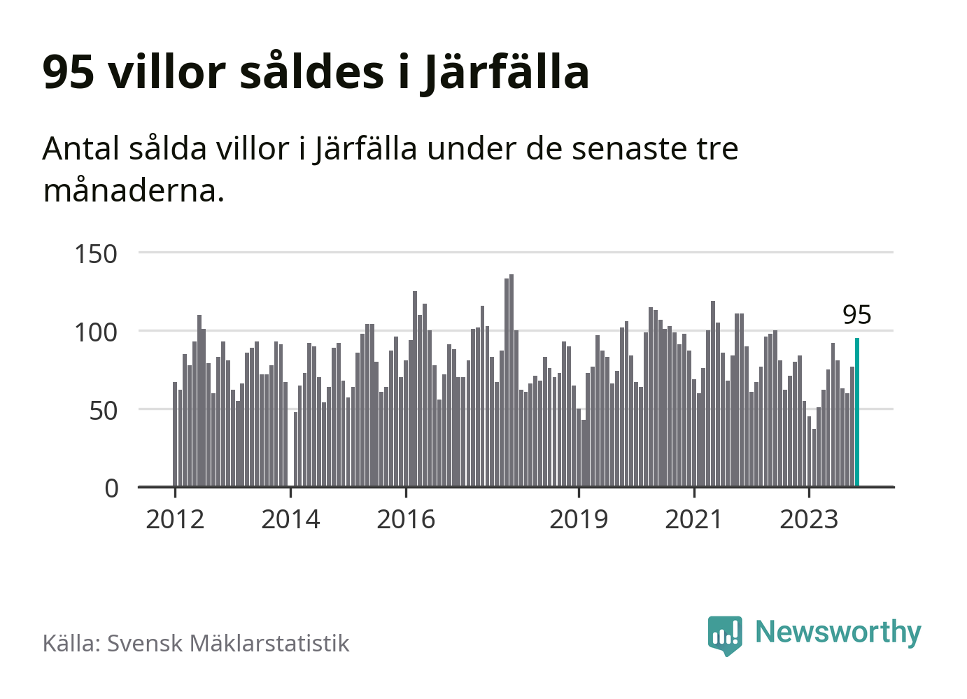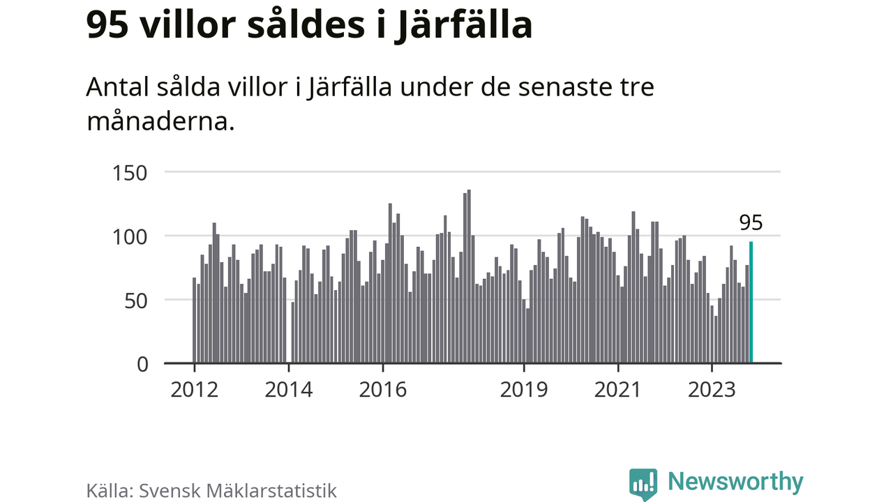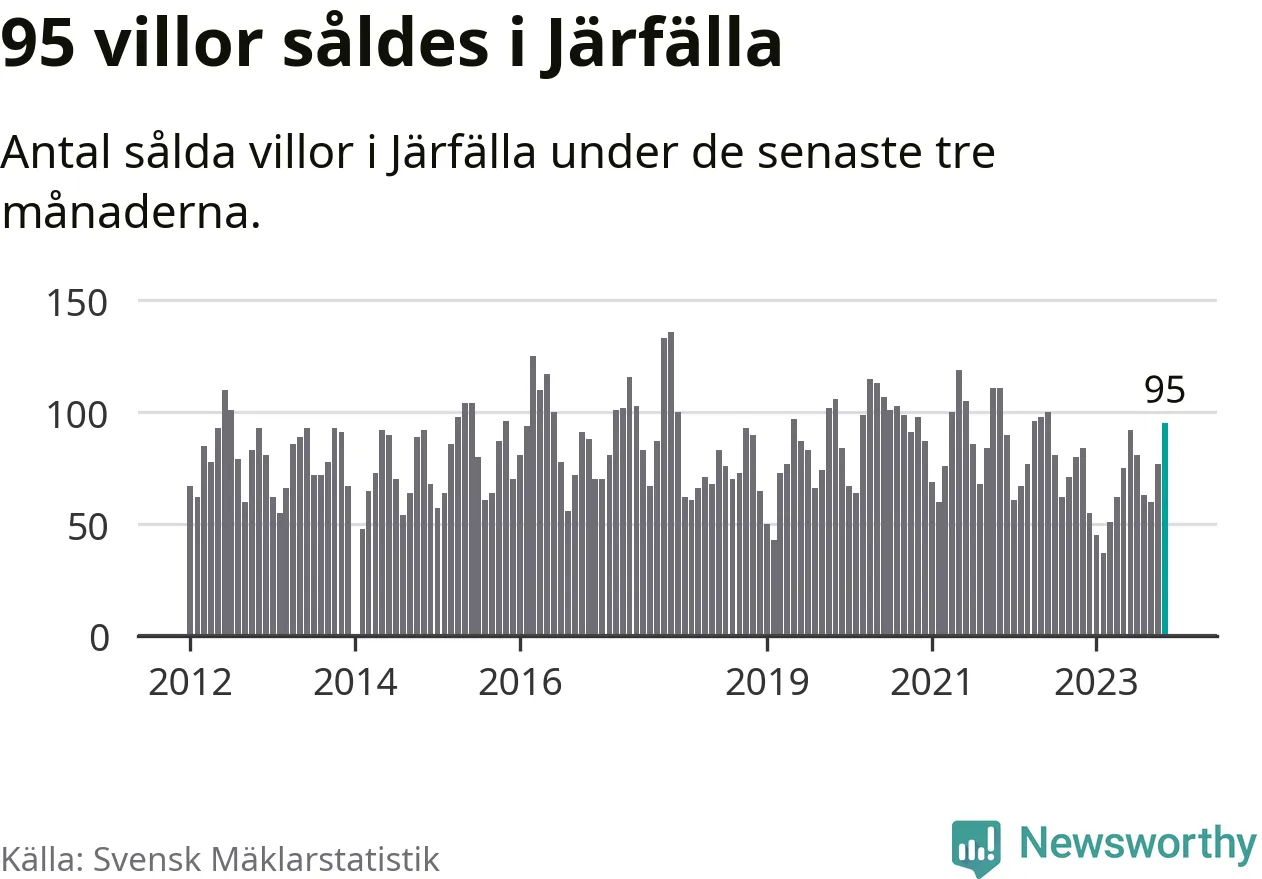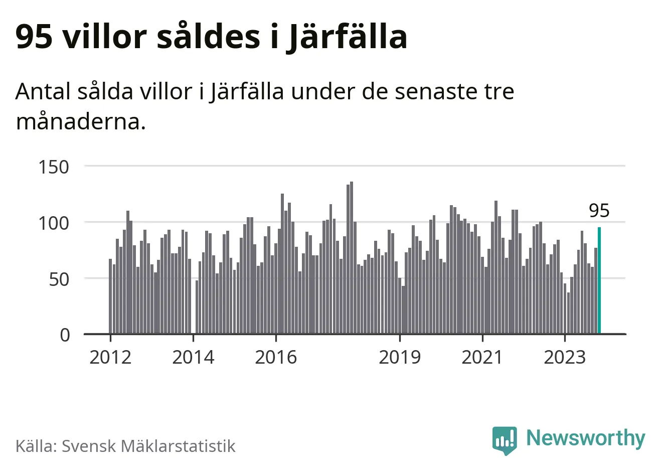| Järfälla | −3 % ▼ | 95 | 5,5 miljoner |