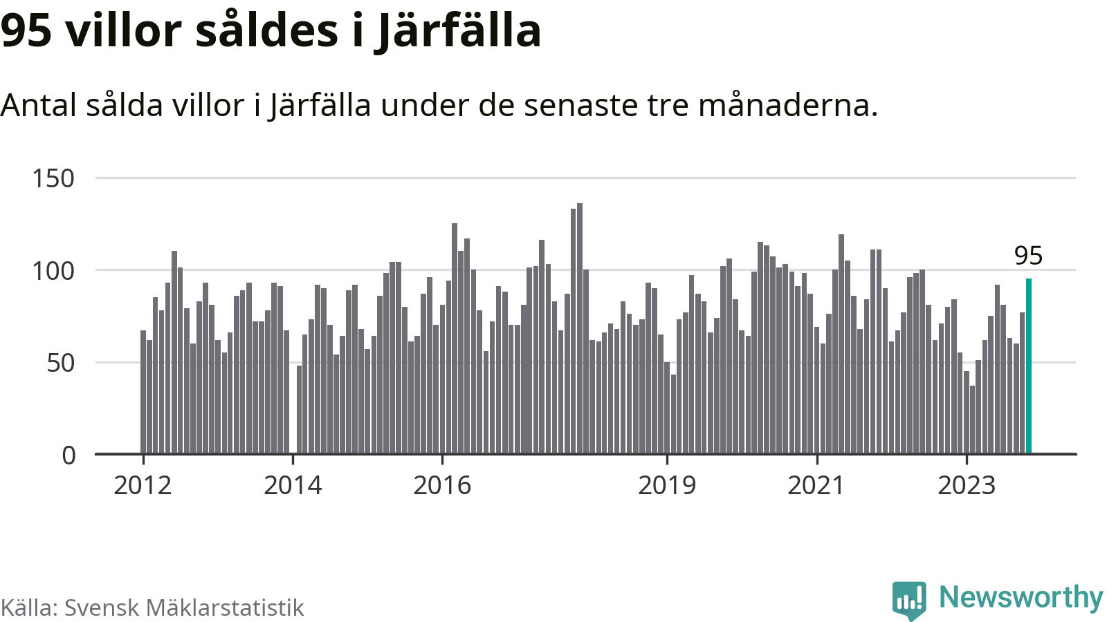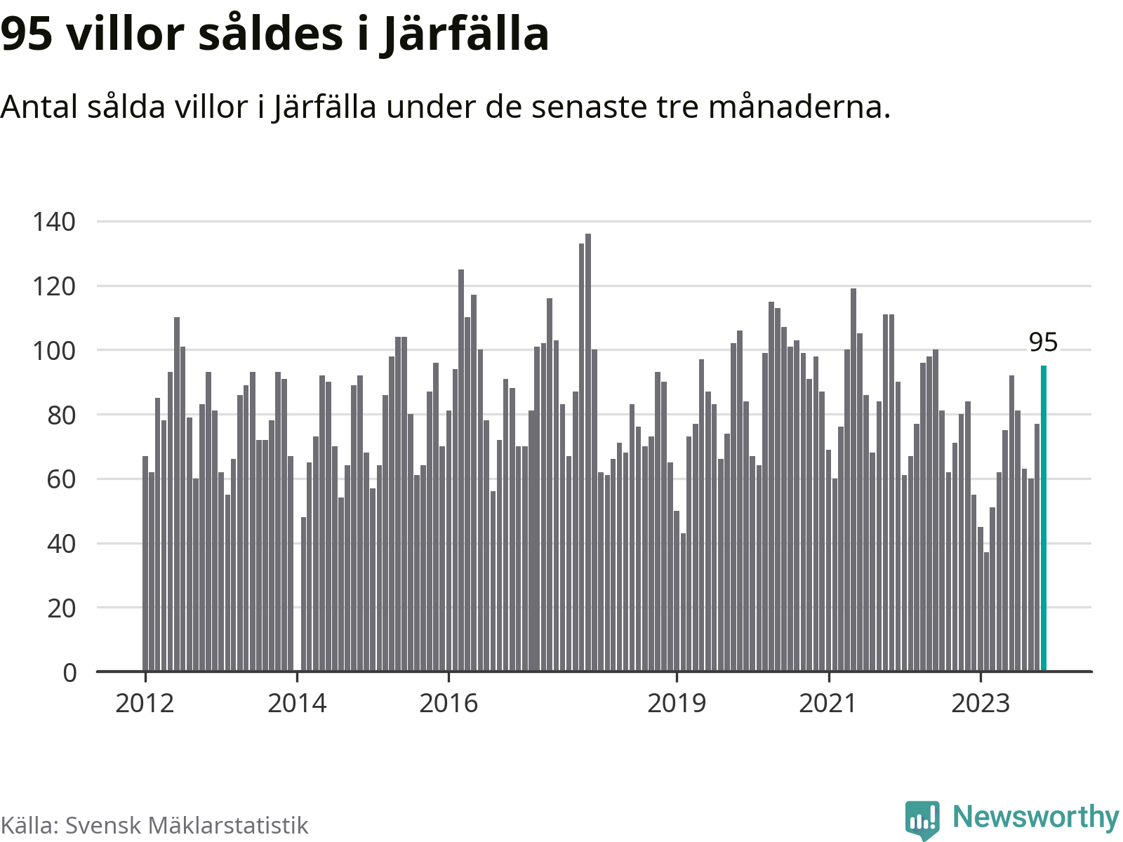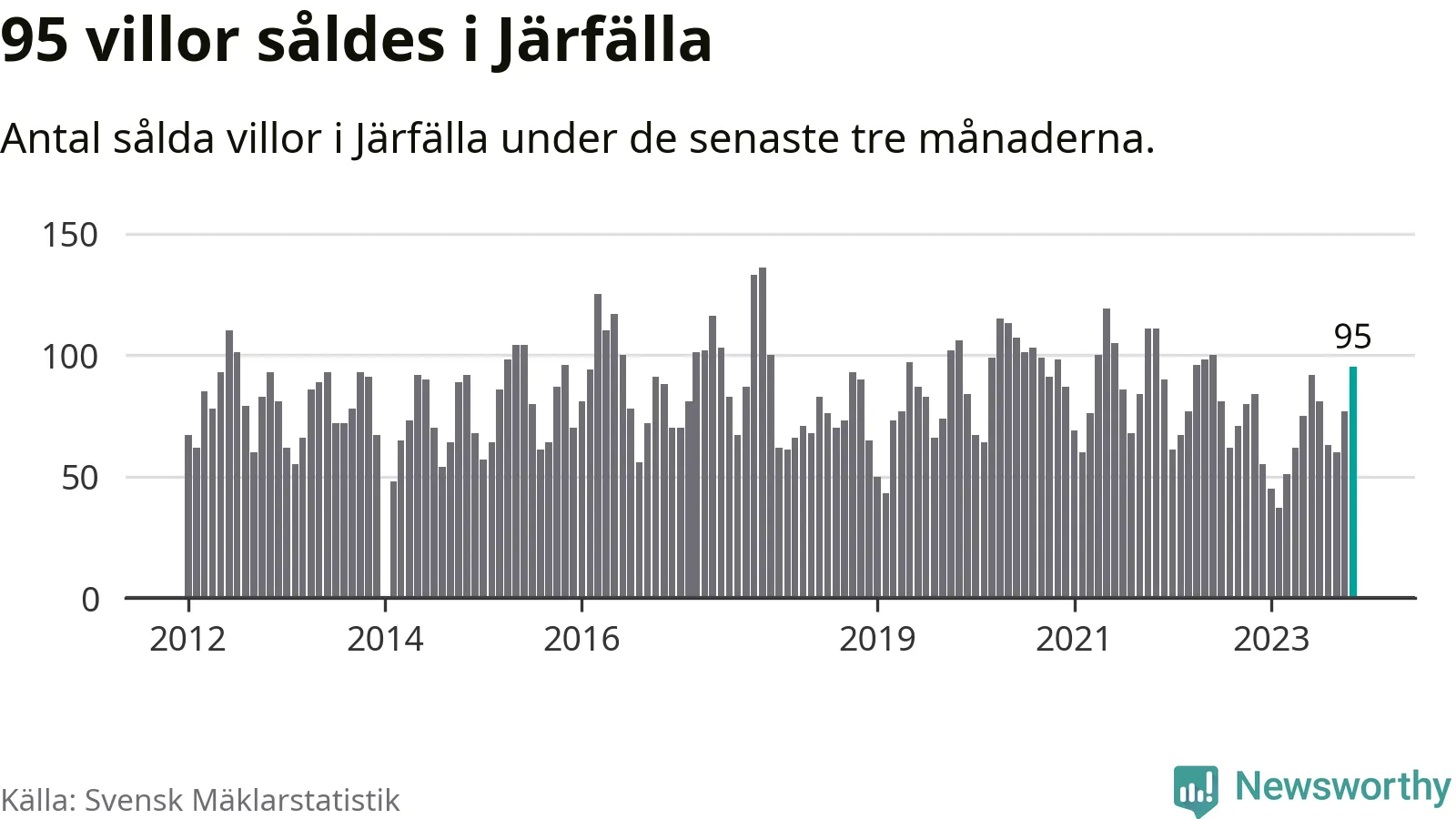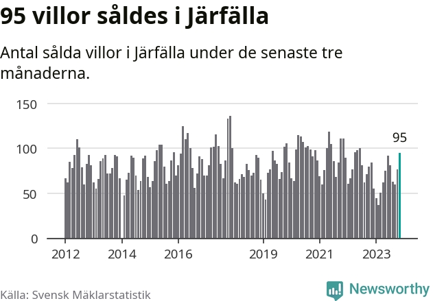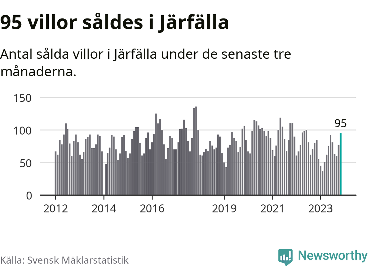 | Järfälla | −3 % ▼ | 95 | 5,5 miljoner |