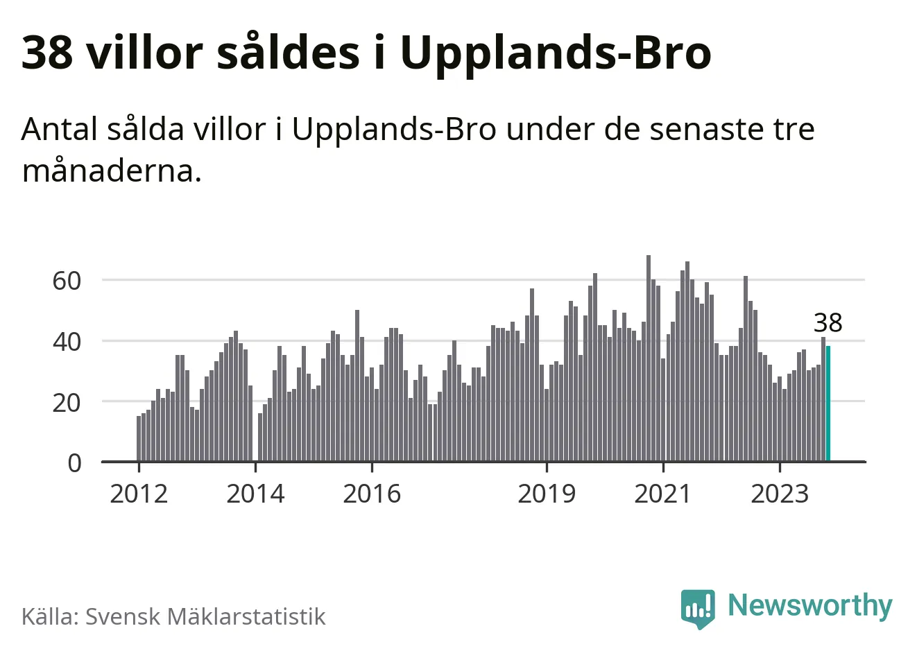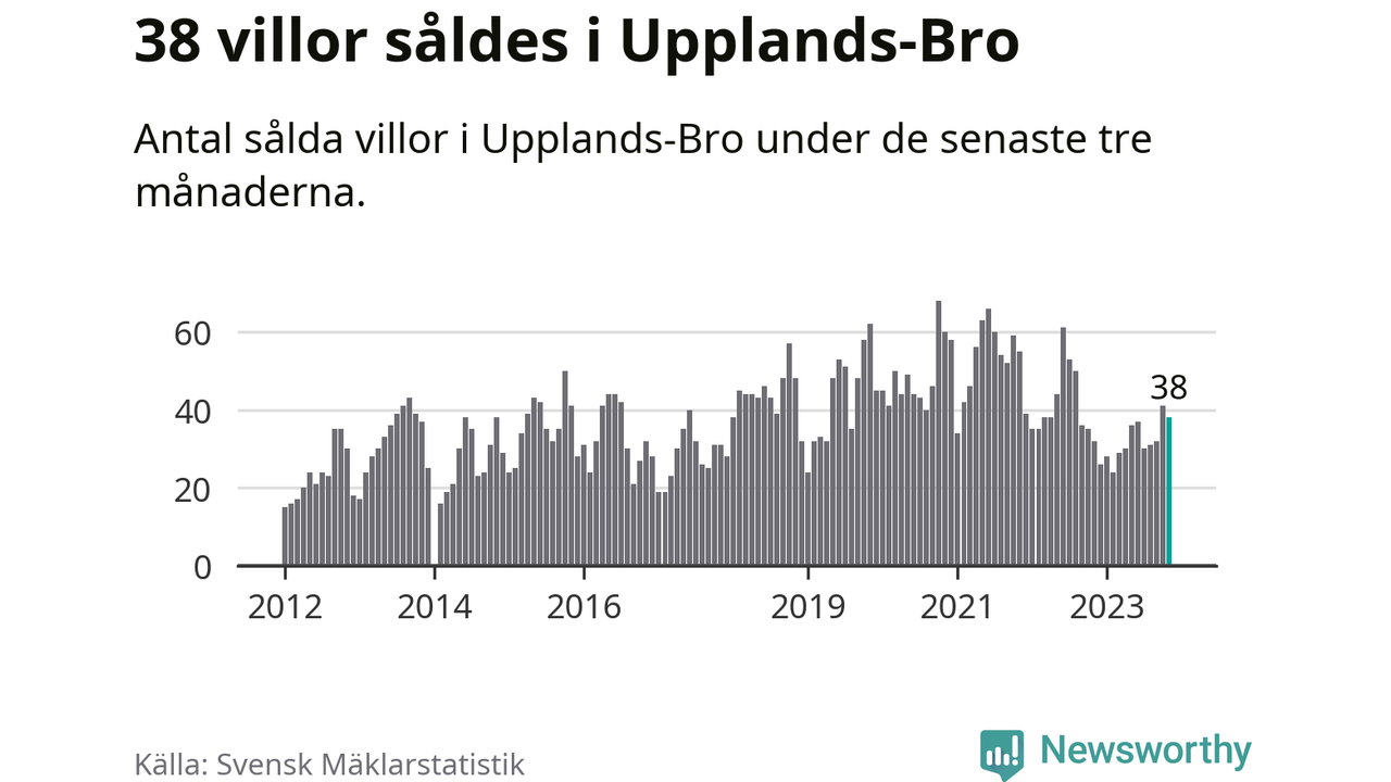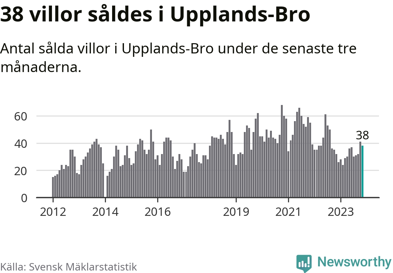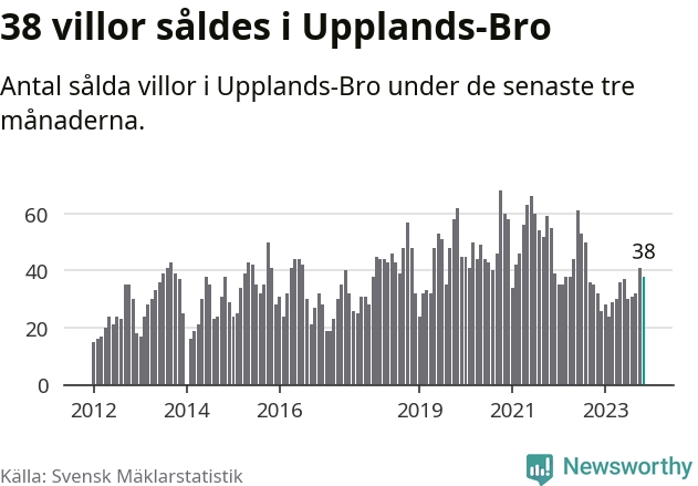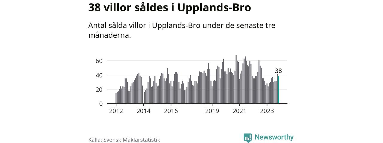 Sammanlagt såldes 38 villor i Upplands-Bro kommun mellan september och november till ett genomsnittligt pris på 3,8 miljoner kronor. I fjol gjordes 32 affärer vid den här tiden på året.