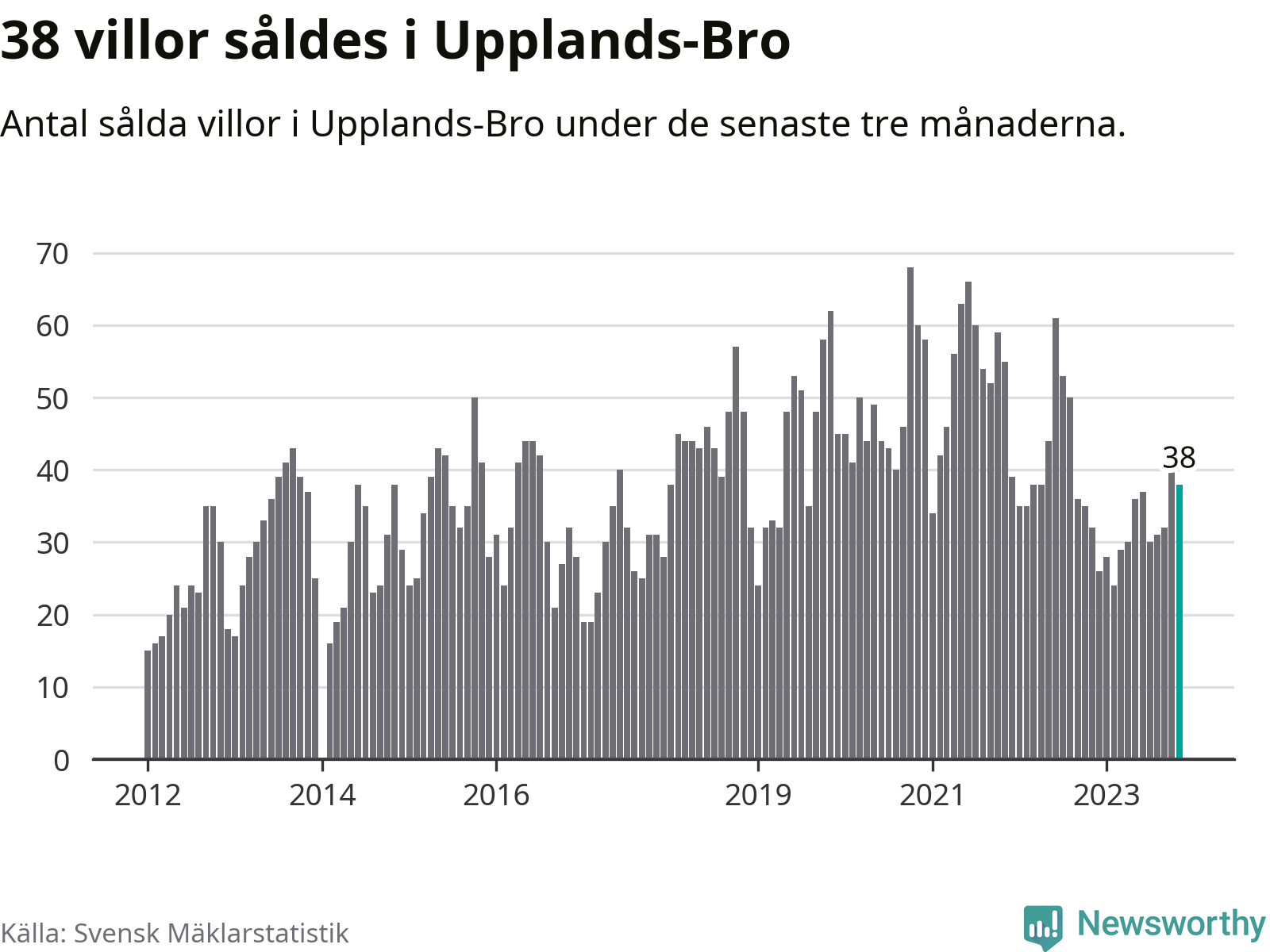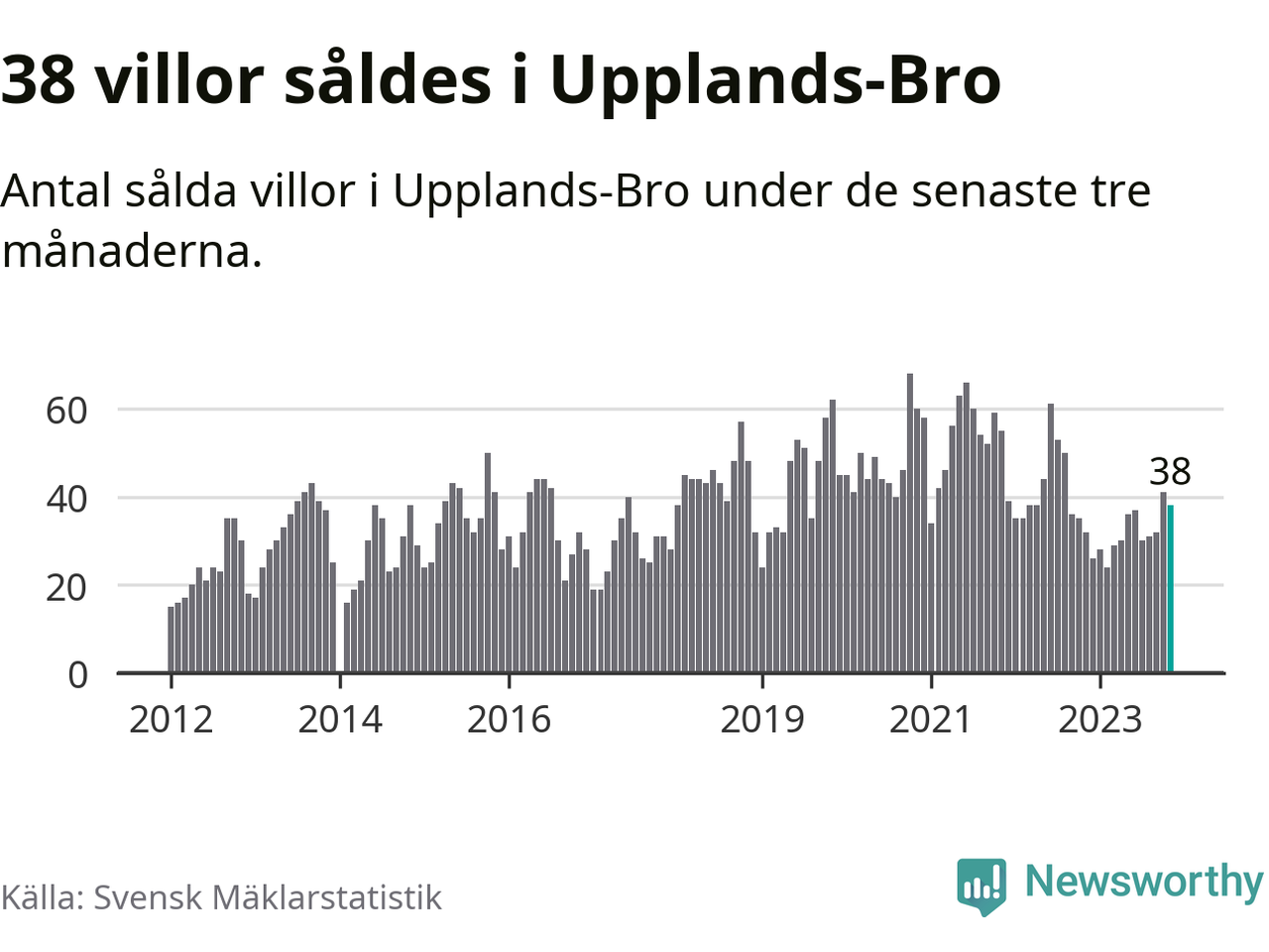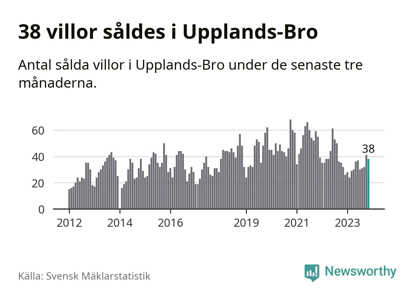 Sammanlagt såldes 38 villor i Upplands-Bro kommun mellan september och november till ett genomsnittligt pris på 3,8 miljoner kronor. I fjol gjordes 32 affärer vid den här tiden på året.