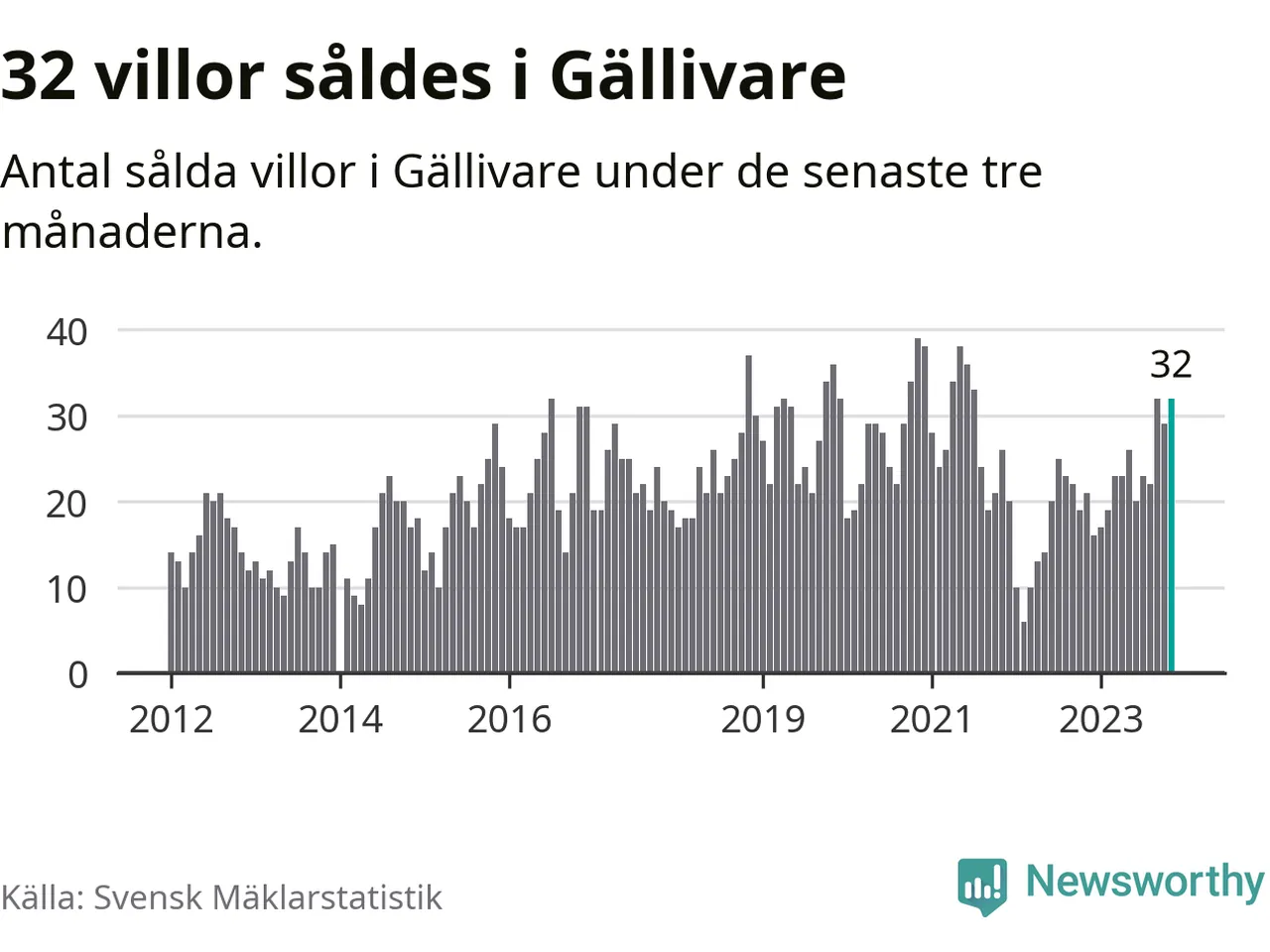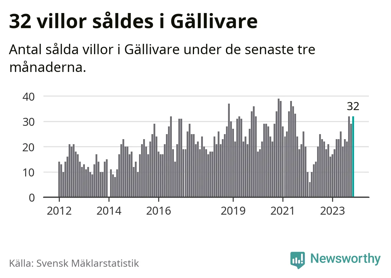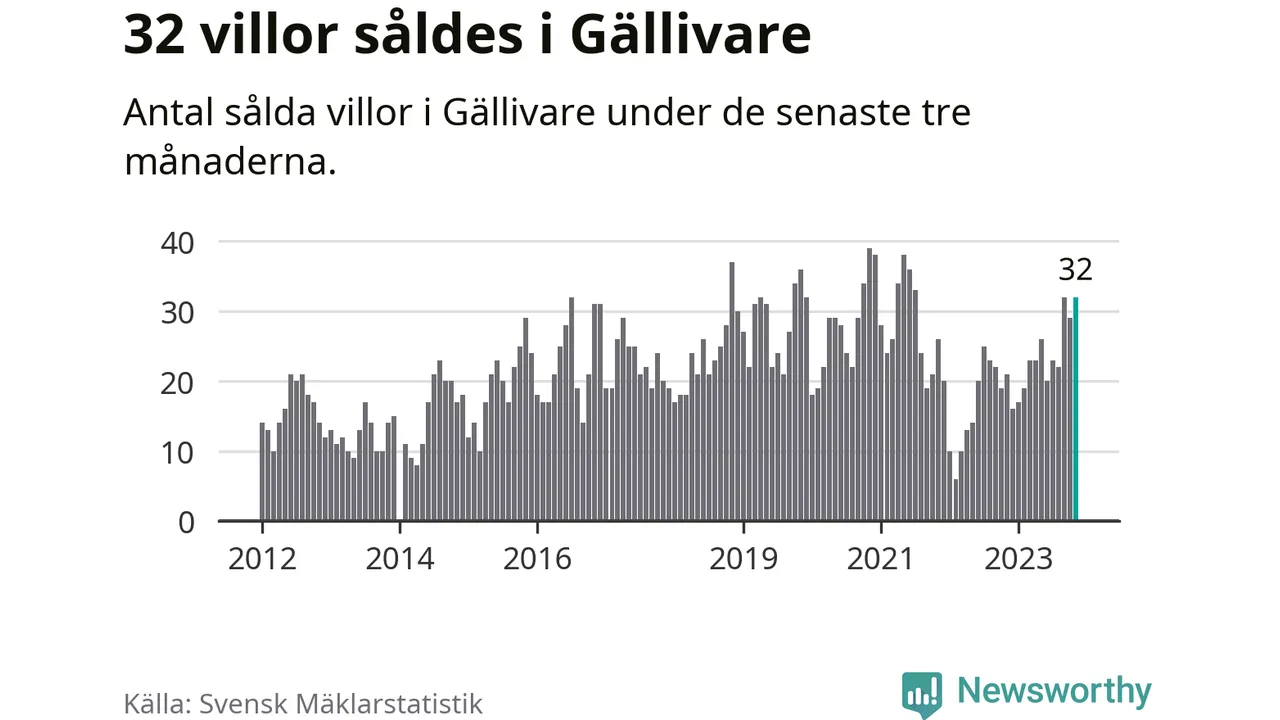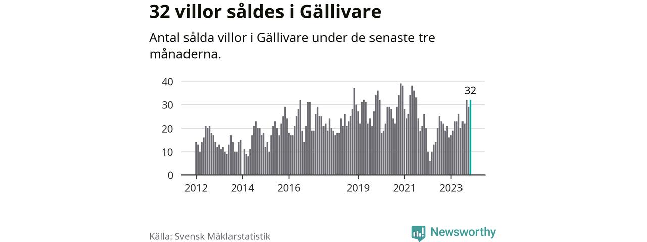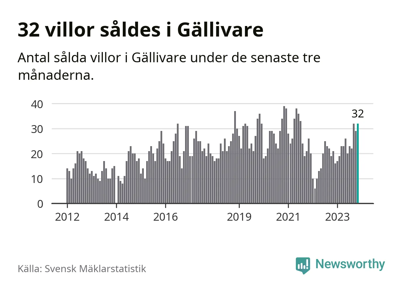Mellan september och november gjordes sammanlagt 32 affärer med villor i Gällivare kommun. Det kan jämföras med 21 vid motsvarande tid i fjol.