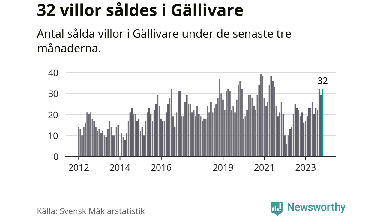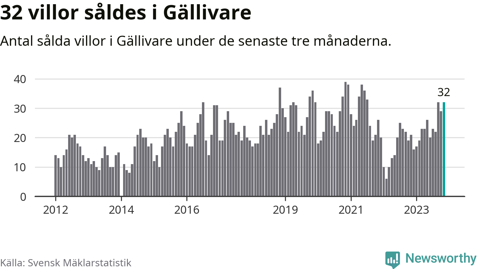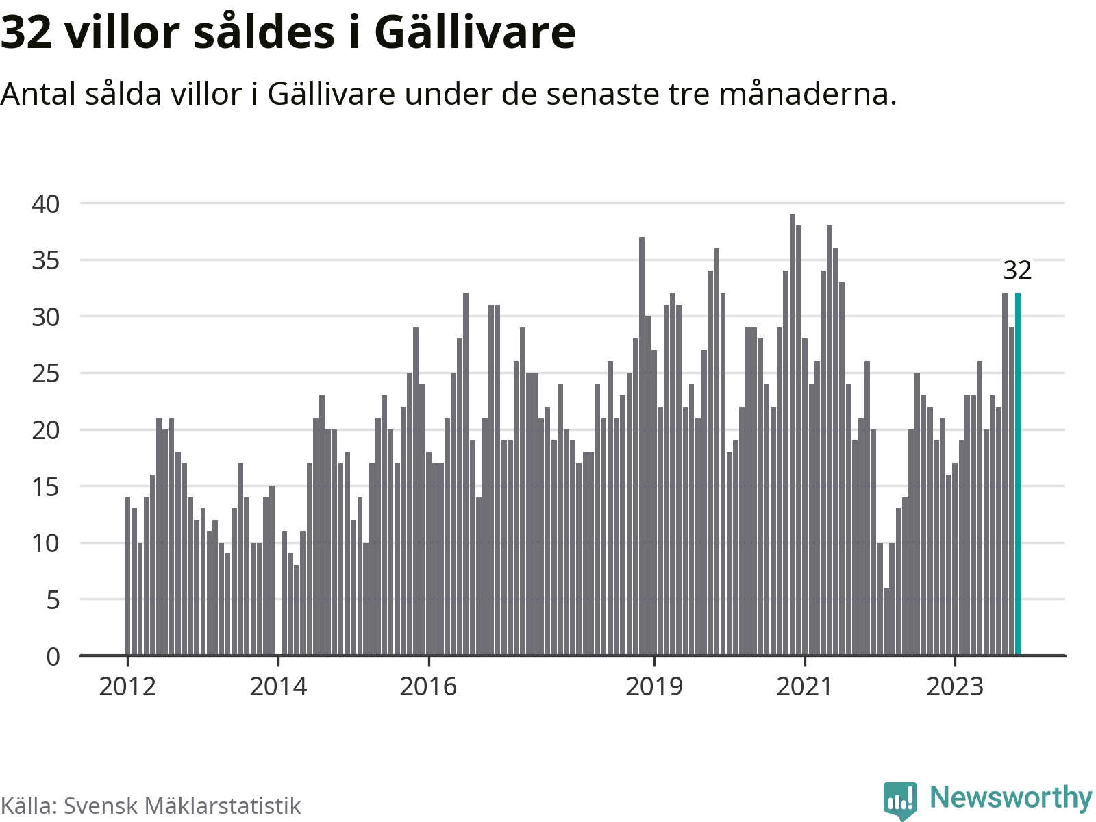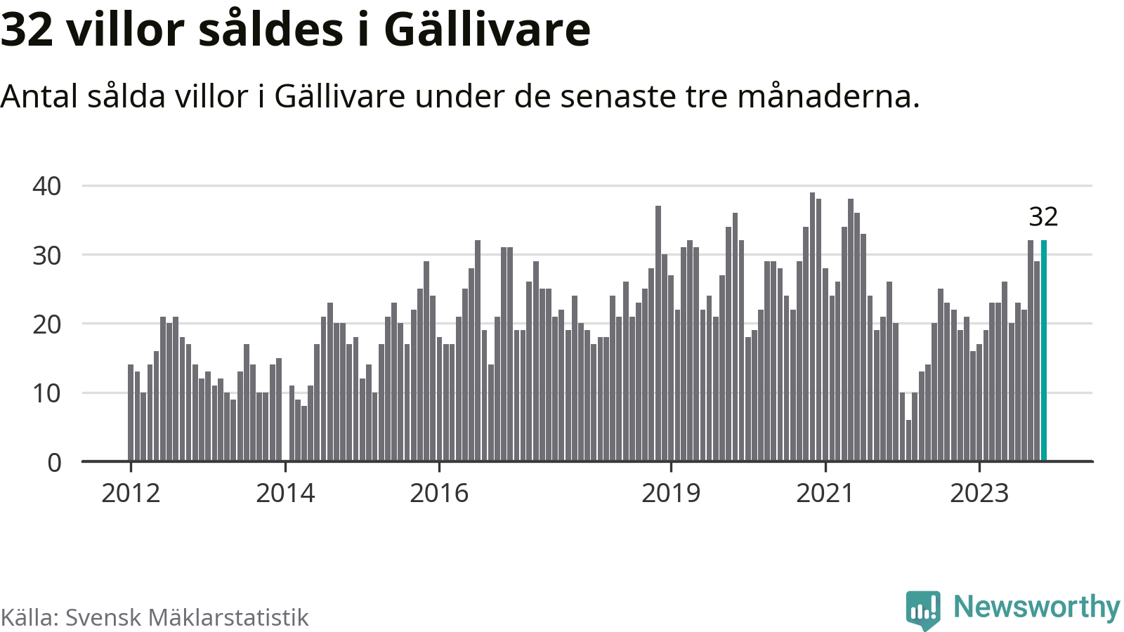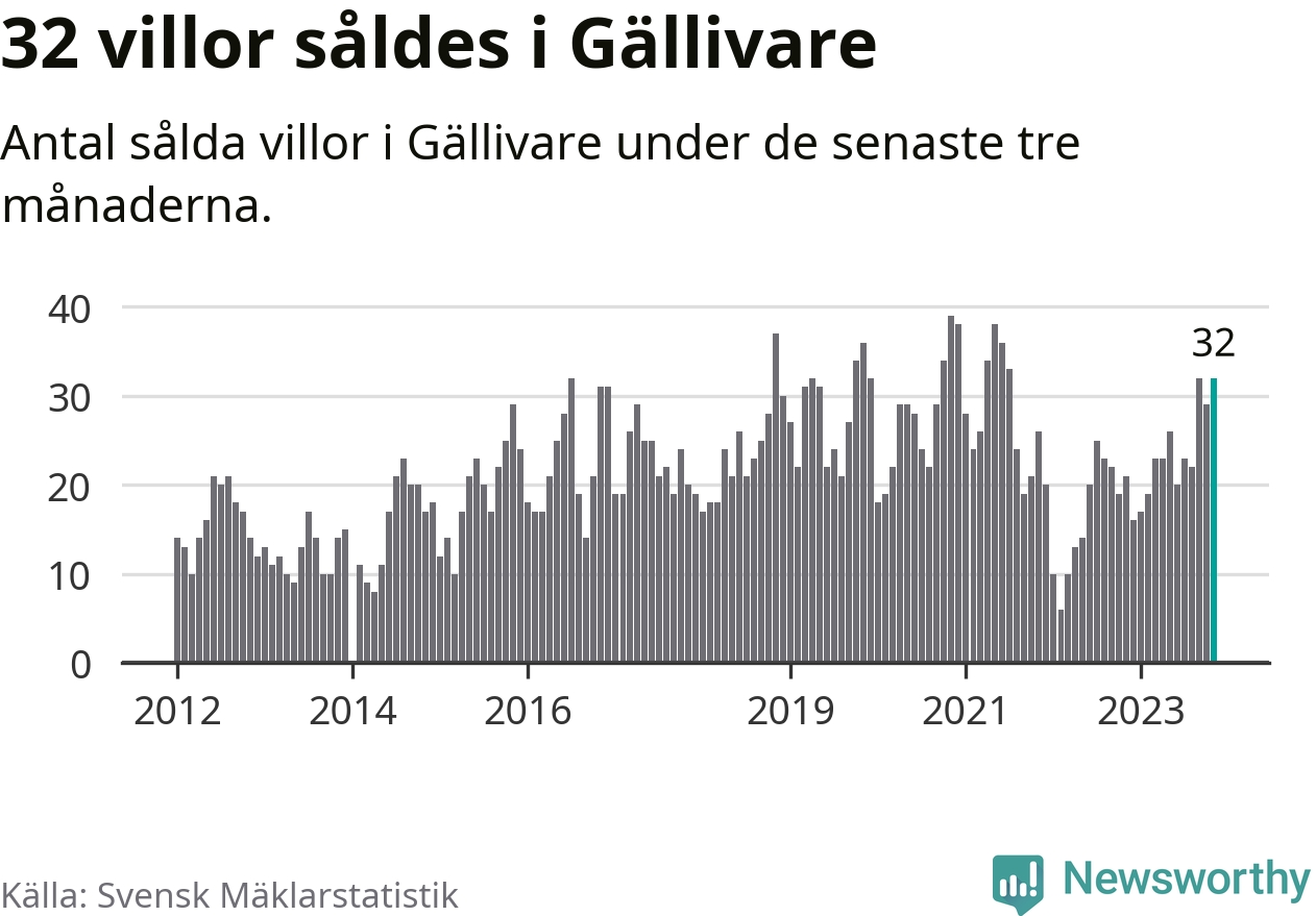 Mellan september och november gjordes sammanlagt 32 affärer med villor i Gällivare kommun. Det kan jämföras med 21 vid motsvarande tid i fjol.