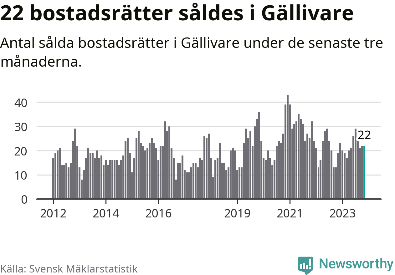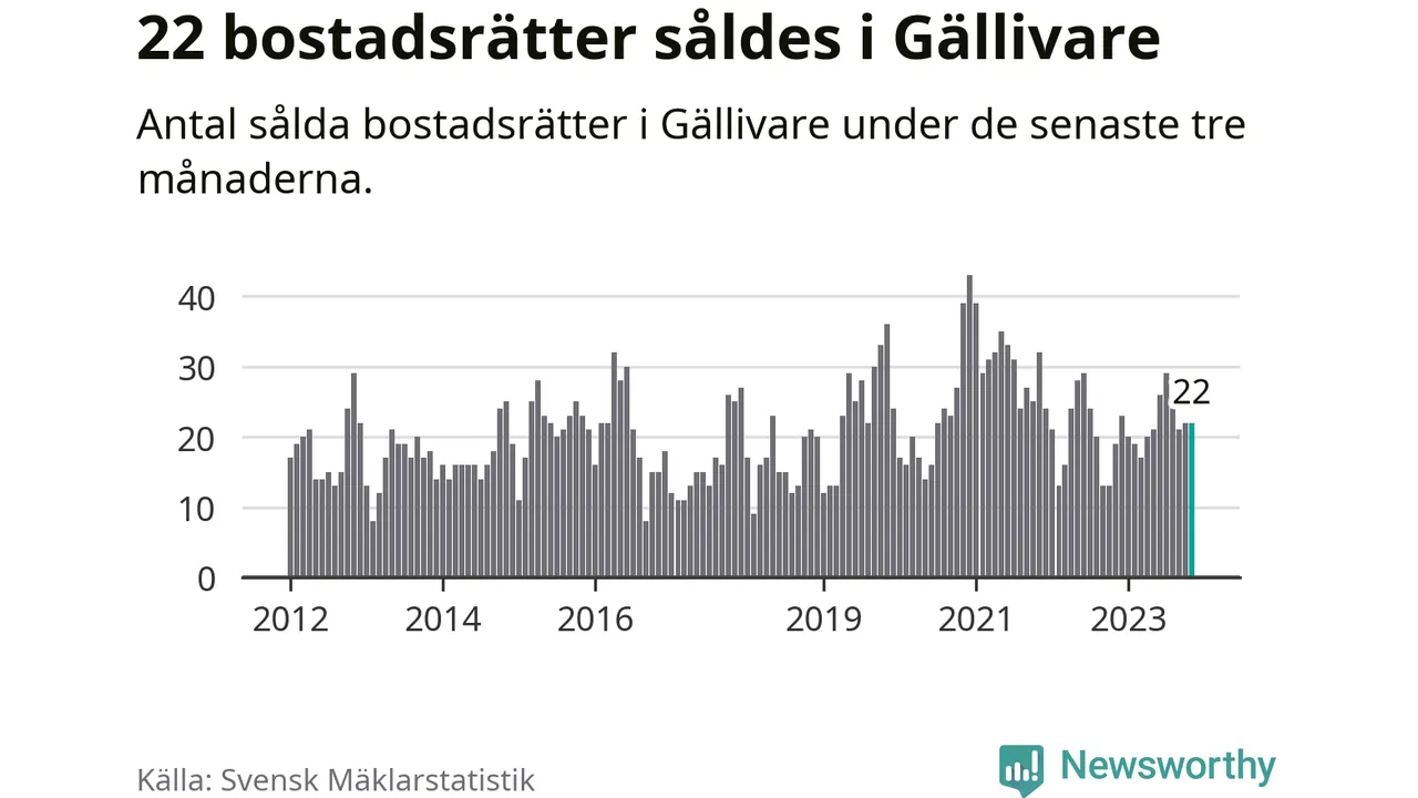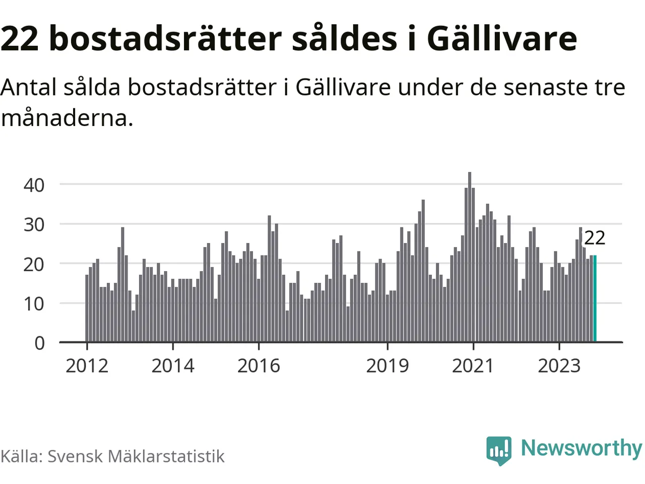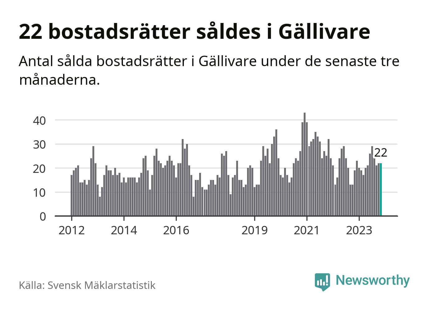 Mellan september och november gjordes sammanlagt 22 affärer med bostadsrätter i Gällivare kommun. Det kan jämföras med 19 vid motsvarande tid i fjol.