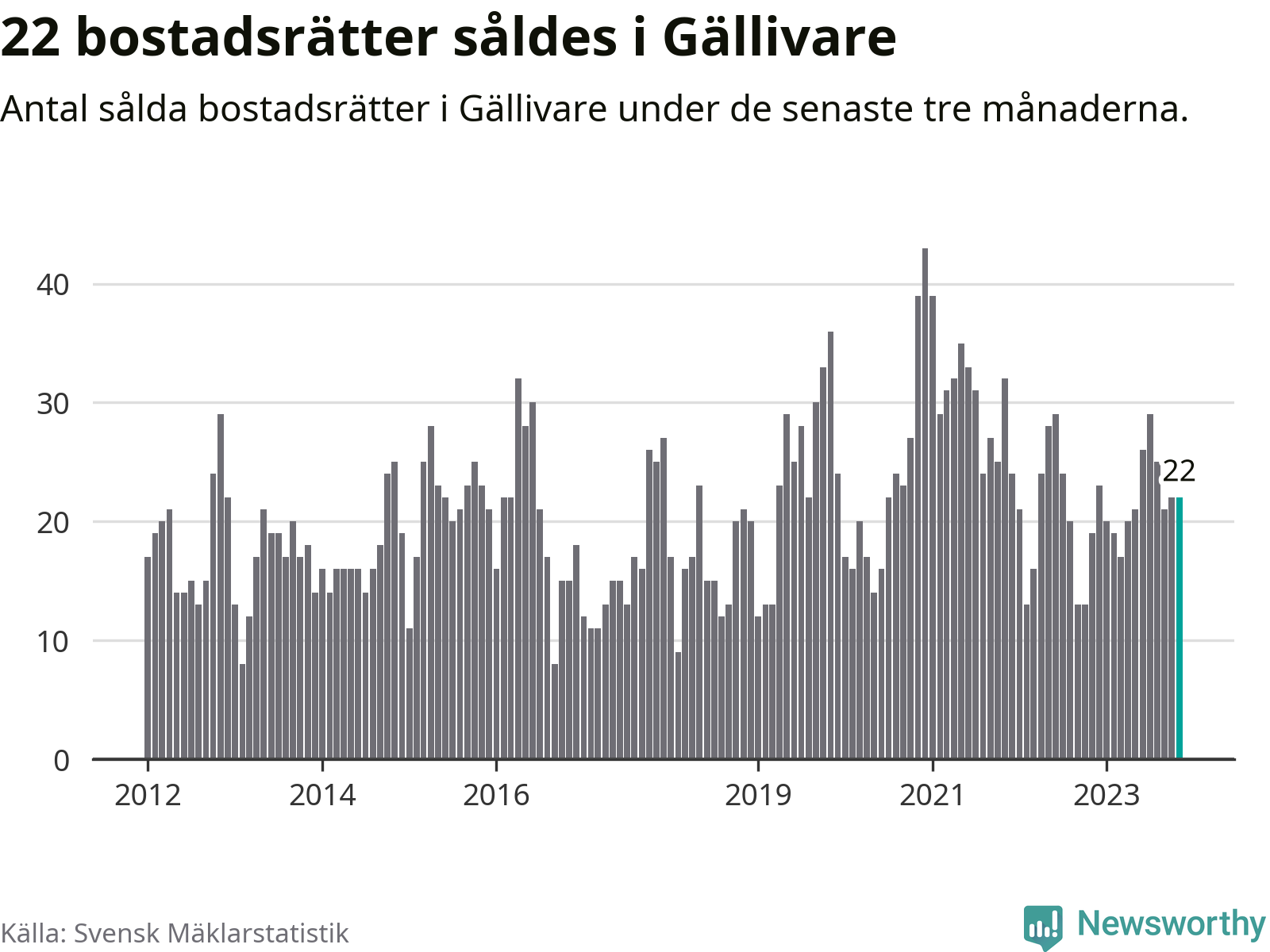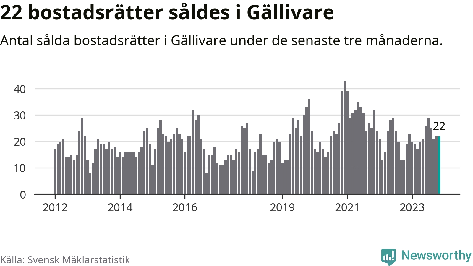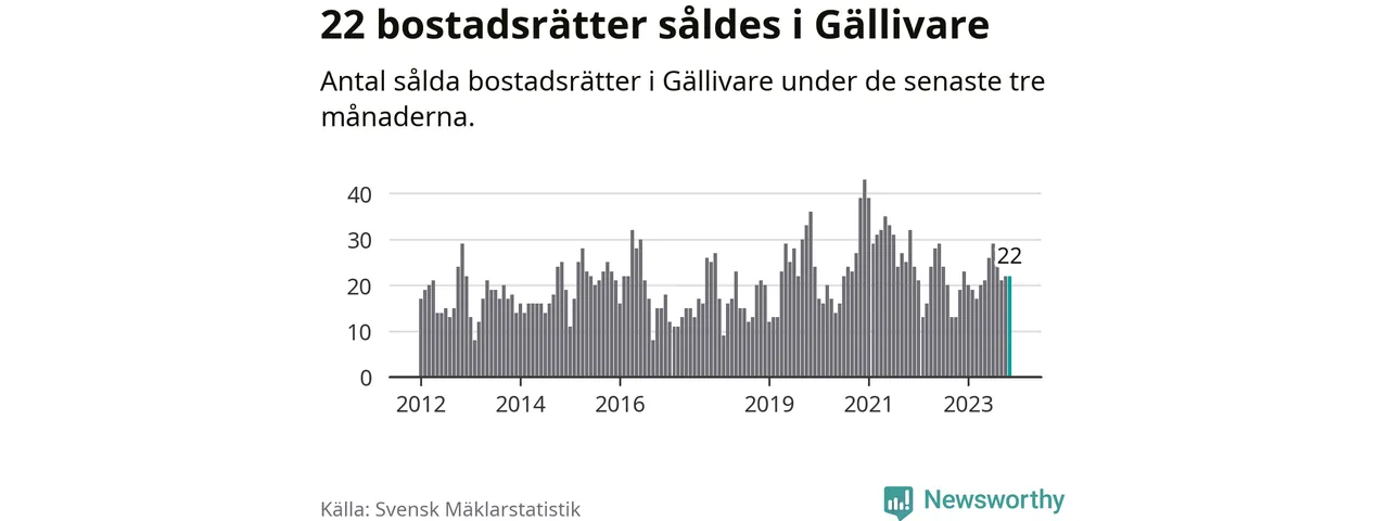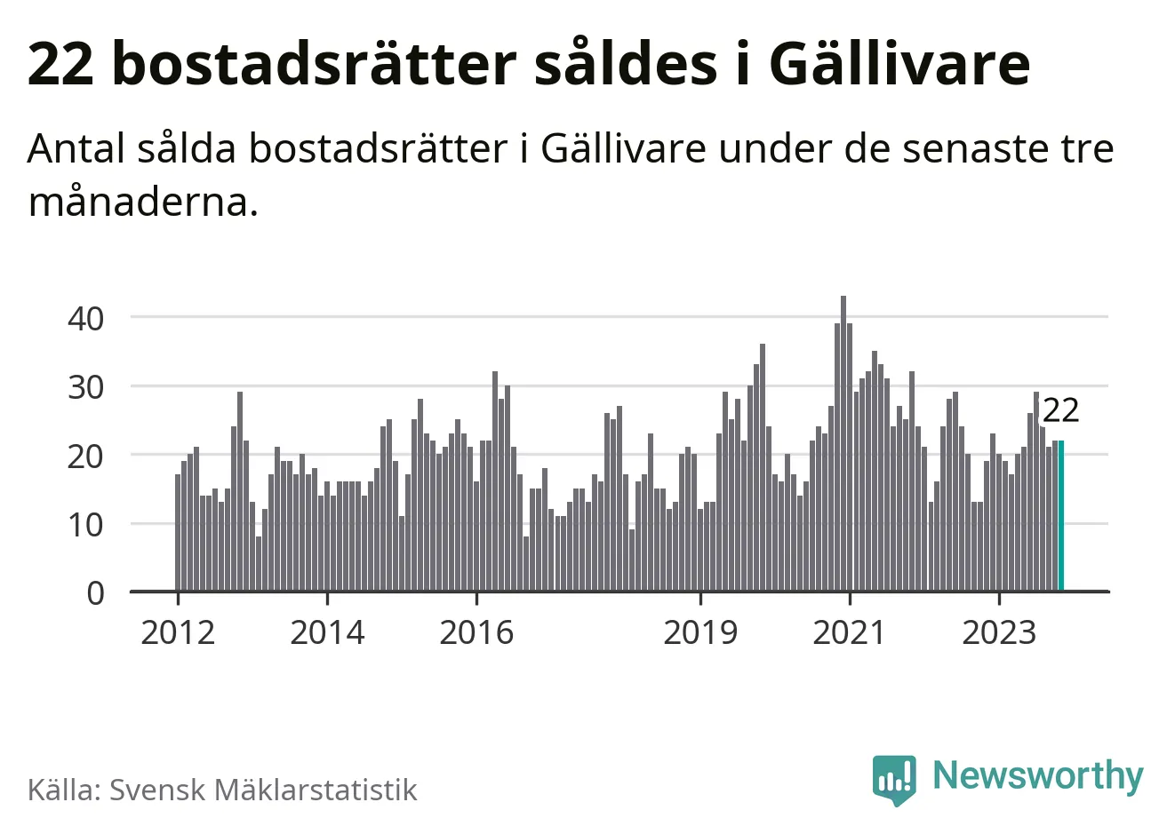 Mellan september och november gjordes sammanlagt 22 affärer med bostadsrätter i Gällivare kommun. Det kan jämföras med 19 vid motsvarande tid i fjol.