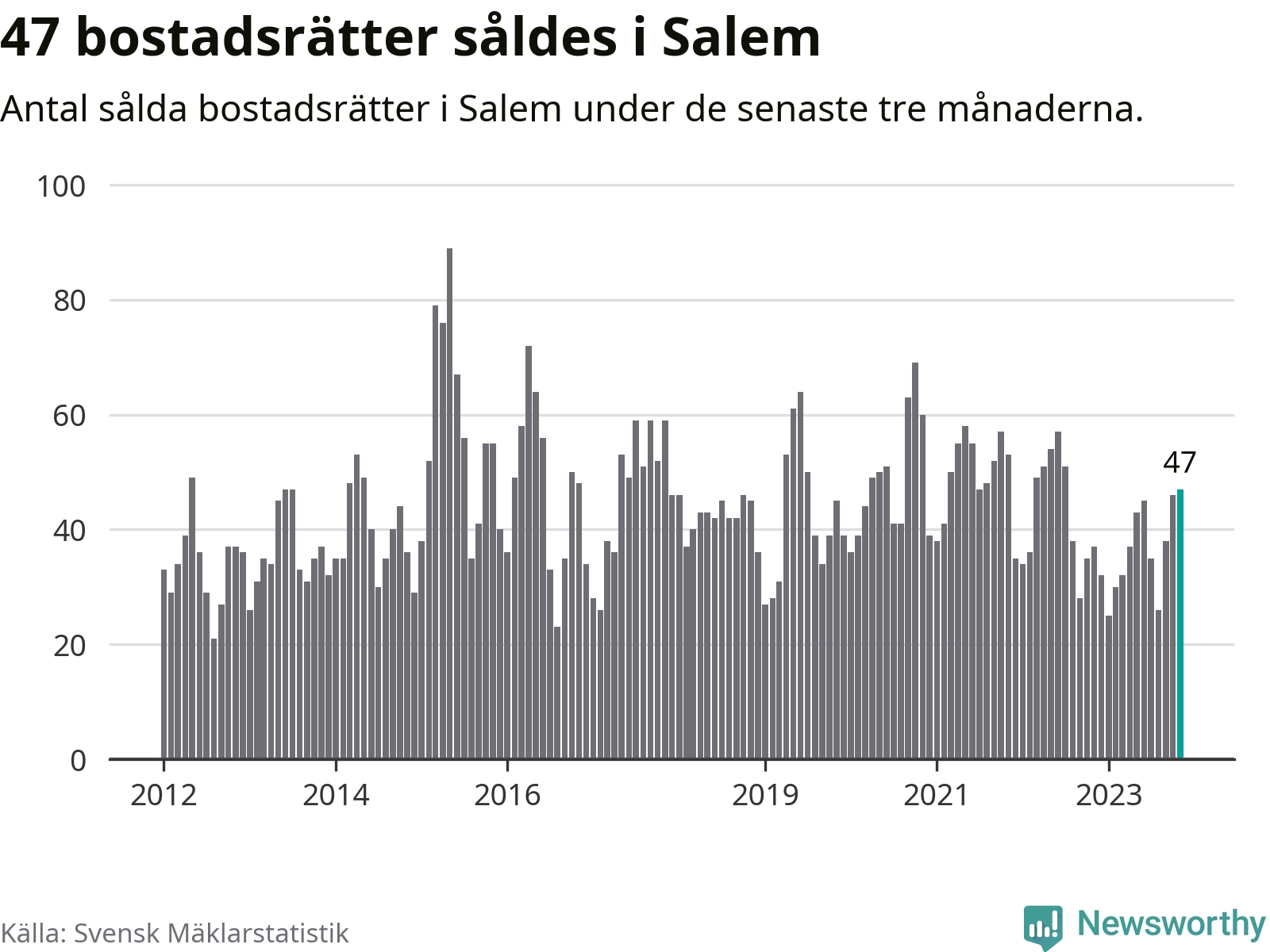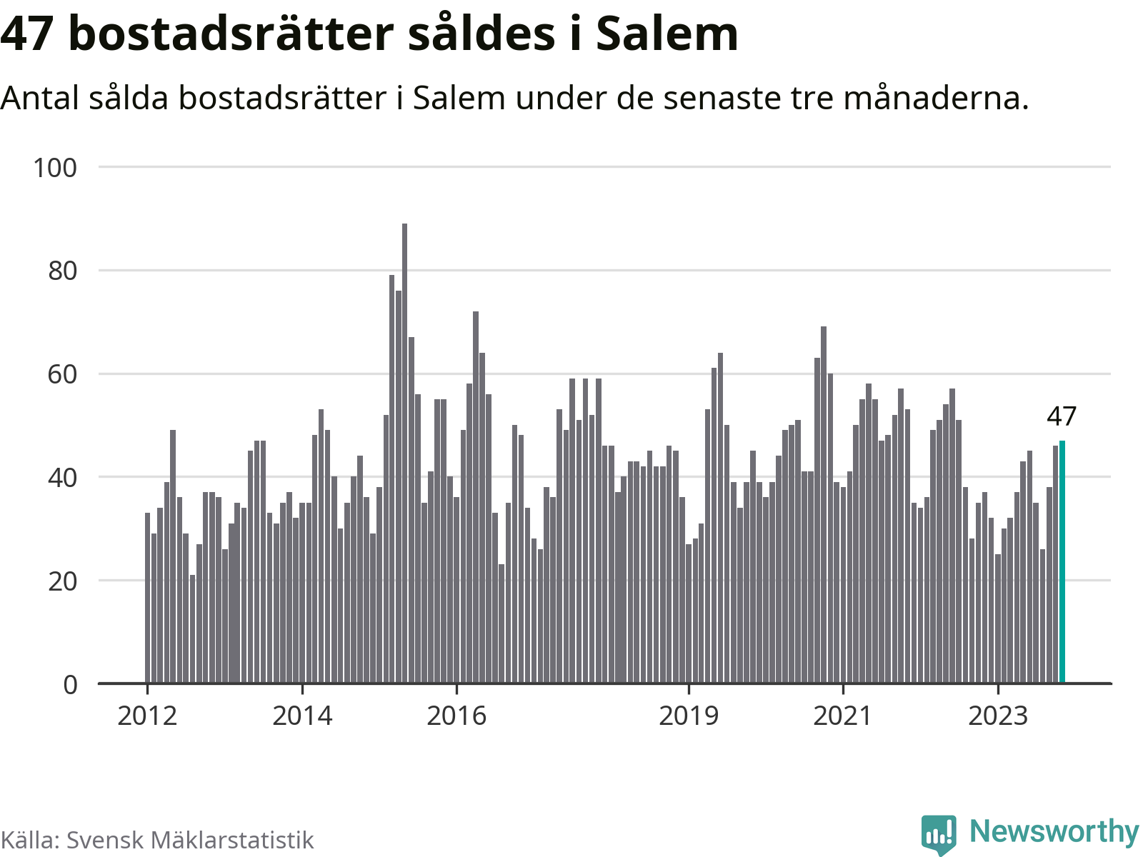 Graf: Antal sålda bostadsrätter i Salems kommun