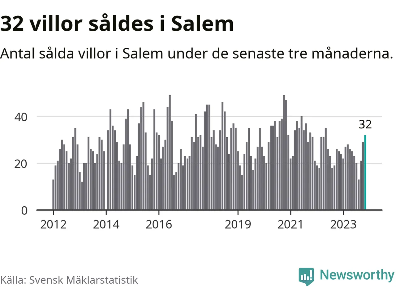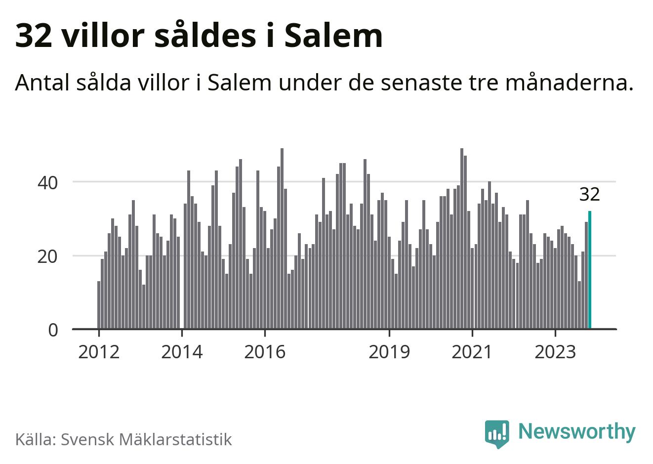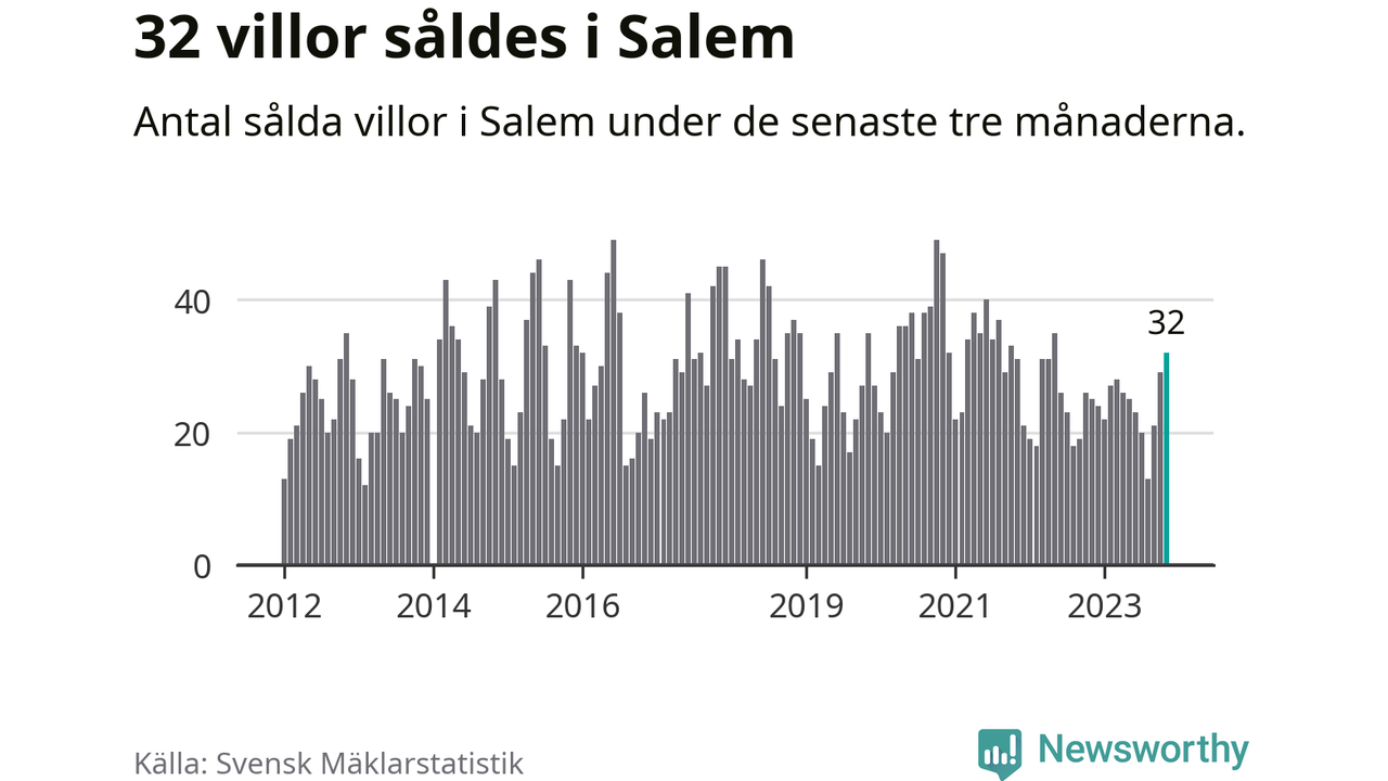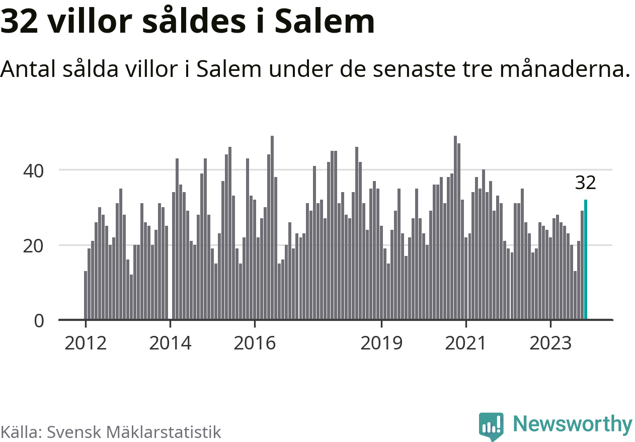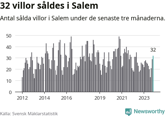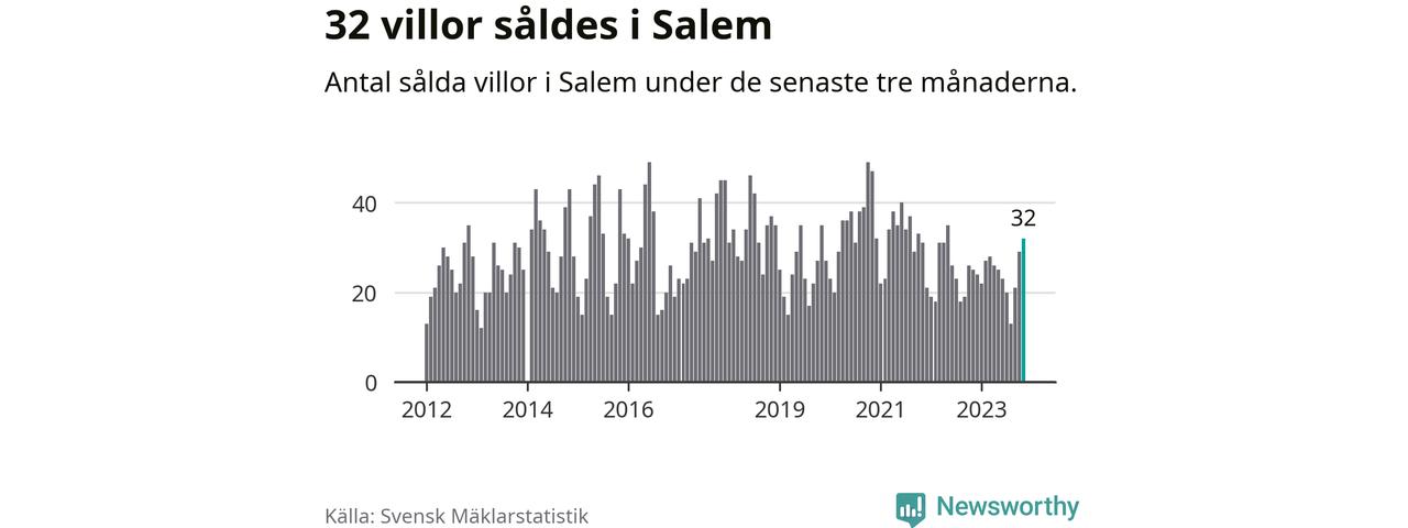 Mellan september och november gjordes sammanlagt 32 affärer med villor i Salems kommun. Det kan jämföras med 25 vid motsvarande tid i fjol.