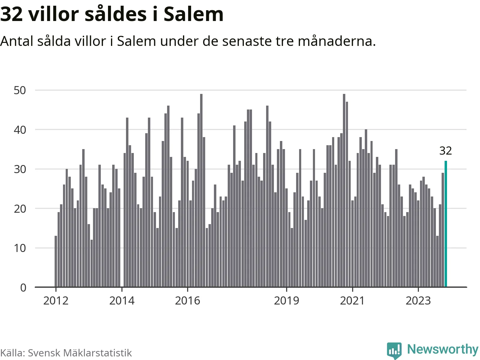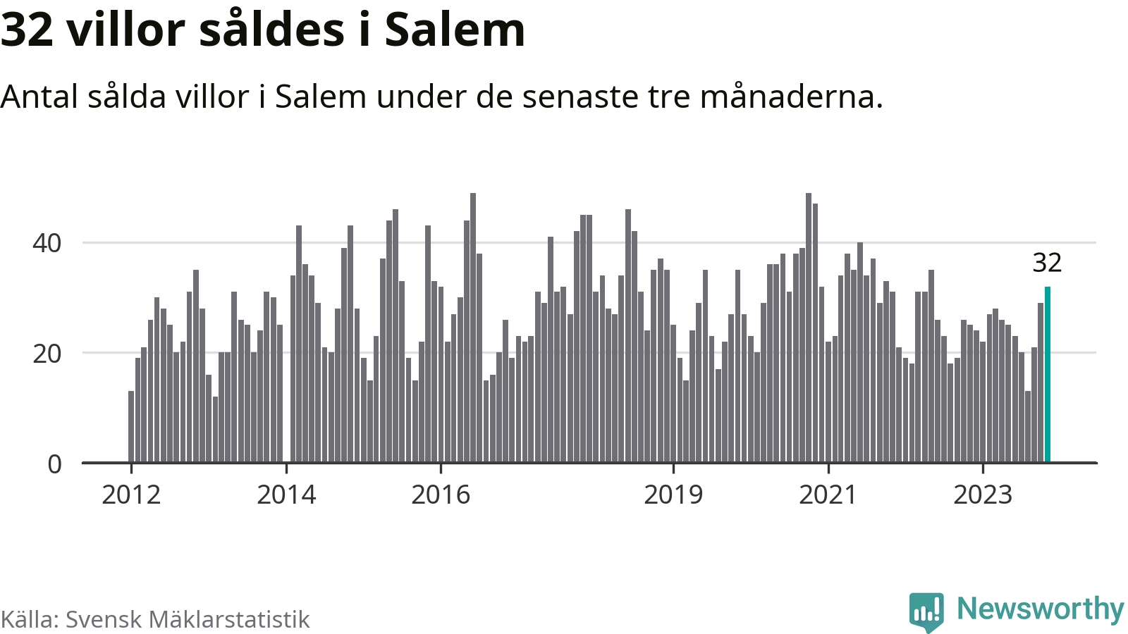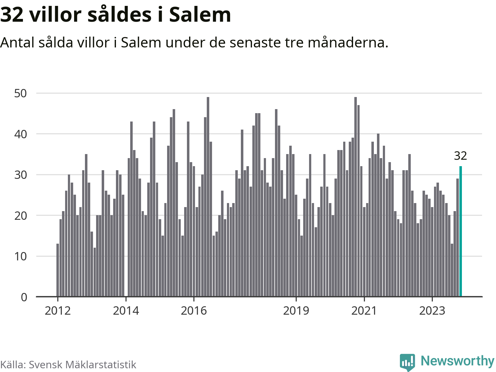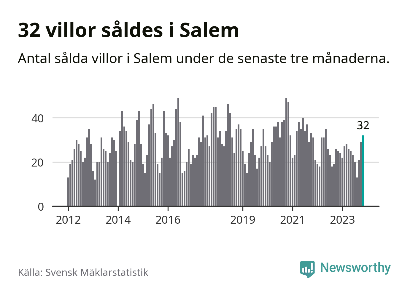 Mellan september och november gjordes sammanlagt 32 affärer med villor i Salems kommun. Det kan jämföras med 25 vid motsvarande tid i fjol.
