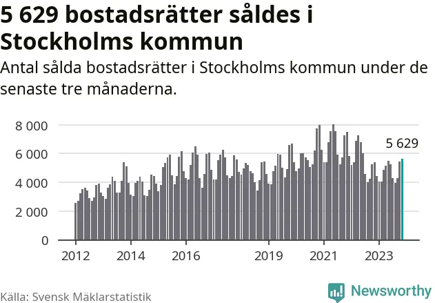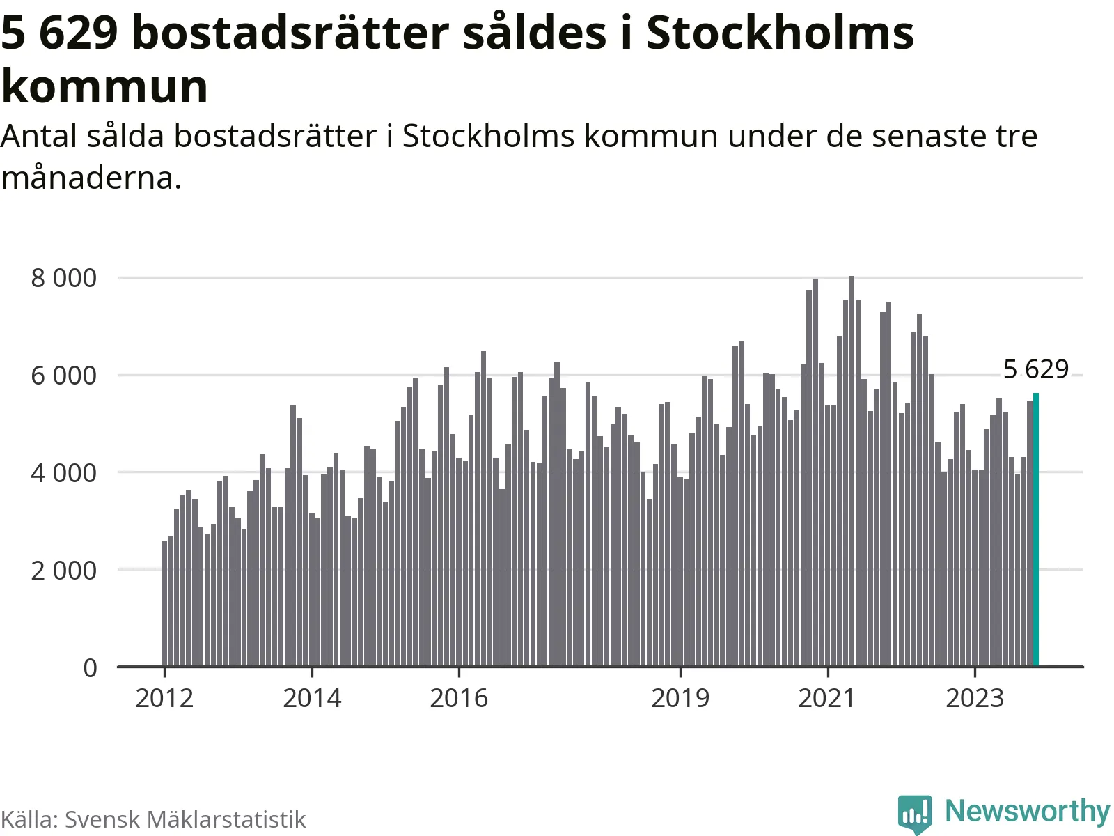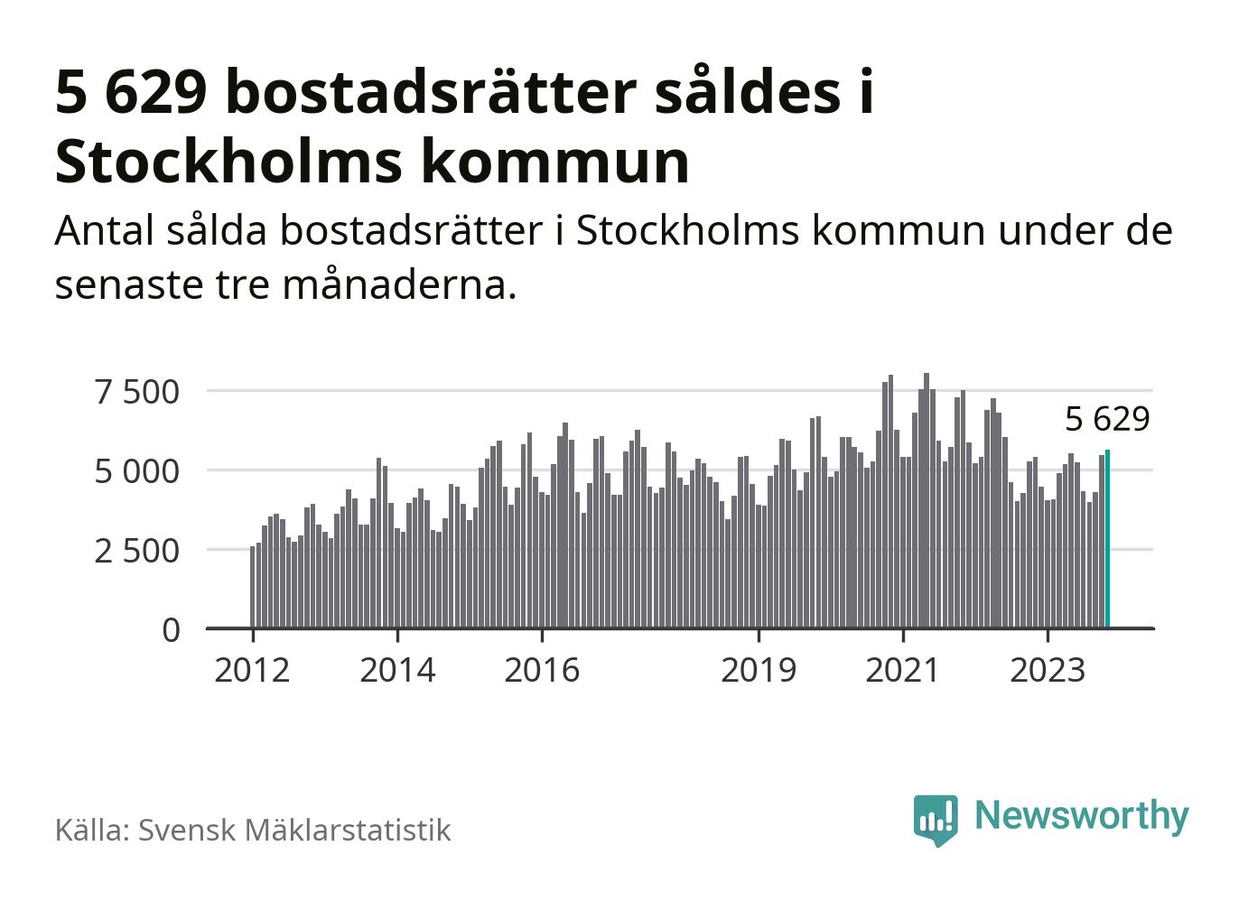 Sammanlagt såldes 5 629 bostadsrätter i Stockholms kommun mellan september och november till ett genomsnittligt pris på 5,0 miljoner kronor. I fjol gjordes 5 391 affärer vid den här tiden på året.