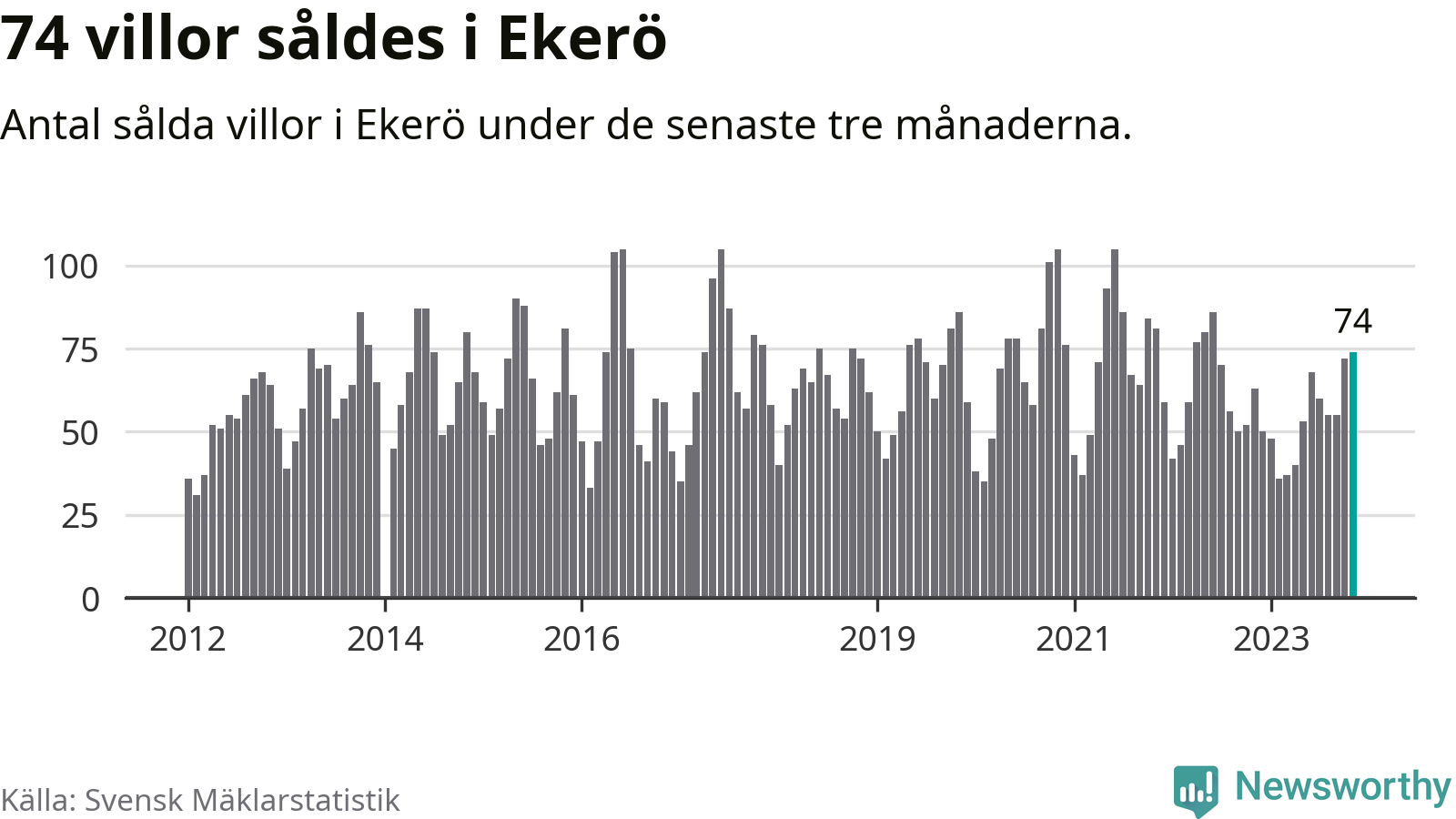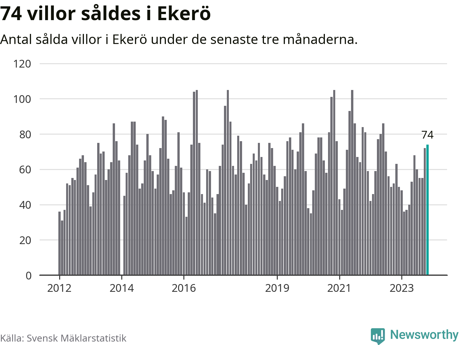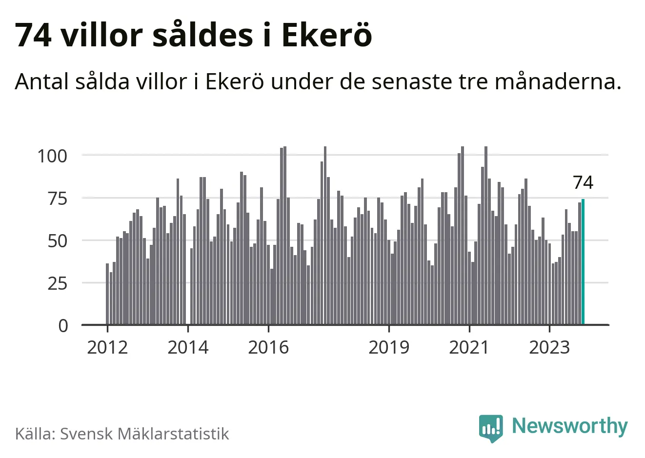 Graf: Antal sålda villor i Ekerö kommun