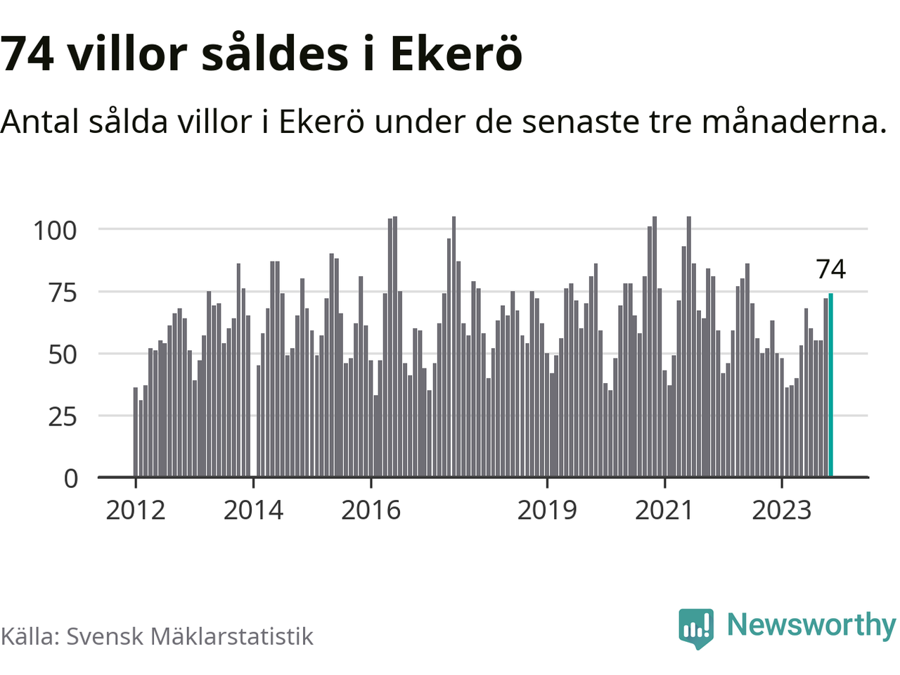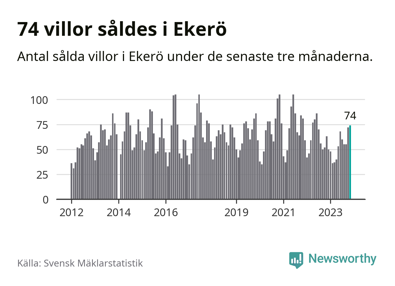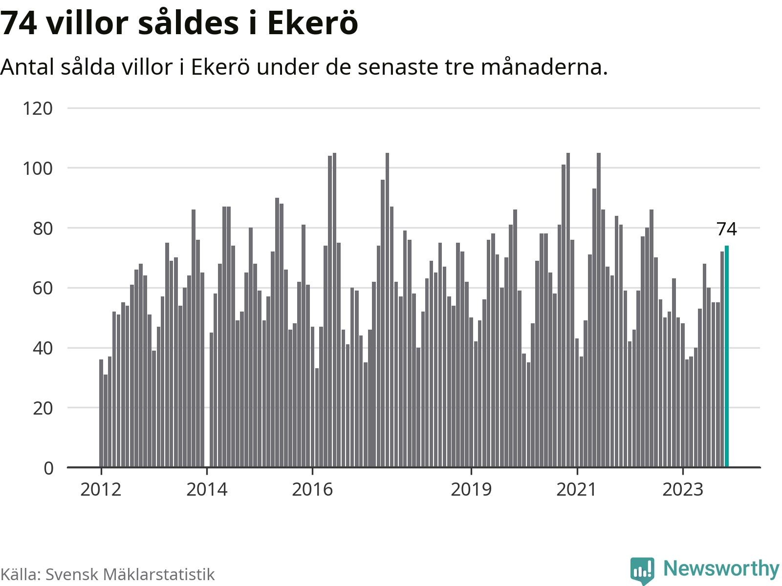 Graf: Antal sålda villor i Ekerö kommun
