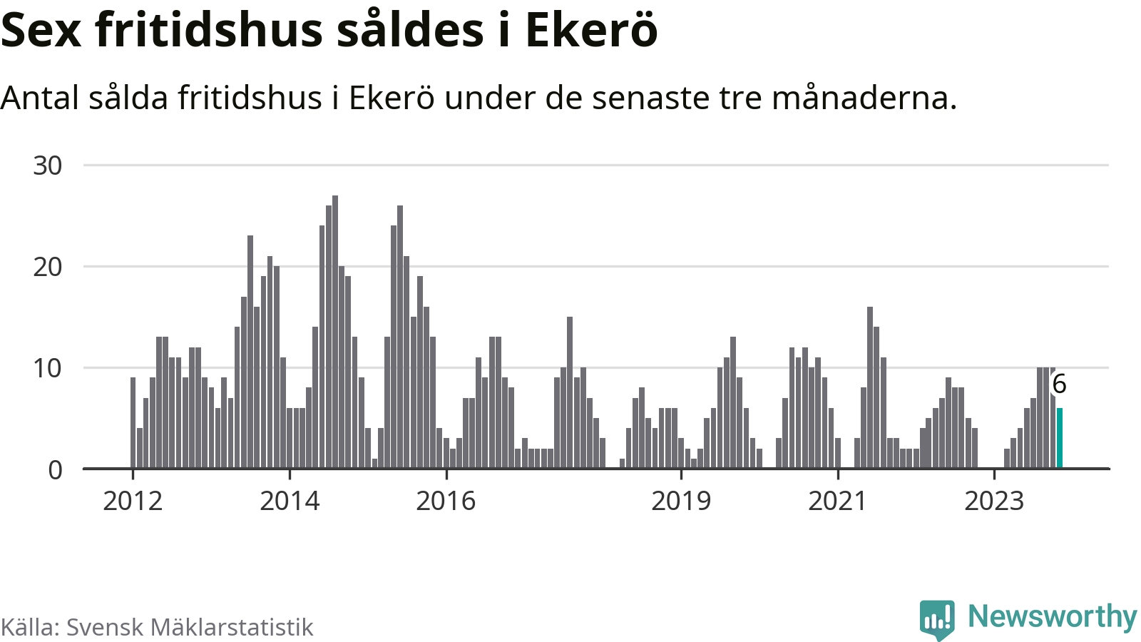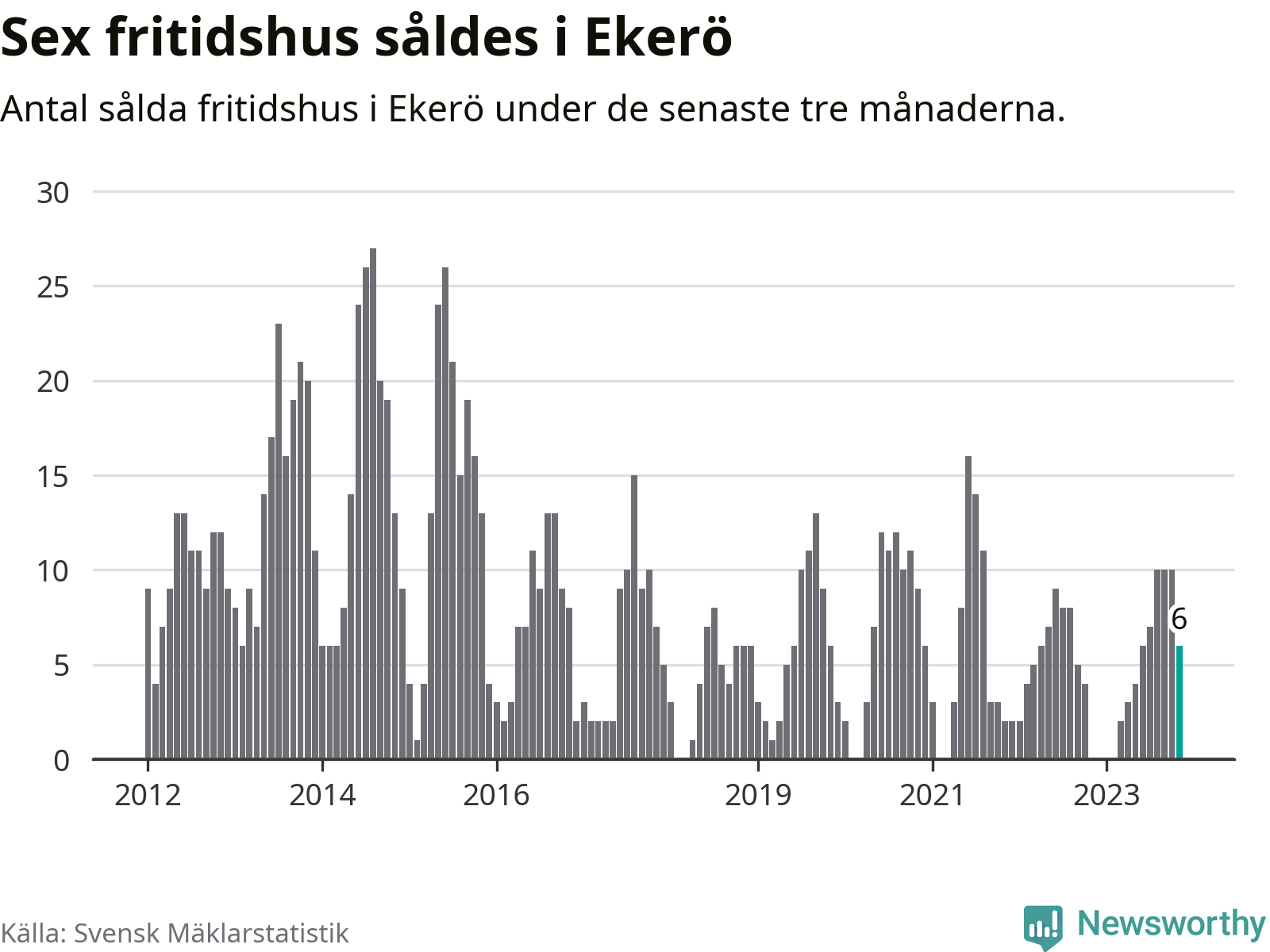 Graf: Antal sålda fritidshus i Ekerö kommun