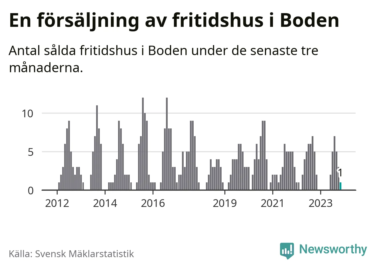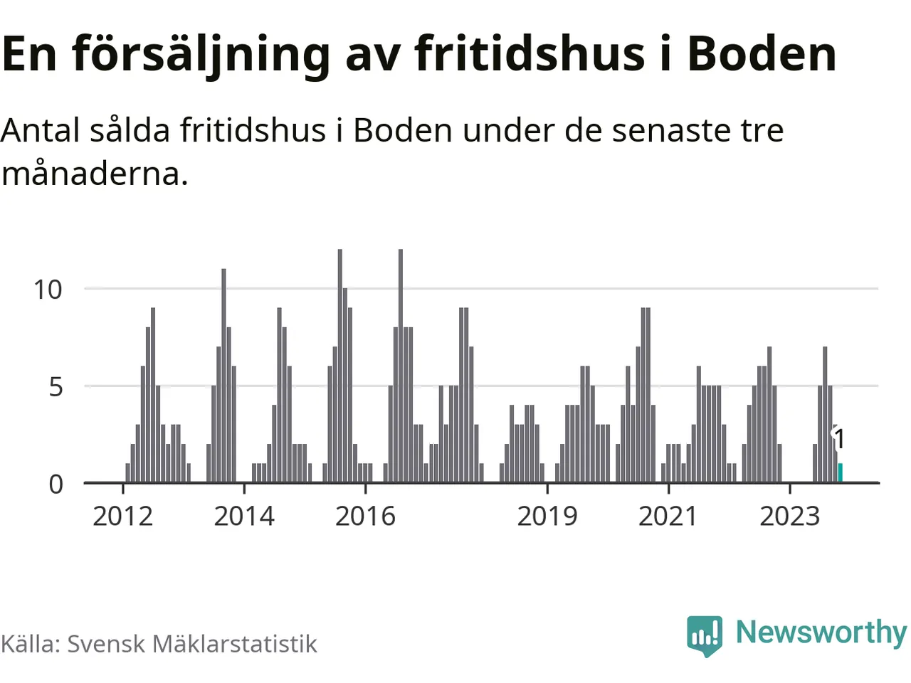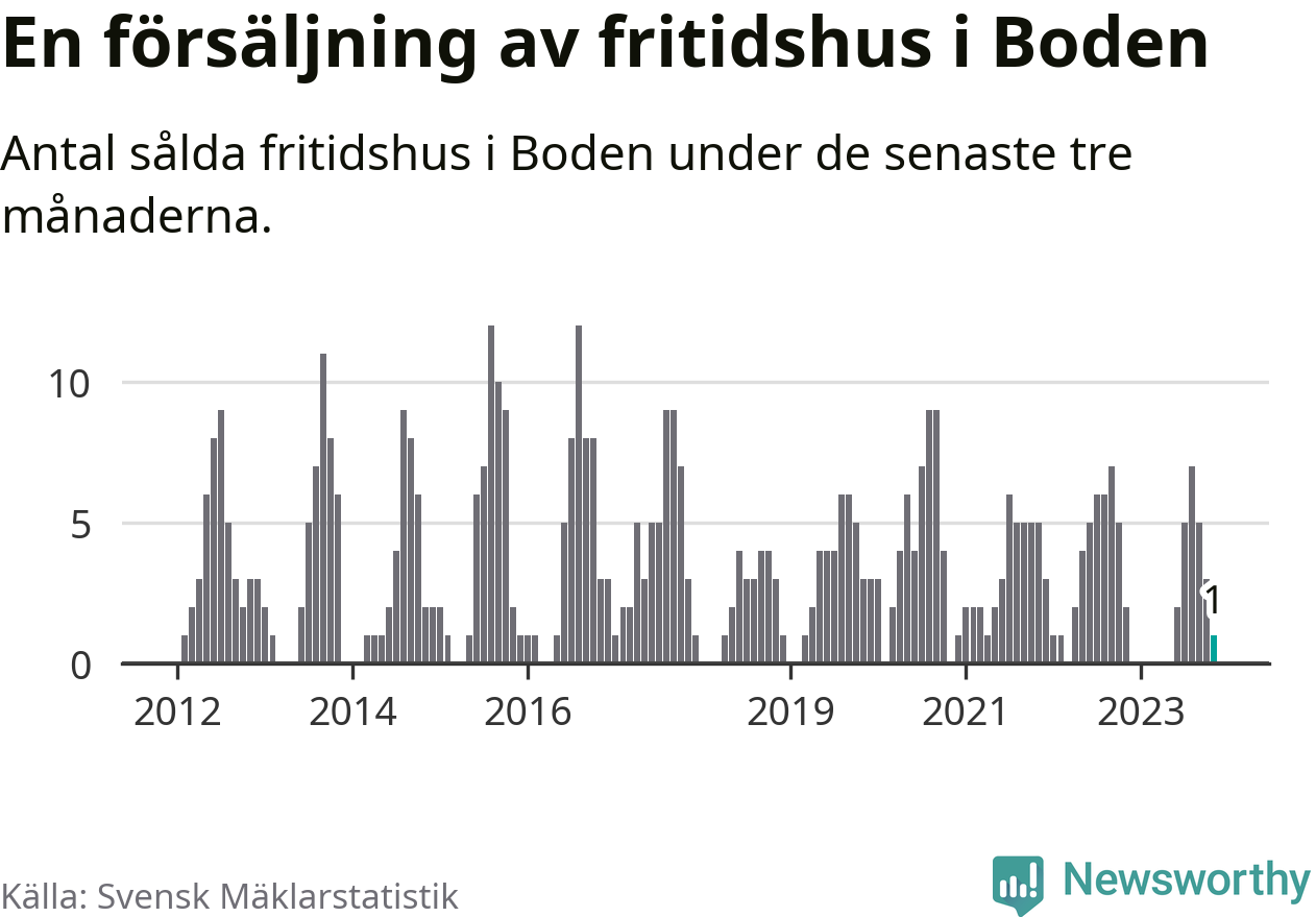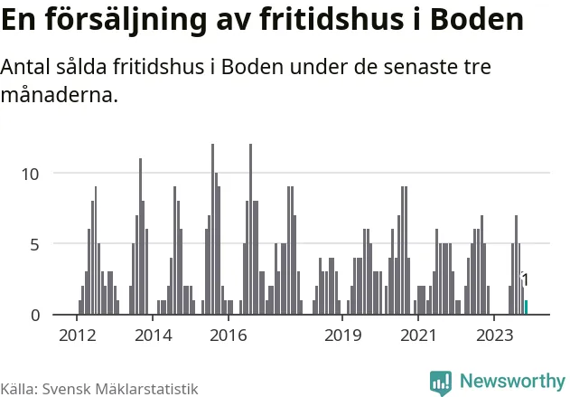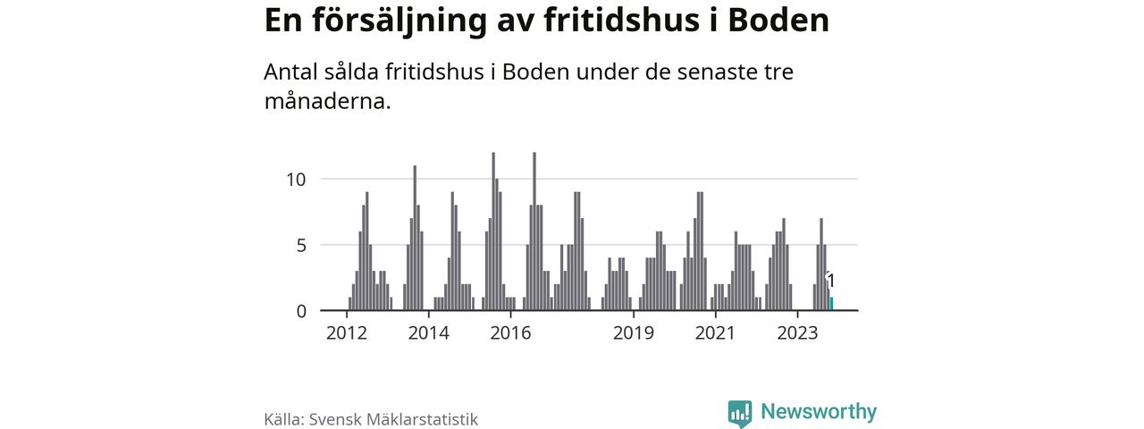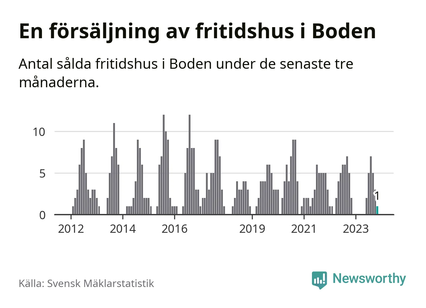 Mellan september och november gjordes sammanlagt en affär med fritidshus i Bodens kommun. Det kan jämföras med två vid motsvarande tid i fjol.