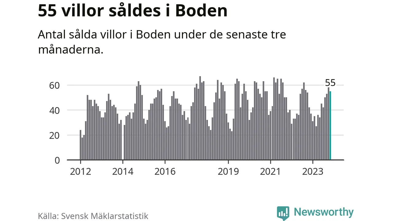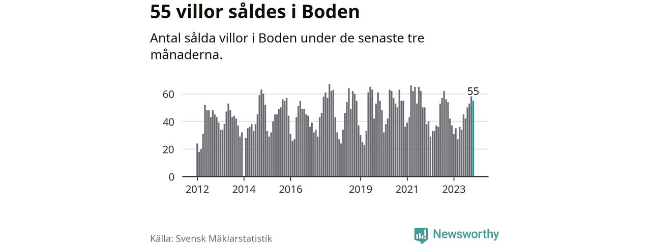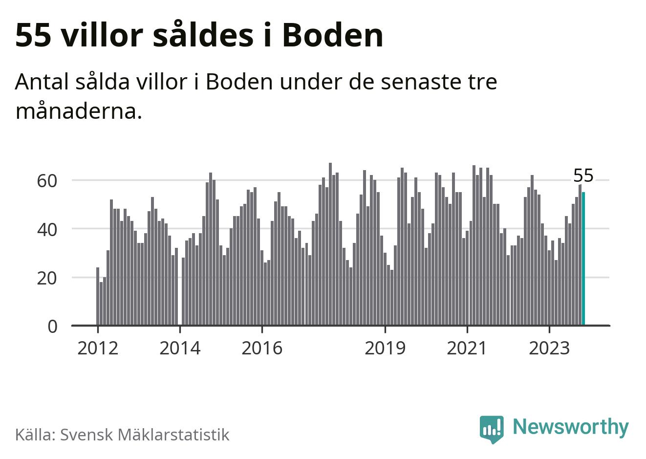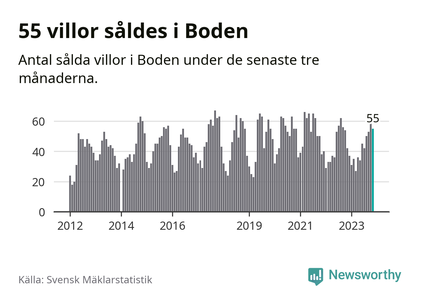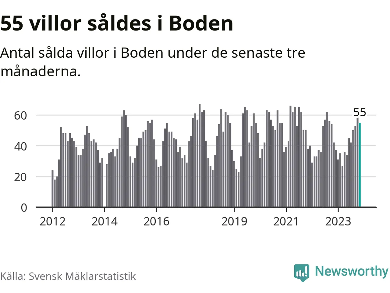 Sammanlagt såldes 55 villor i Bodens kommun mellan september och november till ett genomsnittligt pris på 1,7 miljoner kronor. I fjol gjordes 42 affärer vid den här tiden på året.