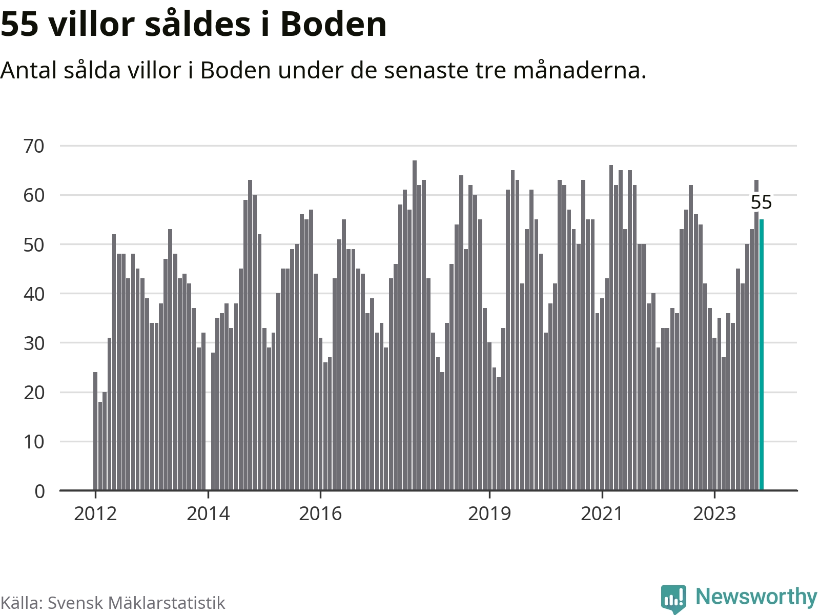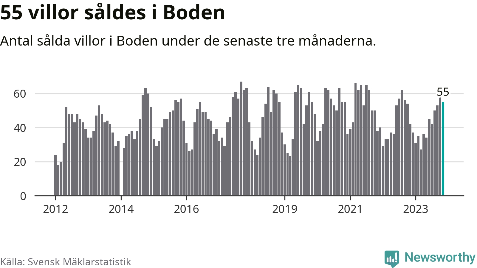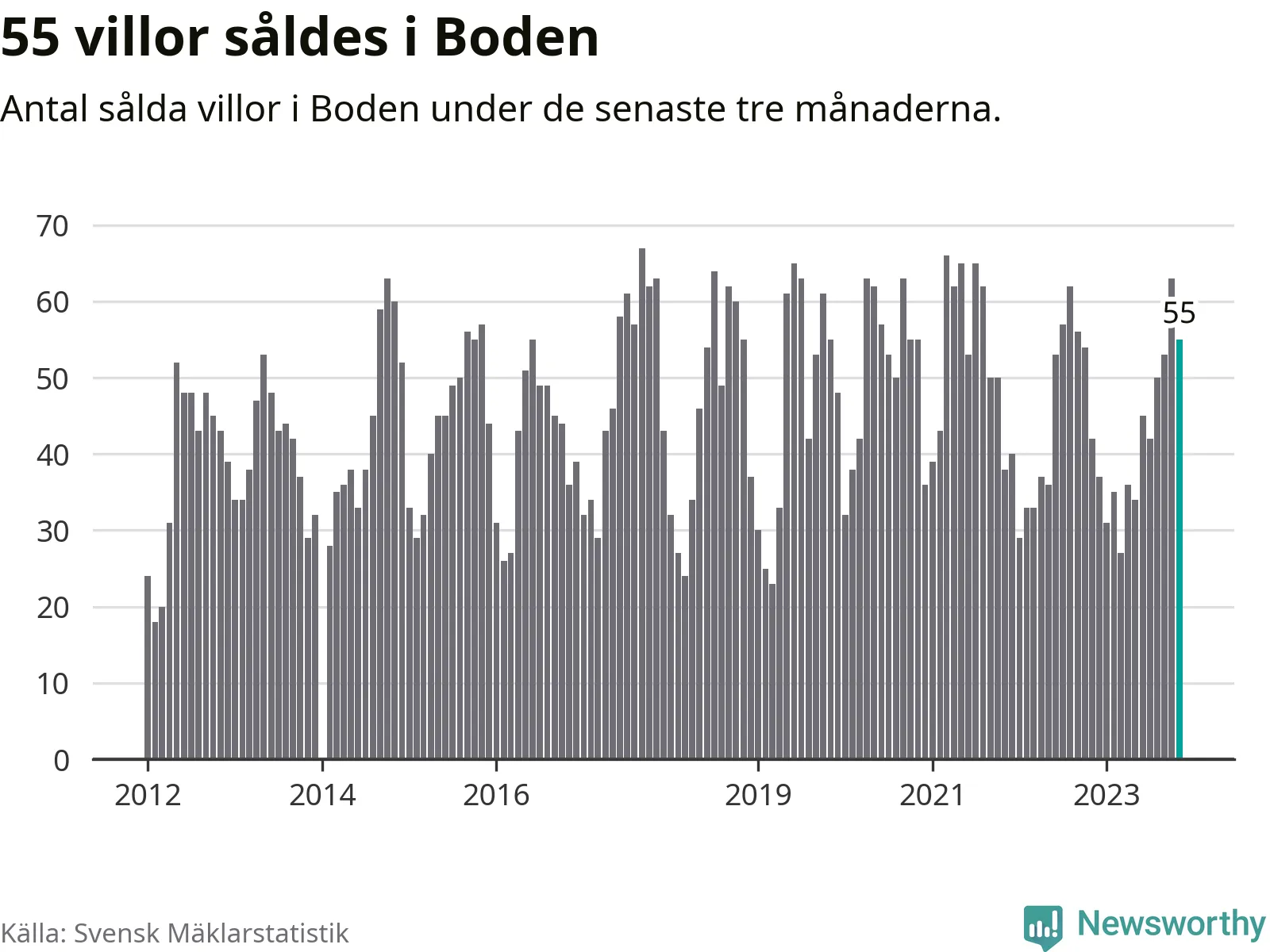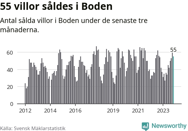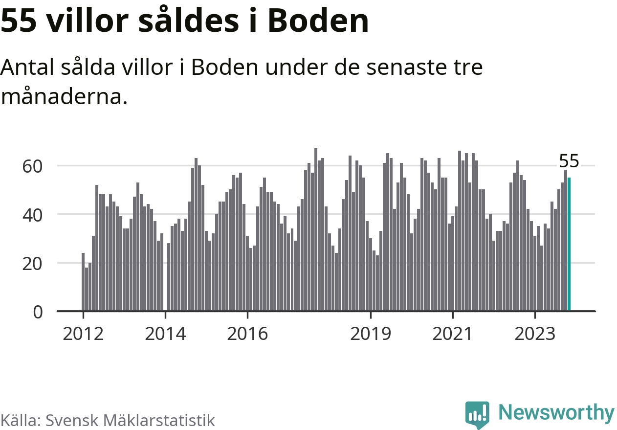 Sammanlagt såldes 55 villor i Bodens kommun mellan september och november till ett genomsnittligt pris på 1,7 miljoner kronor. I fjol gjordes 42 affärer vid den här tiden på året.
