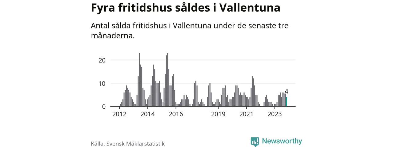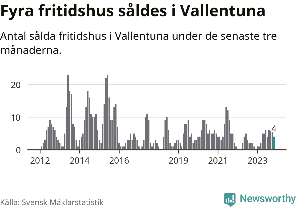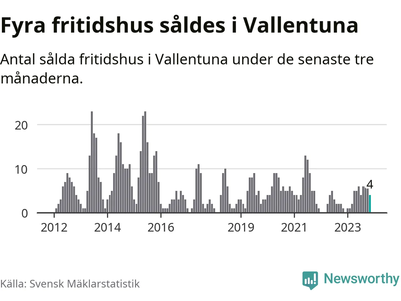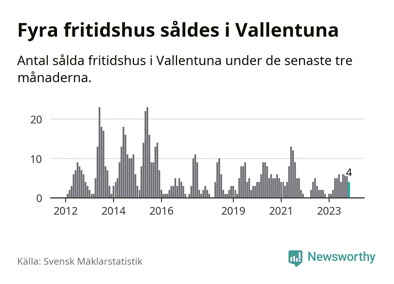 Mellan september och november gjordes sammanlagt fyra affärer med fritidshus i Vallentuna kommun. Det kan jämföras med ett vid motsvarande tid i fjol.