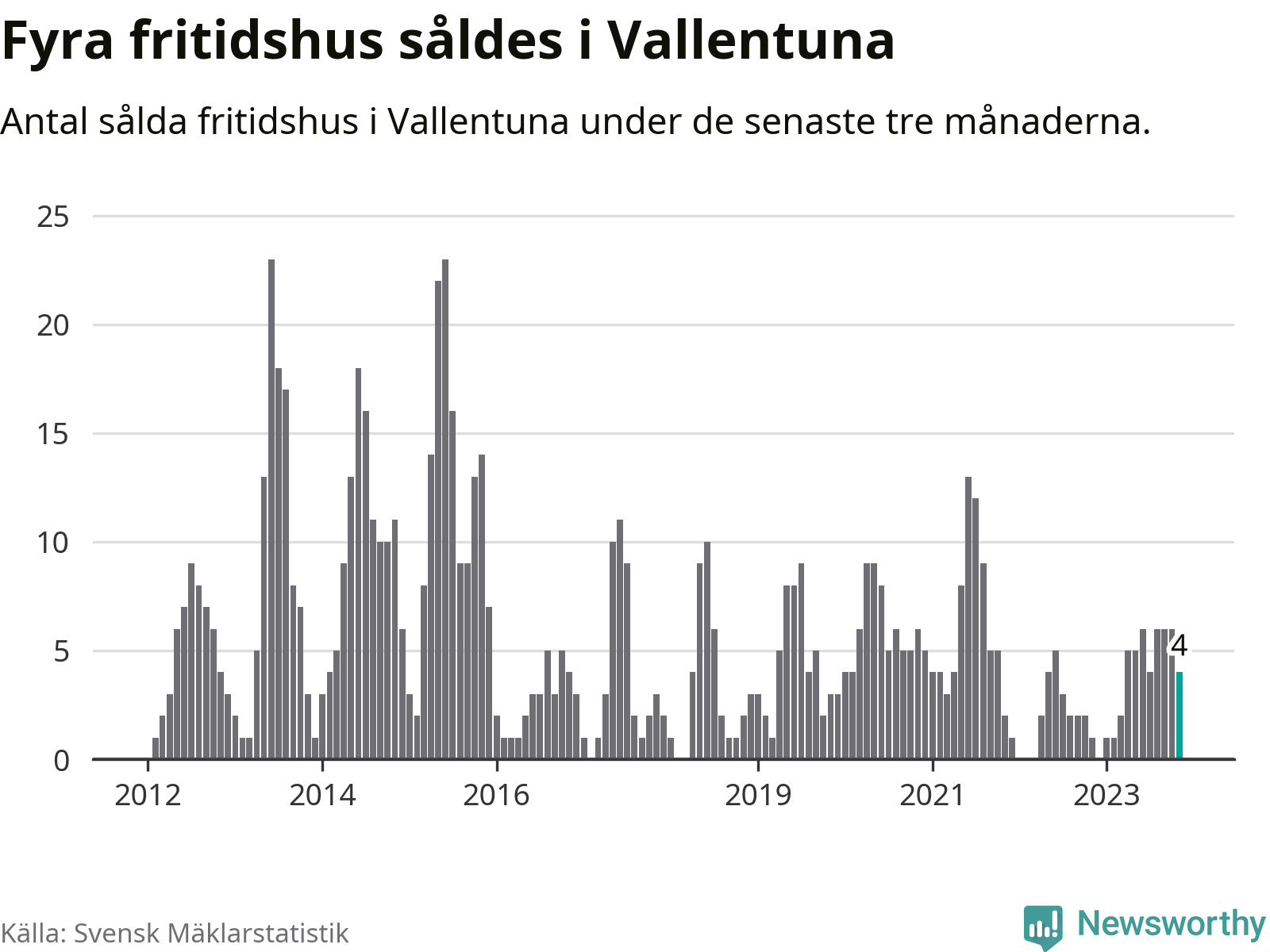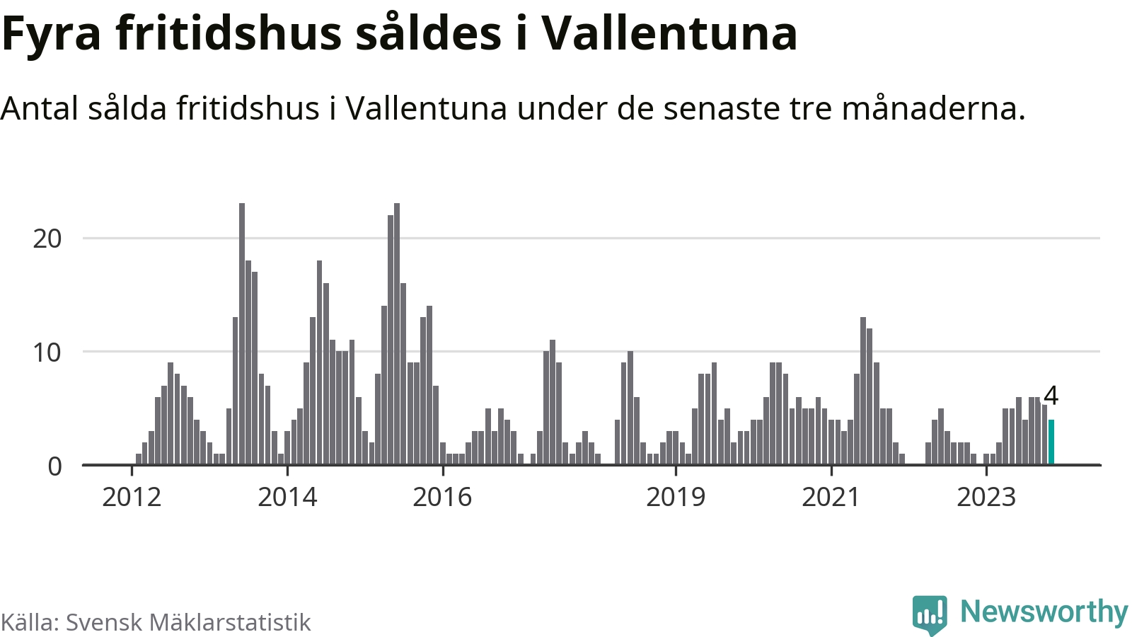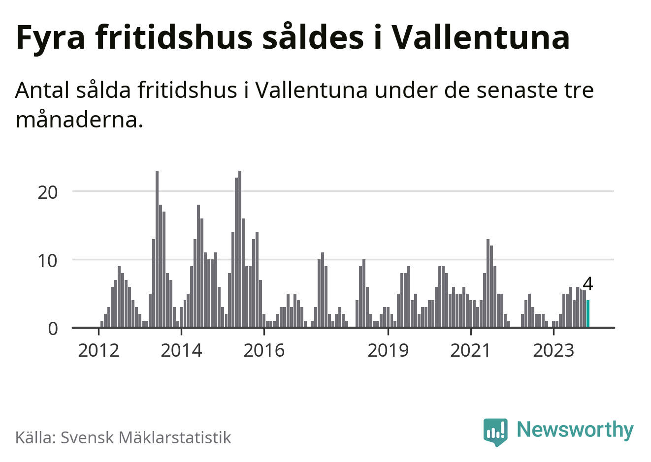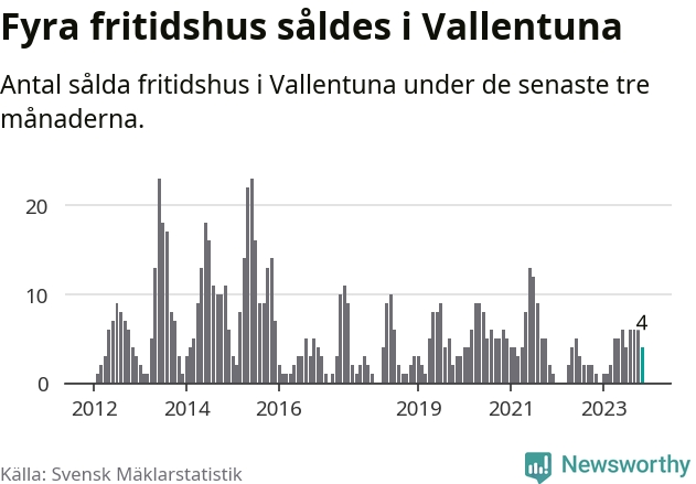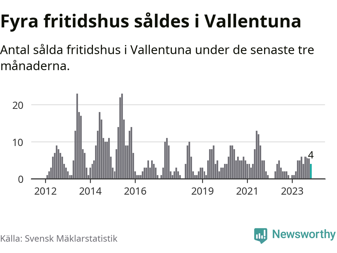 Mellan september och november gjordes sammanlagt fyra affärer med fritidshus i Vallentuna kommun. Det kan jämföras med ett vid motsvarande tid i fjol.