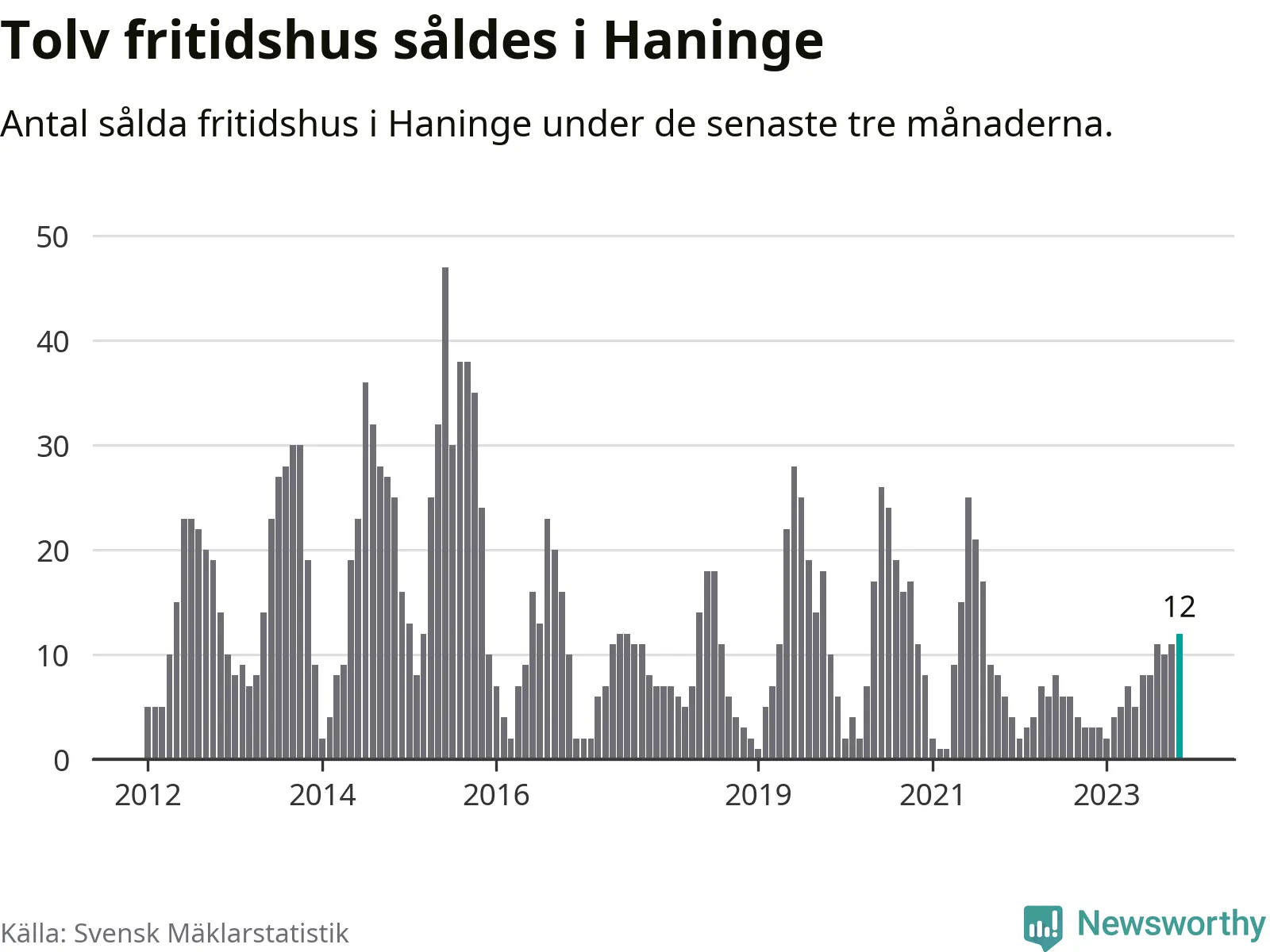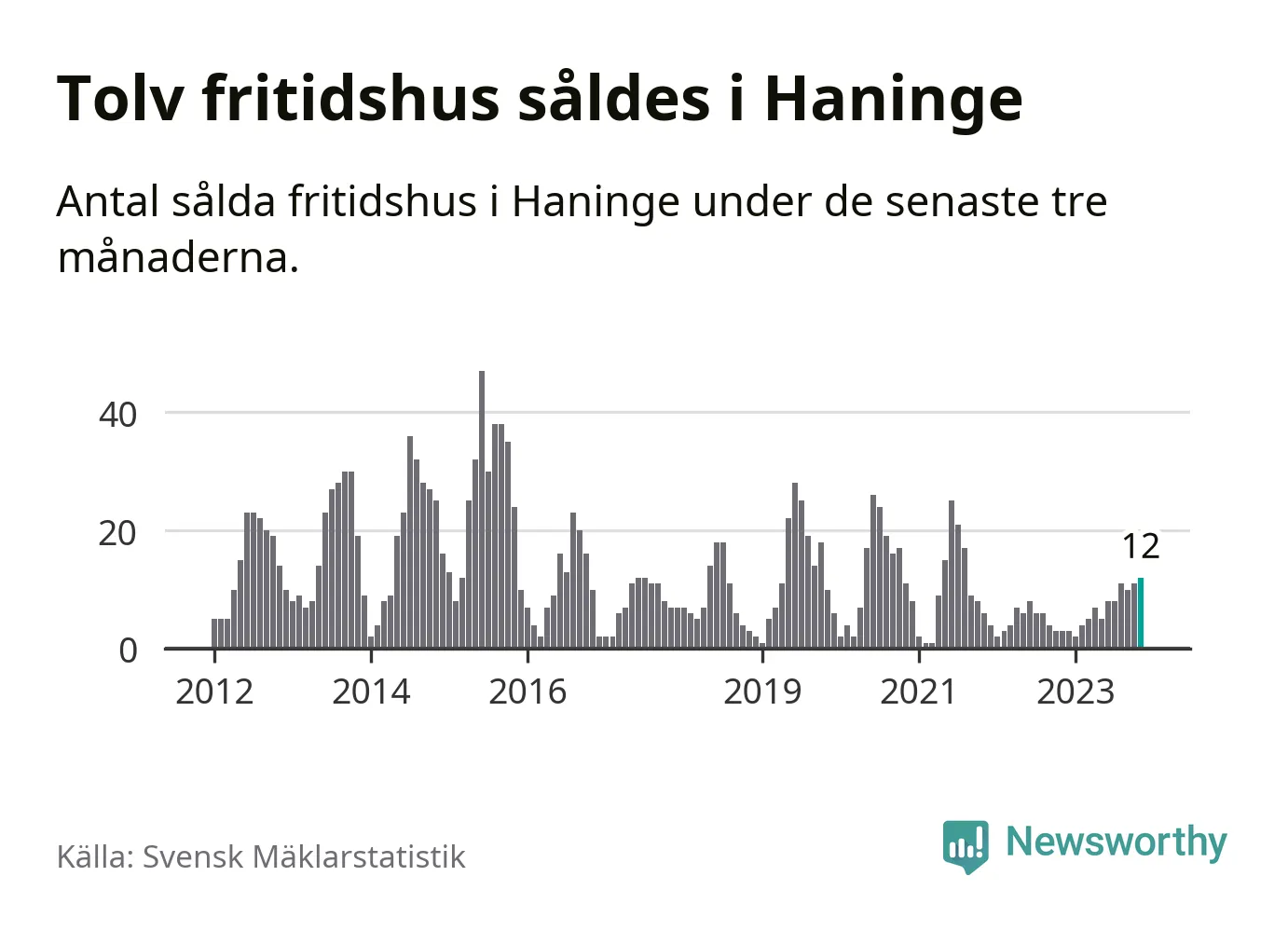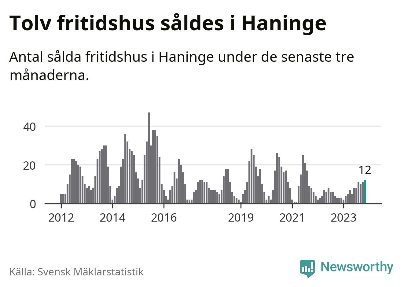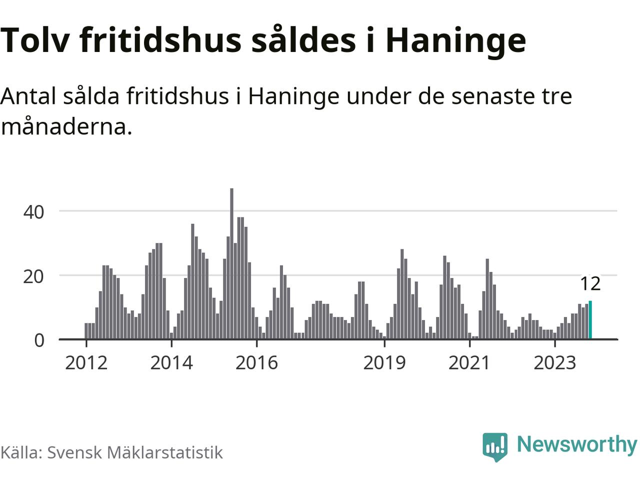 Mellan september och november gjordes sammanlagt tolv affärer med fritidshus i Haninge kommun. Det kan jämföras med tre vid motsvarande tid i fjol.