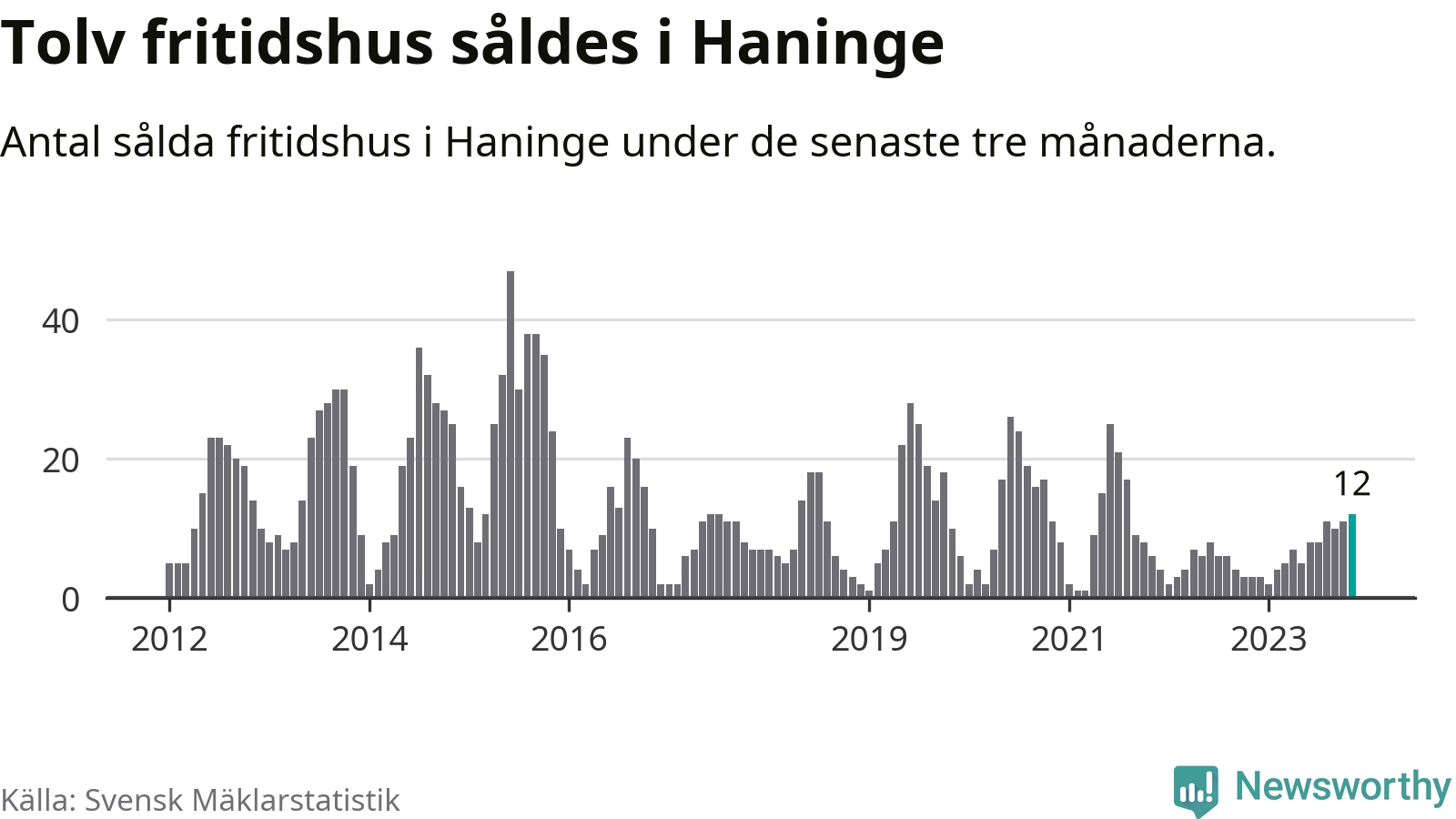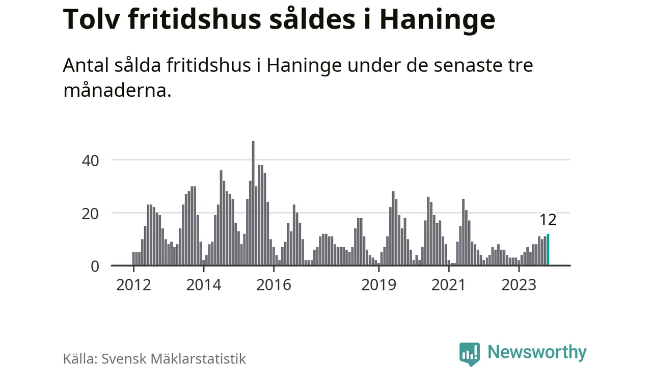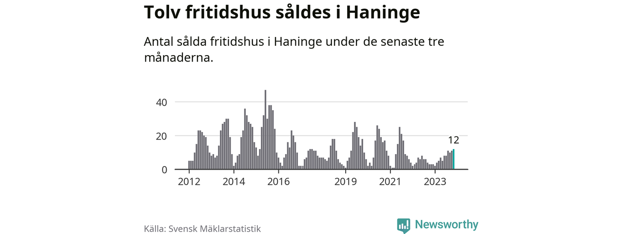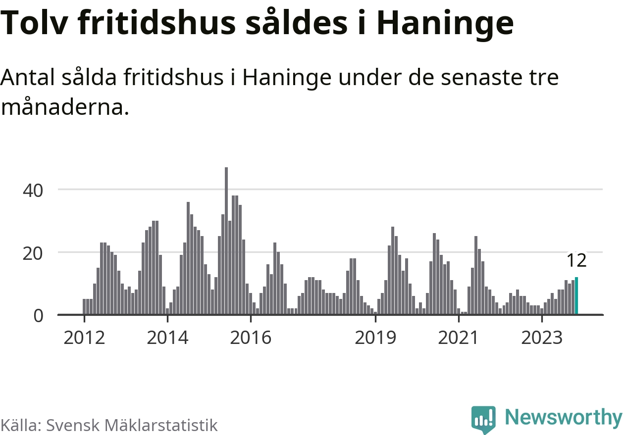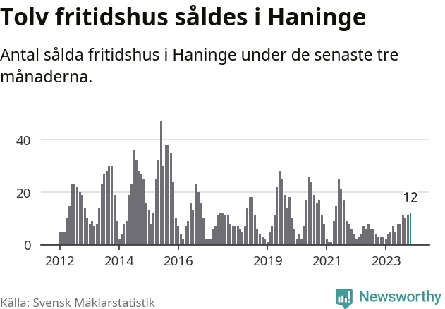 Mellan september och november gjordes sammanlagt tolv affärer med fritidshus i Haninge kommun. Det kan jämföras med tre vid motsvarande tid i fjol.