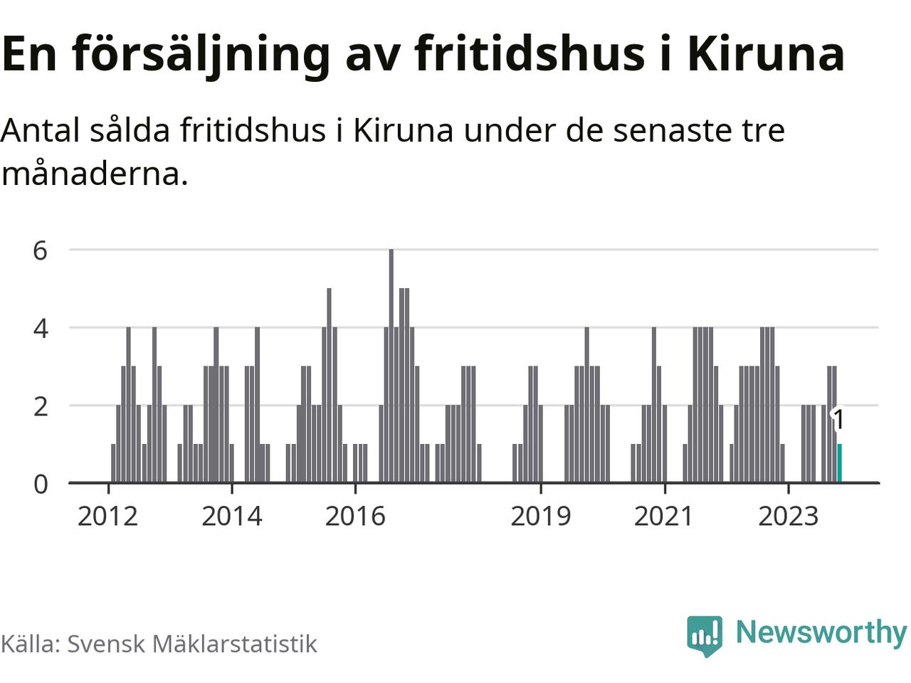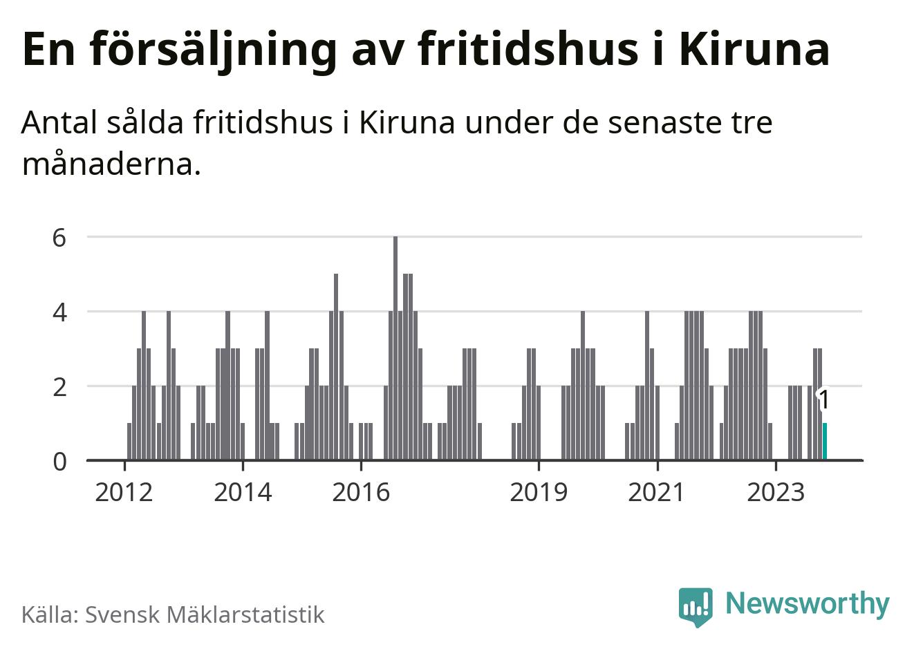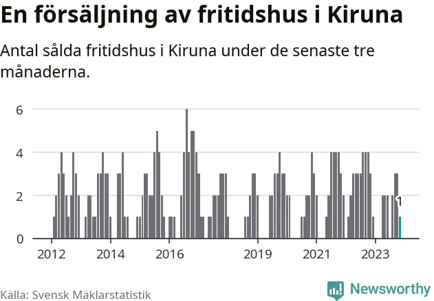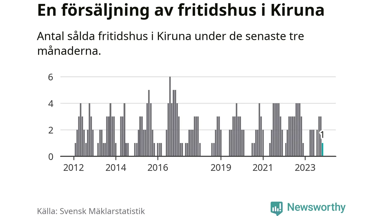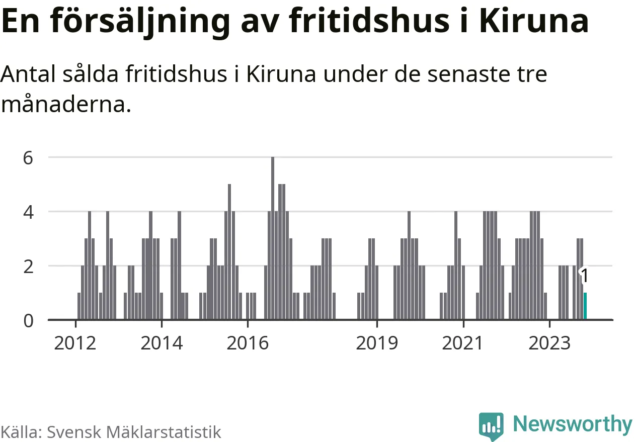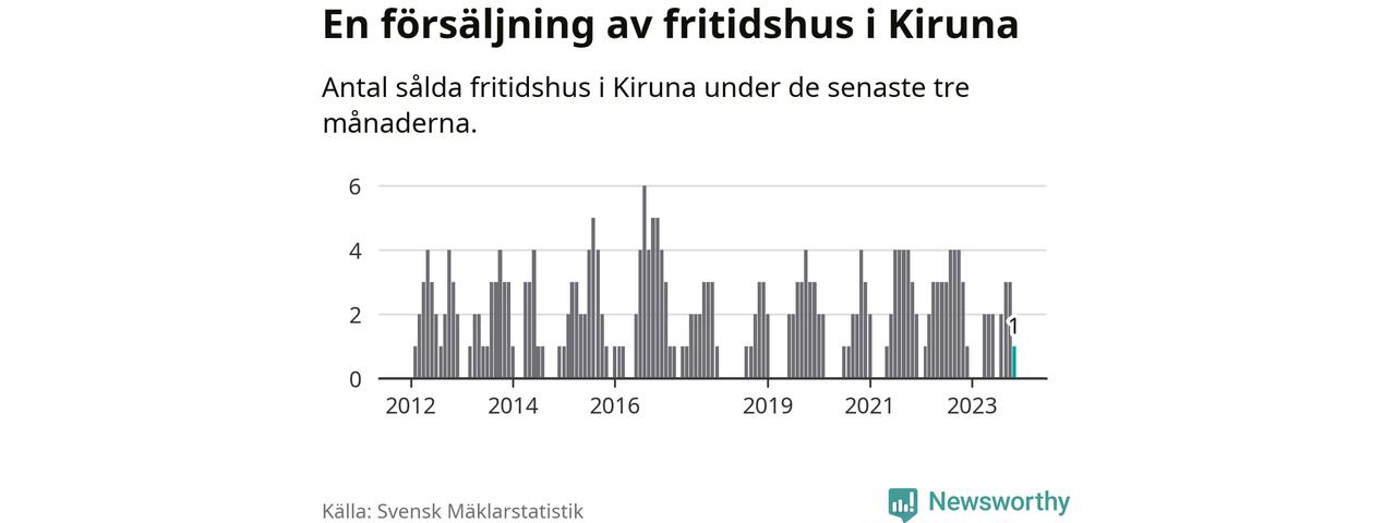 Mellan september och november gjordes sammanlagt en affär med fritidshus i Kiruna kommun. Det kan jämföras med tre vid motsvarande tid i fjol.