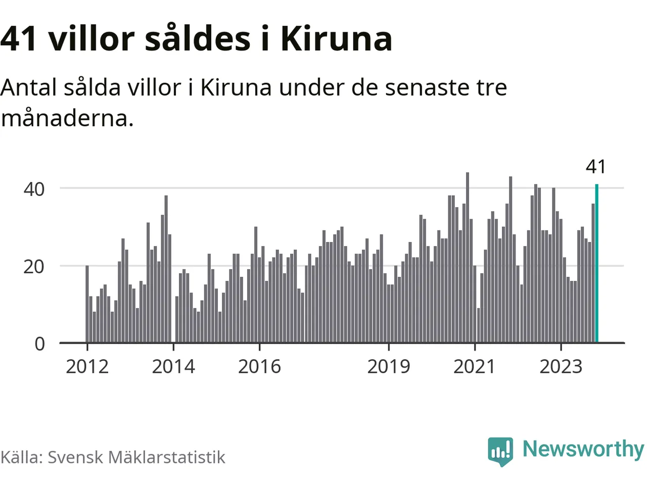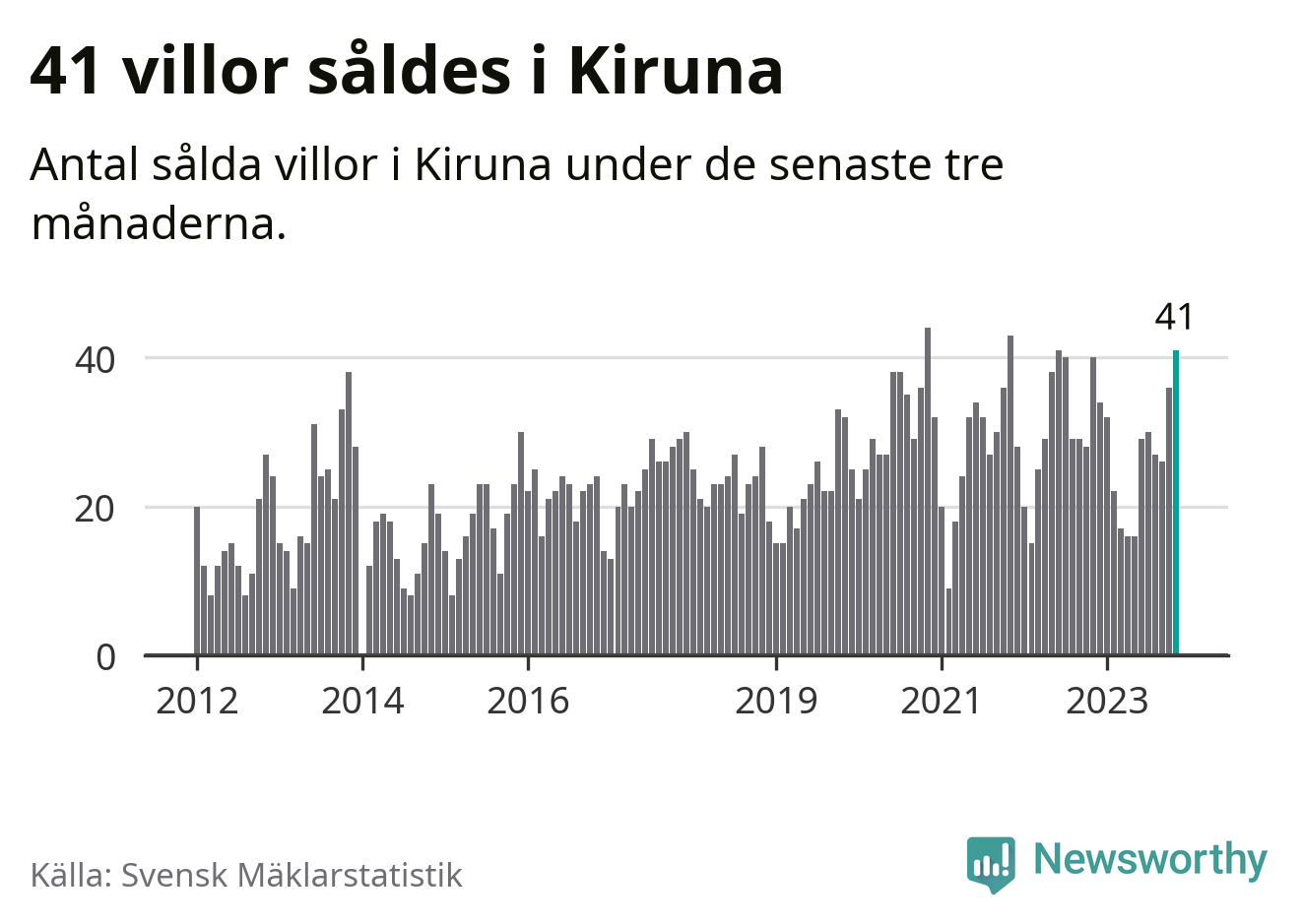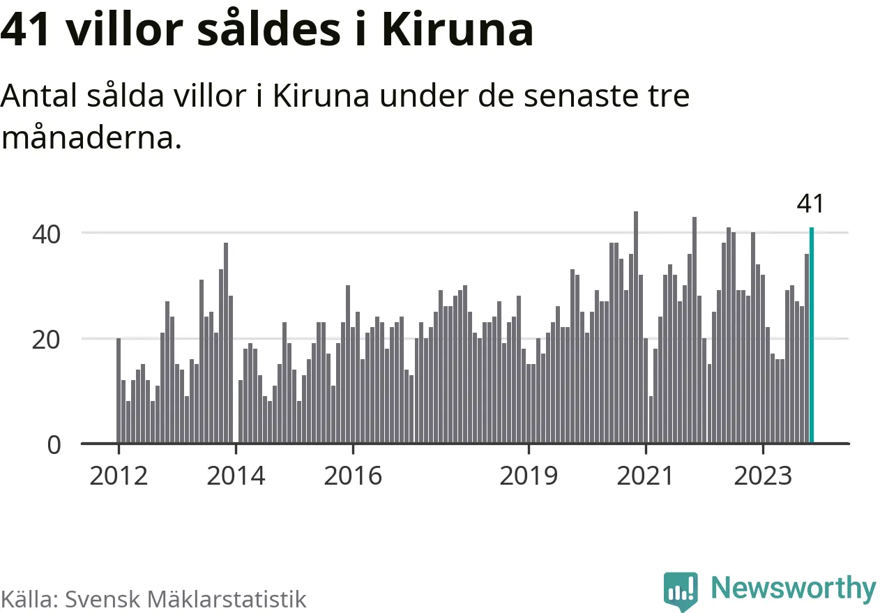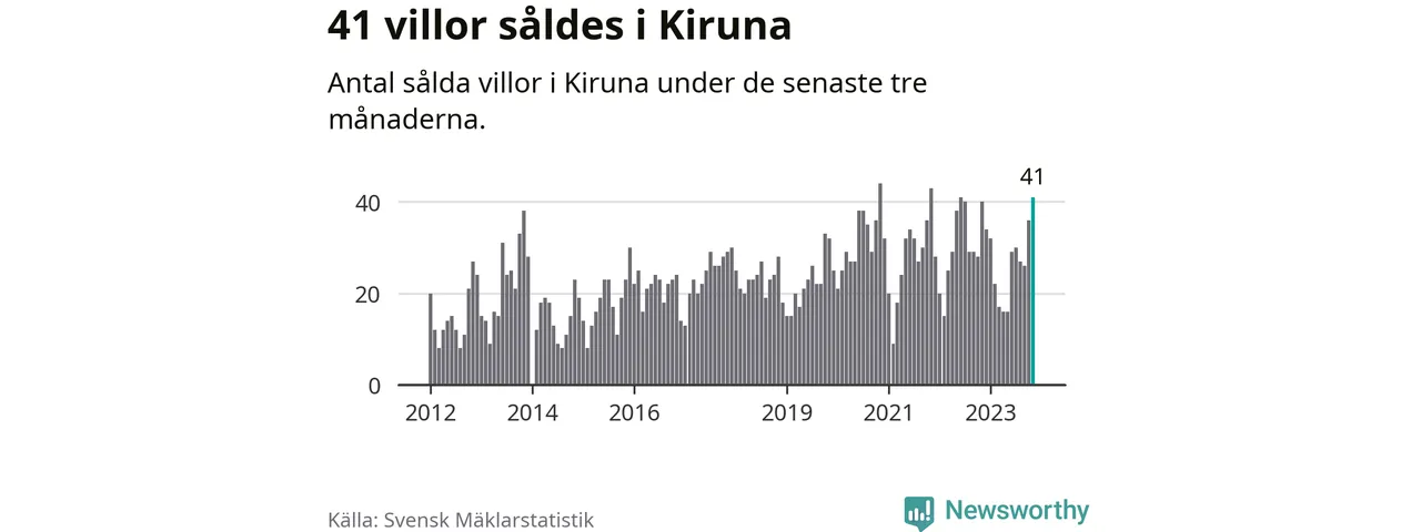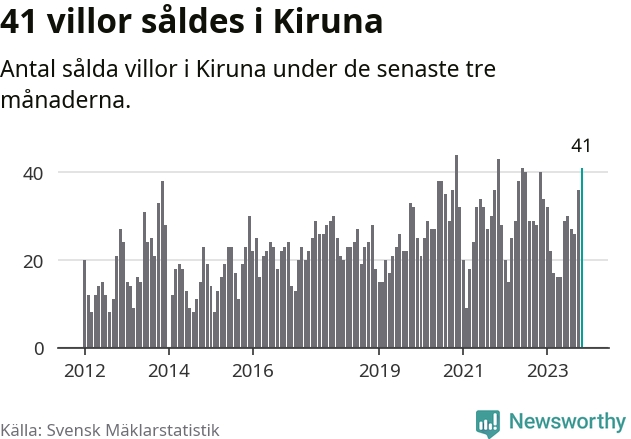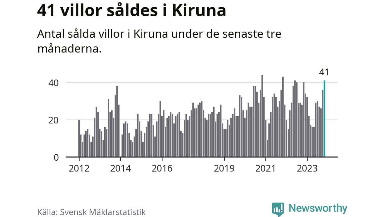 Mellan september och november gjordes sammanlagt 41 affärer med villor i Kiruna kommun. Det kan jämföras med 40 vid motsvarande tid i fjol.